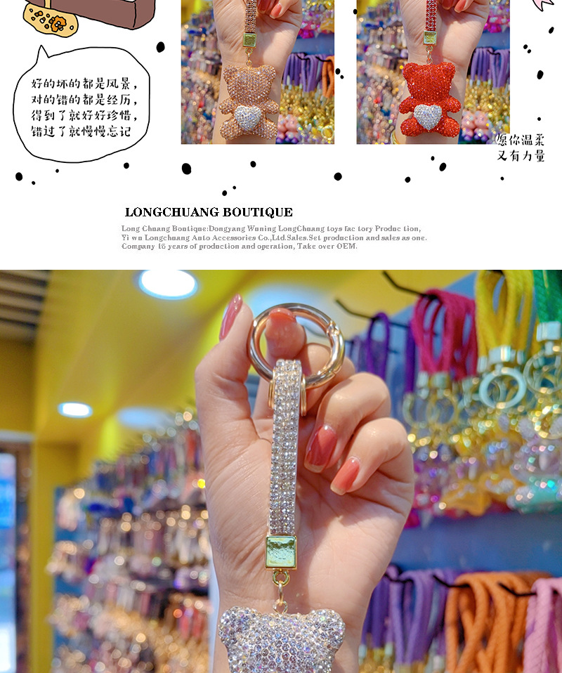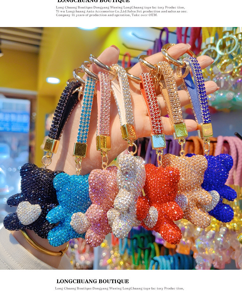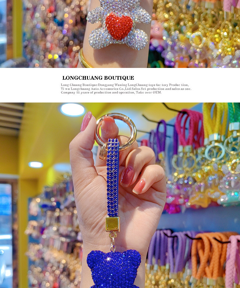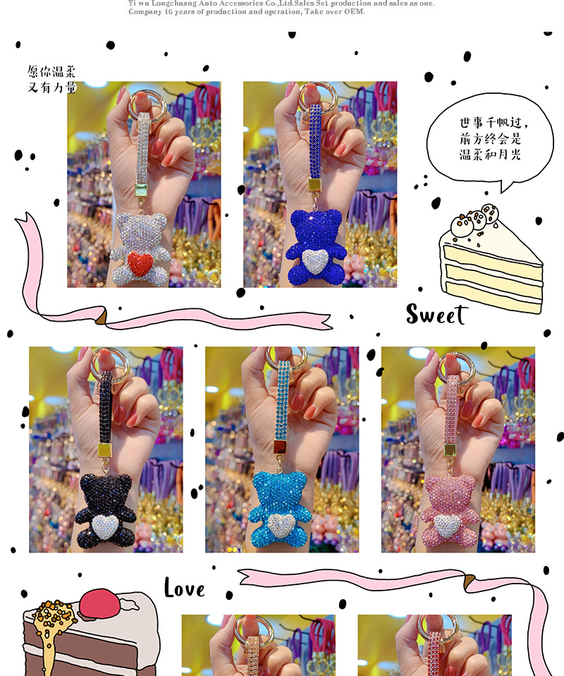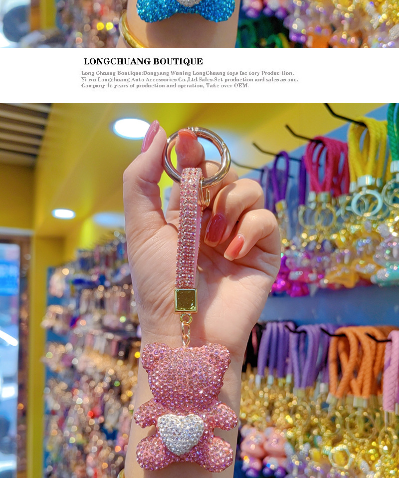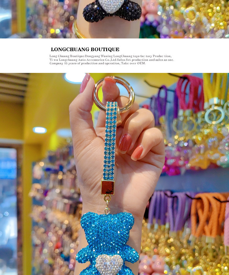 도자기 진흙 전체 다이아몬드 곰 사랑 키 체인 귀여운 연인 곰 가방 체인 자동차 열쇠 고리 펜던트 보석 도매스토어 가기