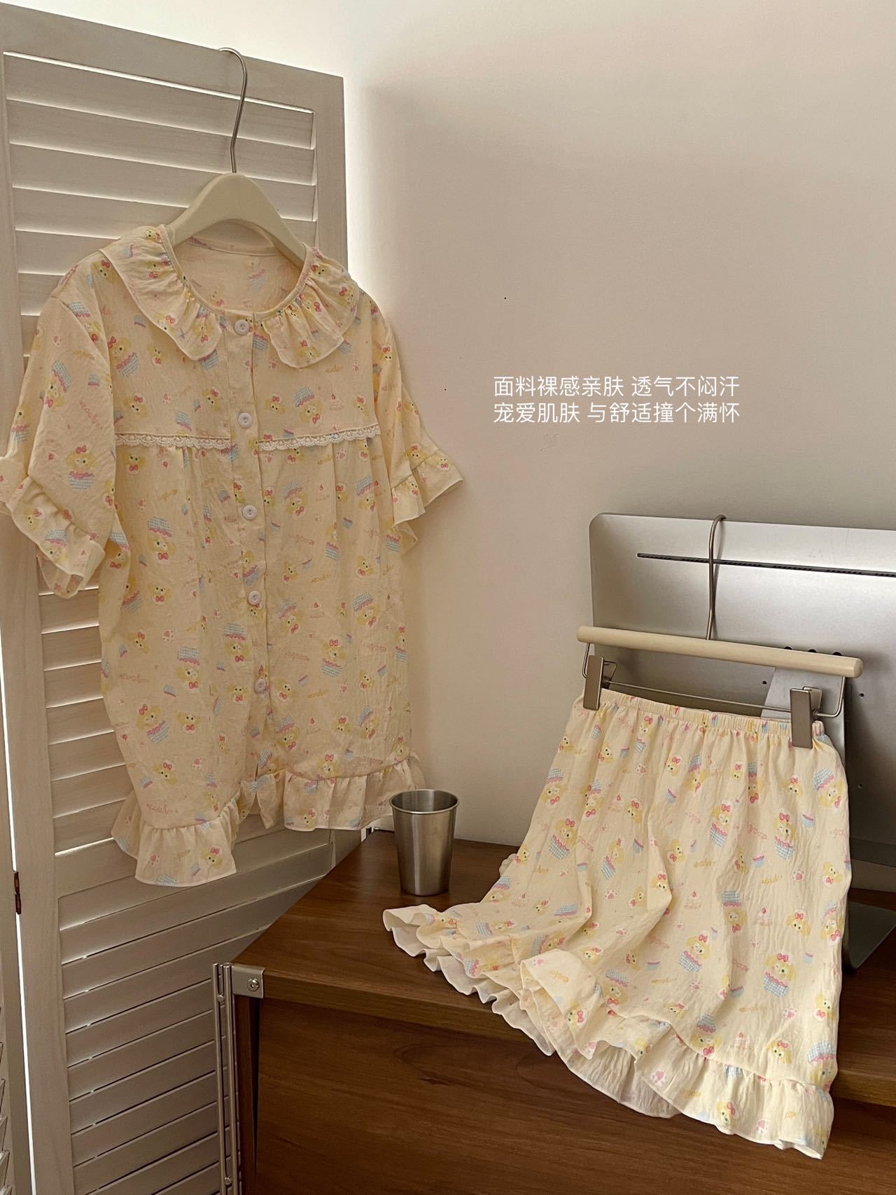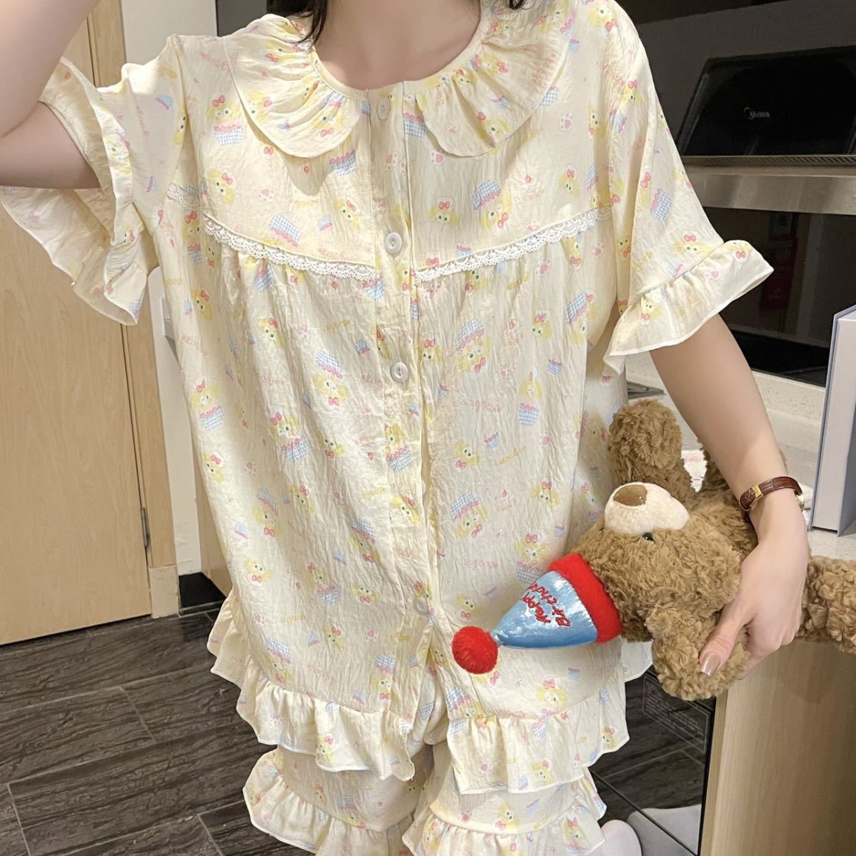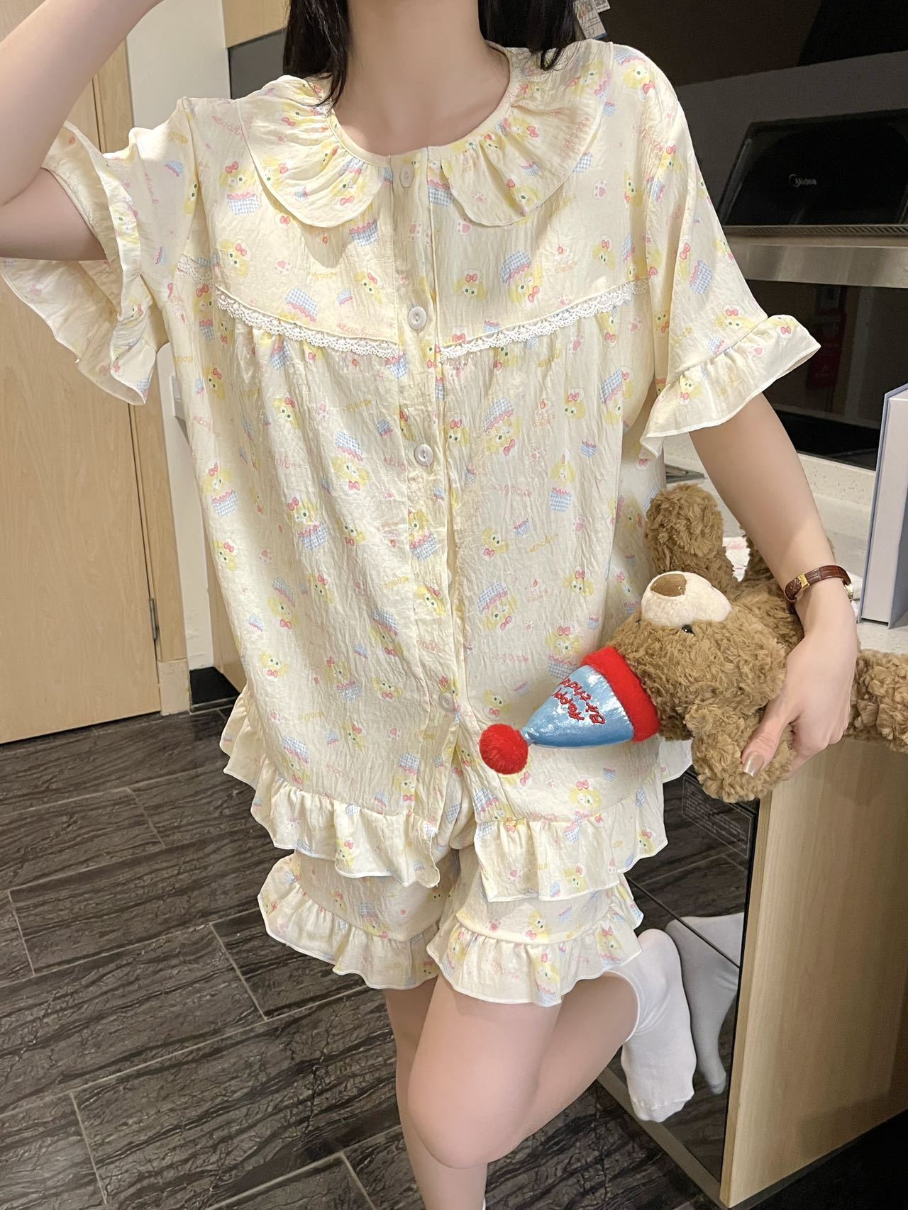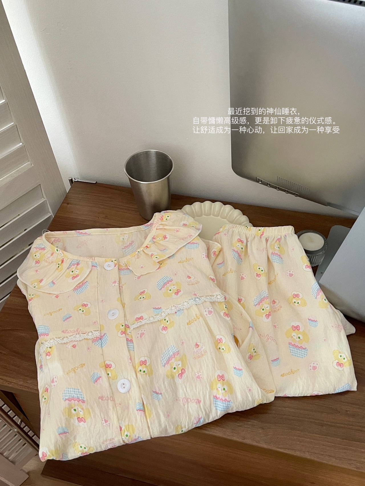 새로운 봄과 가을 구름 코튼 반팔 반바지 파자마 여성용 달콤한 귀여운 공주 홈 의류 세트스토어 가기
