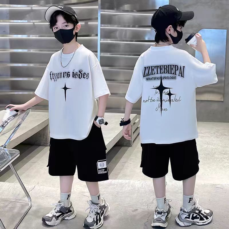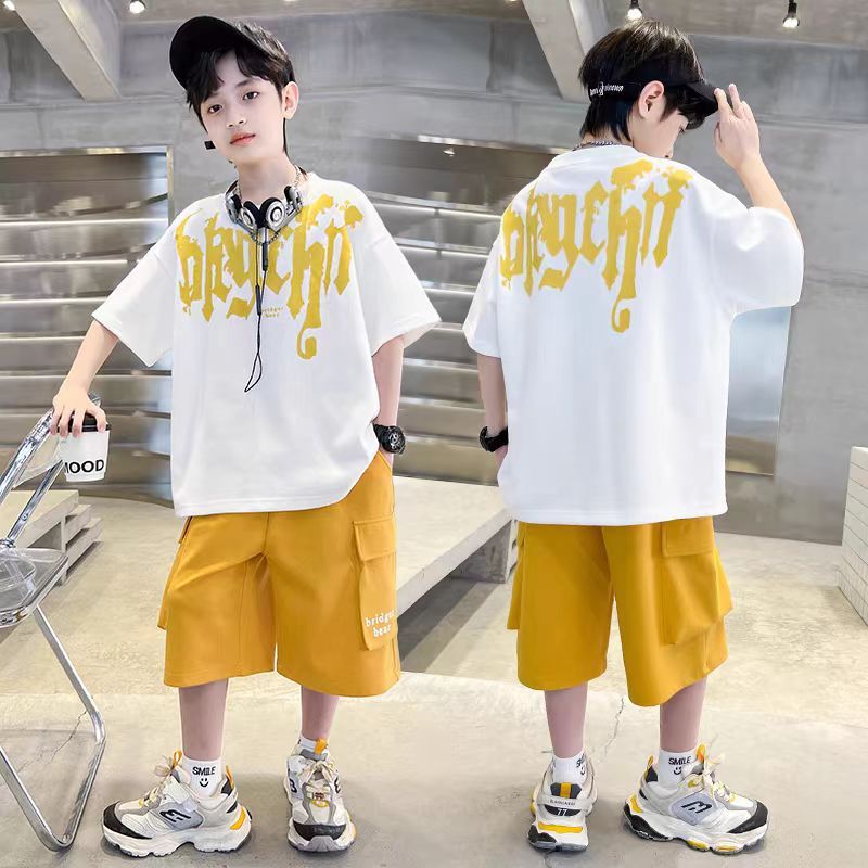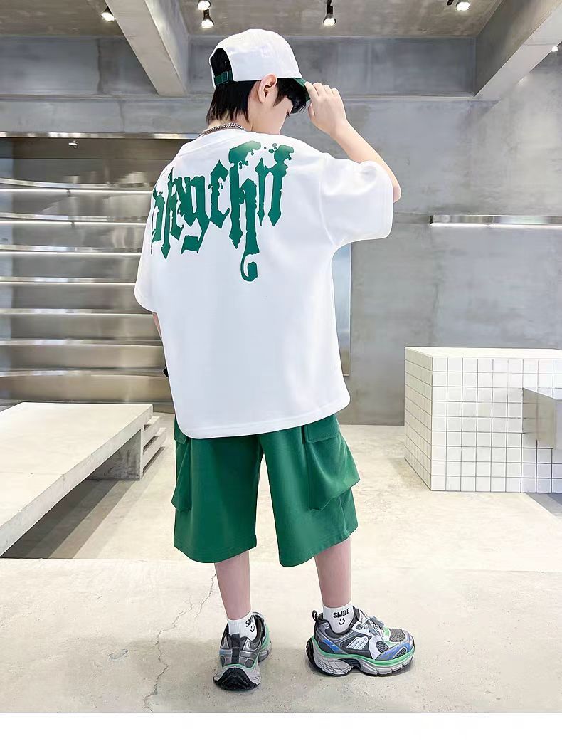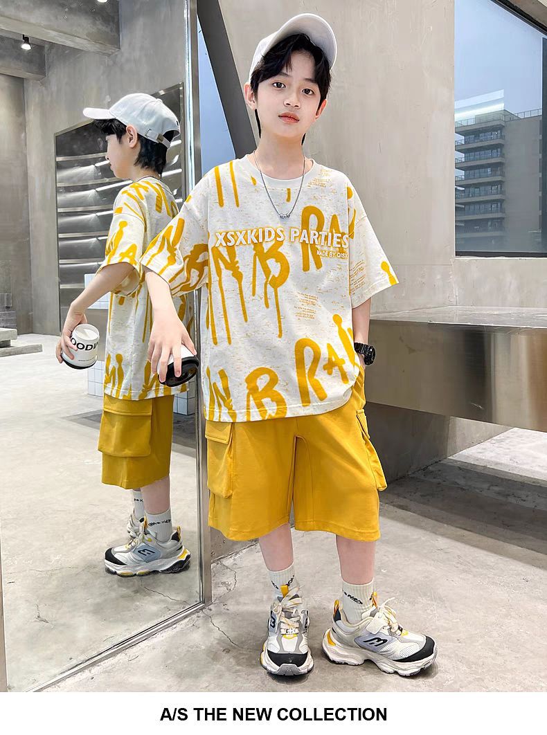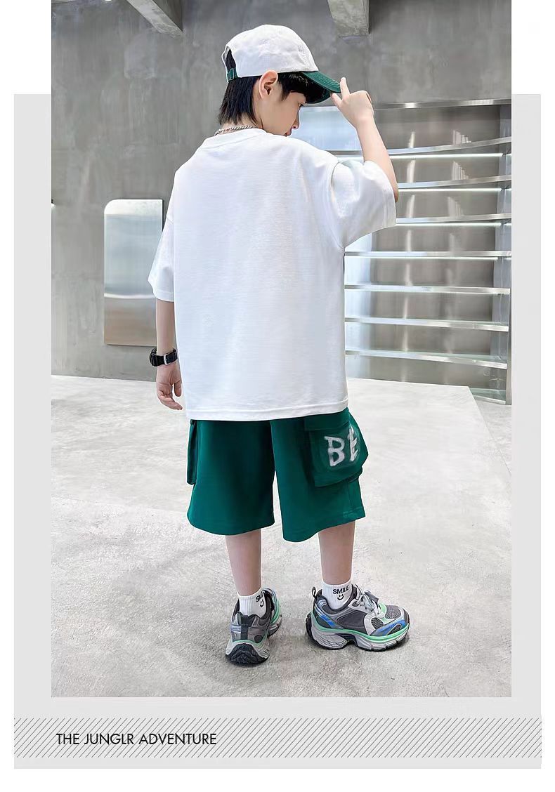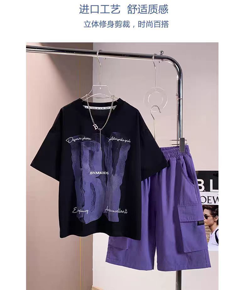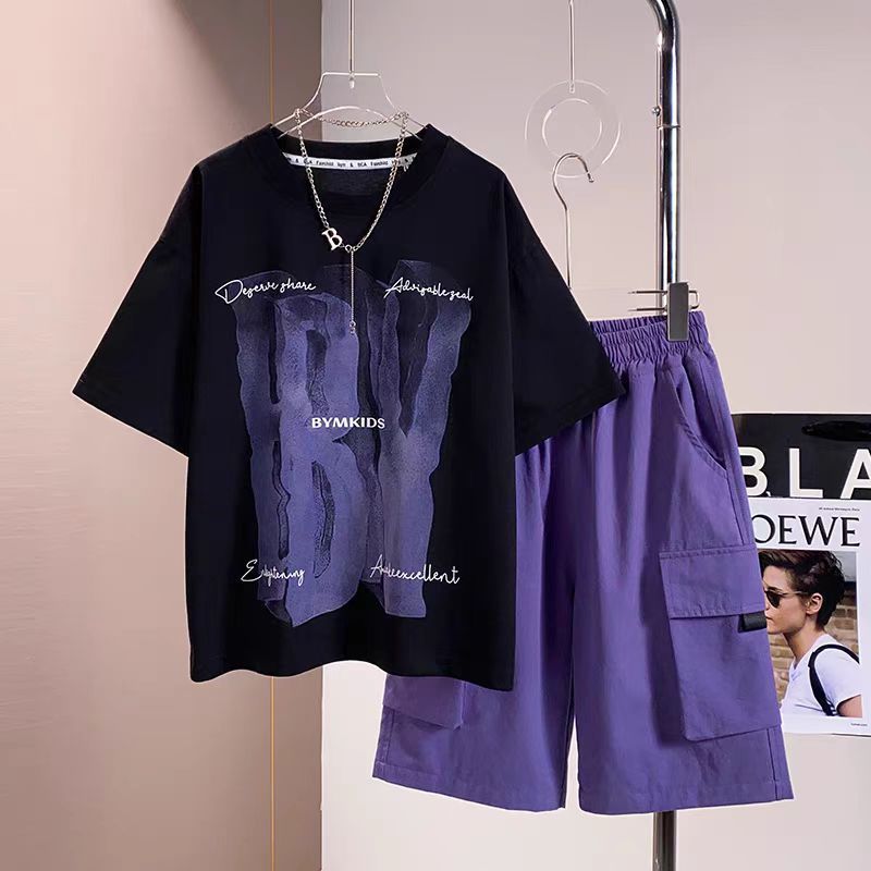 남아 정장, 여름 정장, 큰 남아용 멋진 스트리트 반팔 바지 정장, 운동복 투피스 세트, 트렌디스토어 가기