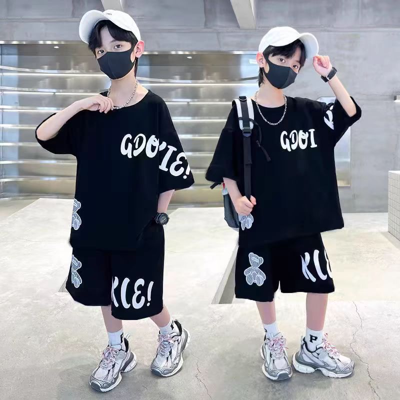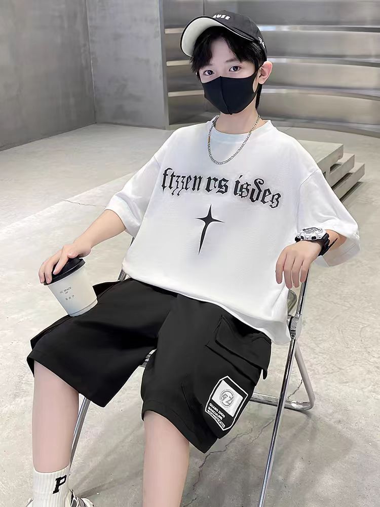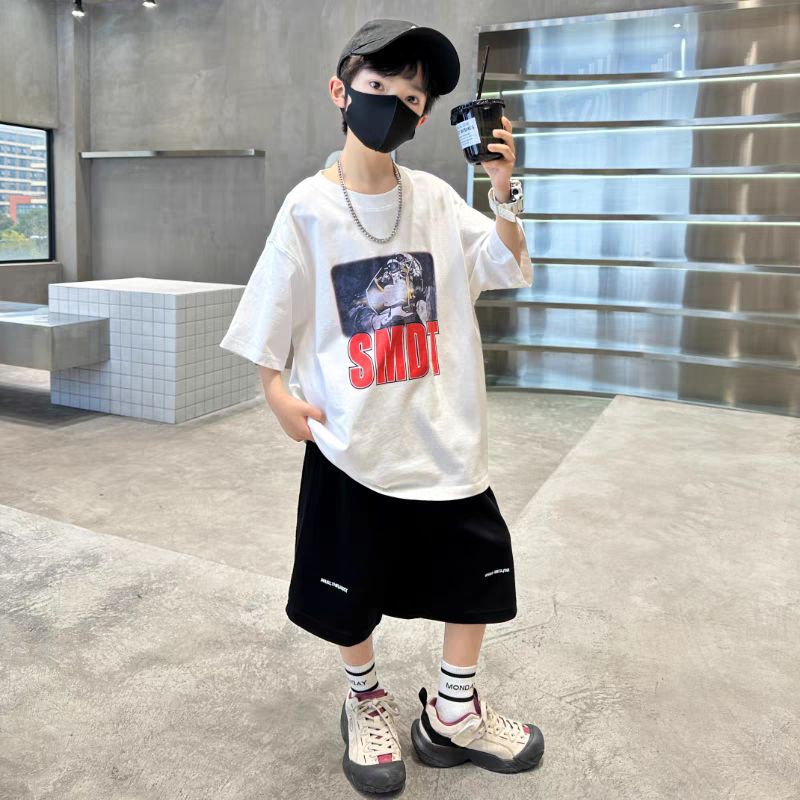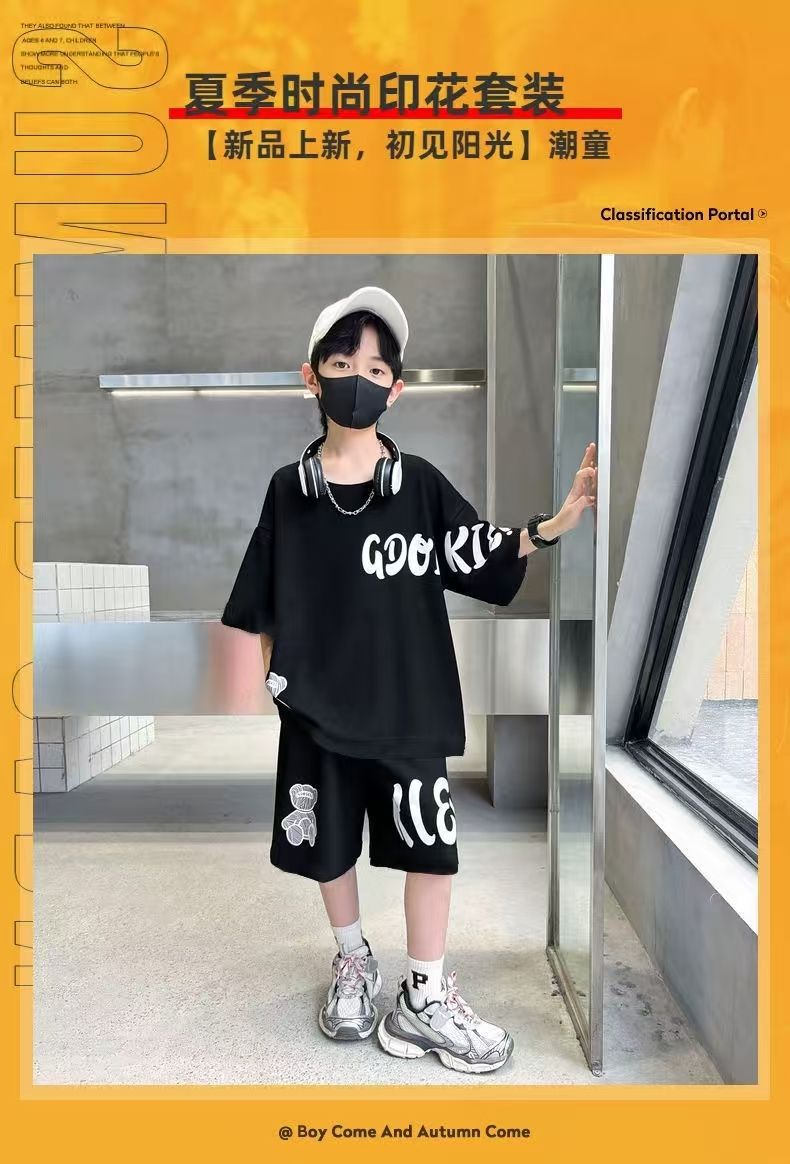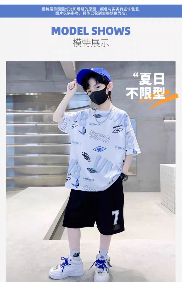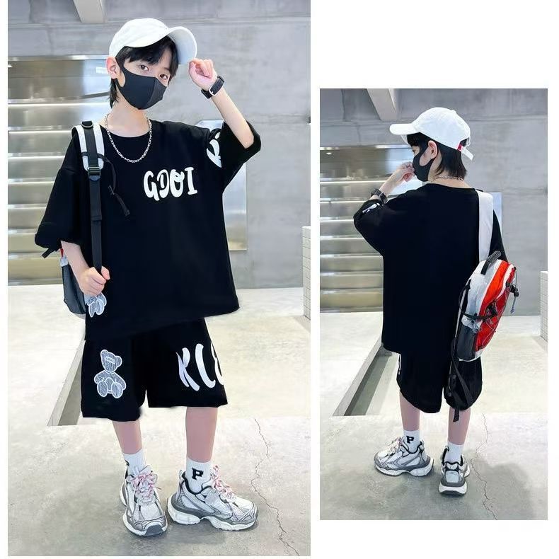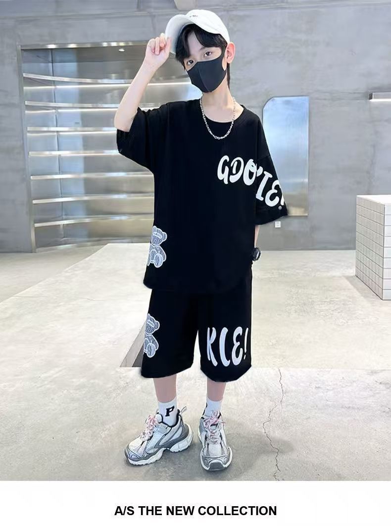 남아 정장, 여름 정장, 큰 남아용 멋진 스트리트 반팔 바지 정장, 운동복 투피스 세트, 트렌디스토어 가기