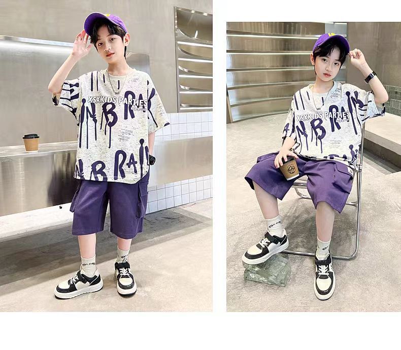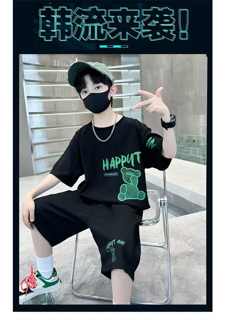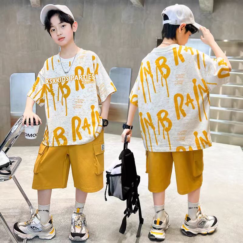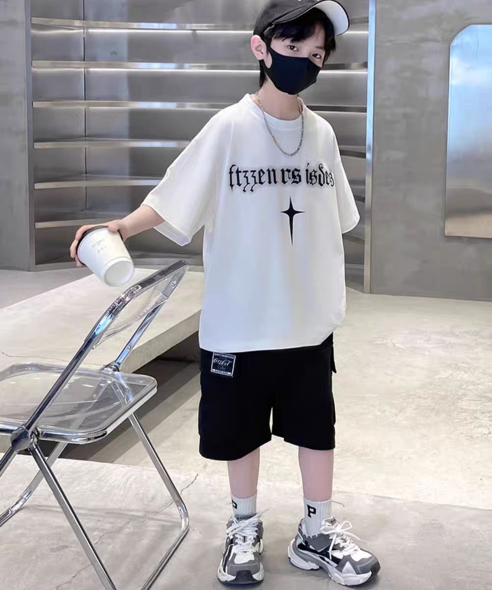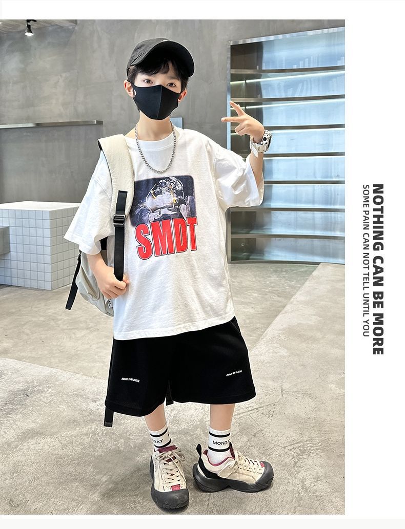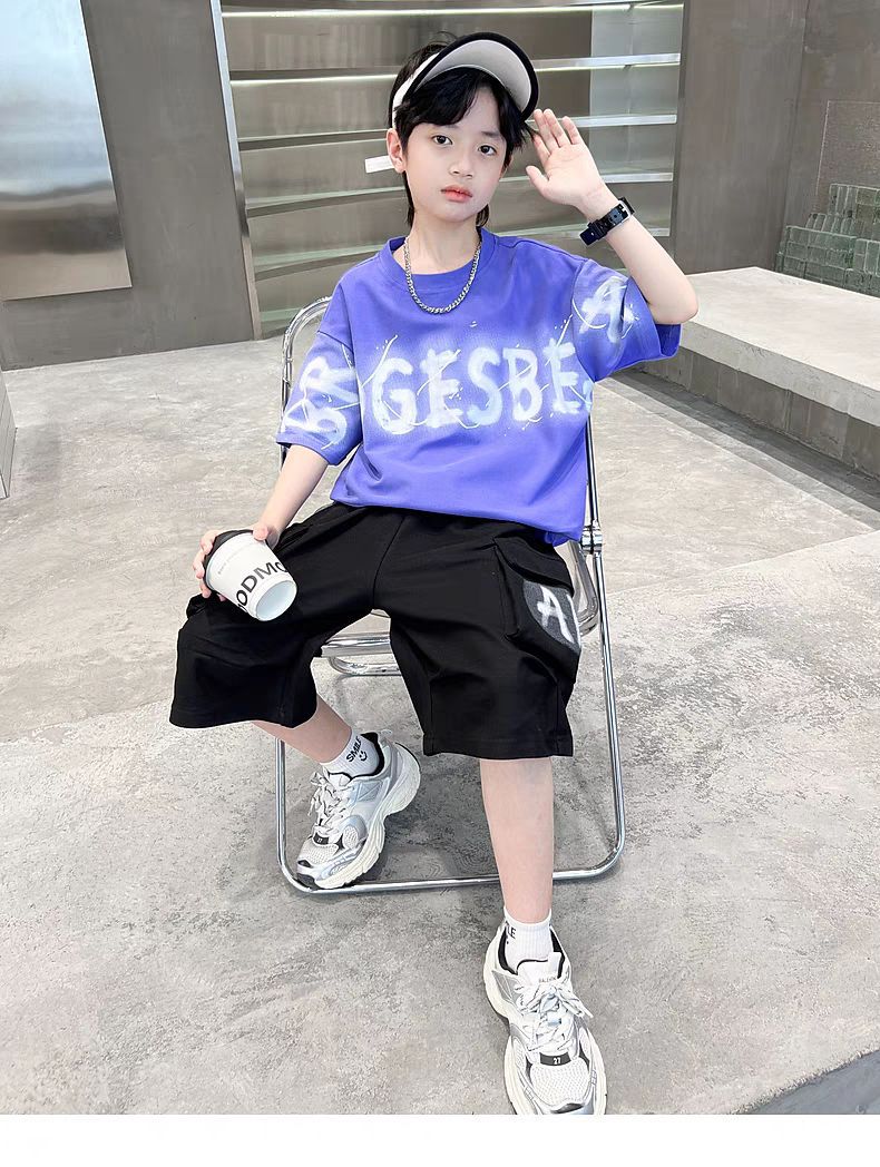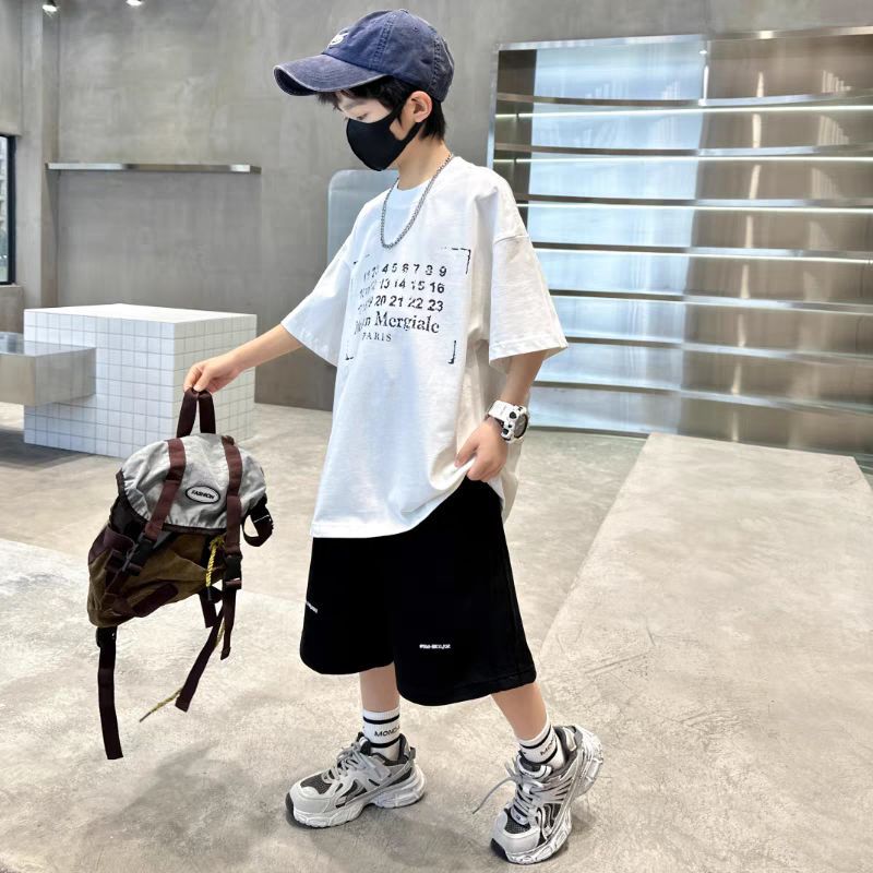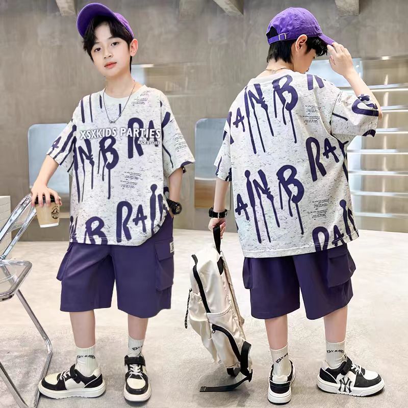남아 정장, 여름 정장, 큰 남아용 멋진 스트리트 반팔 바지 정장, 운동복 투피스 세트, 트렌디스토어 가기