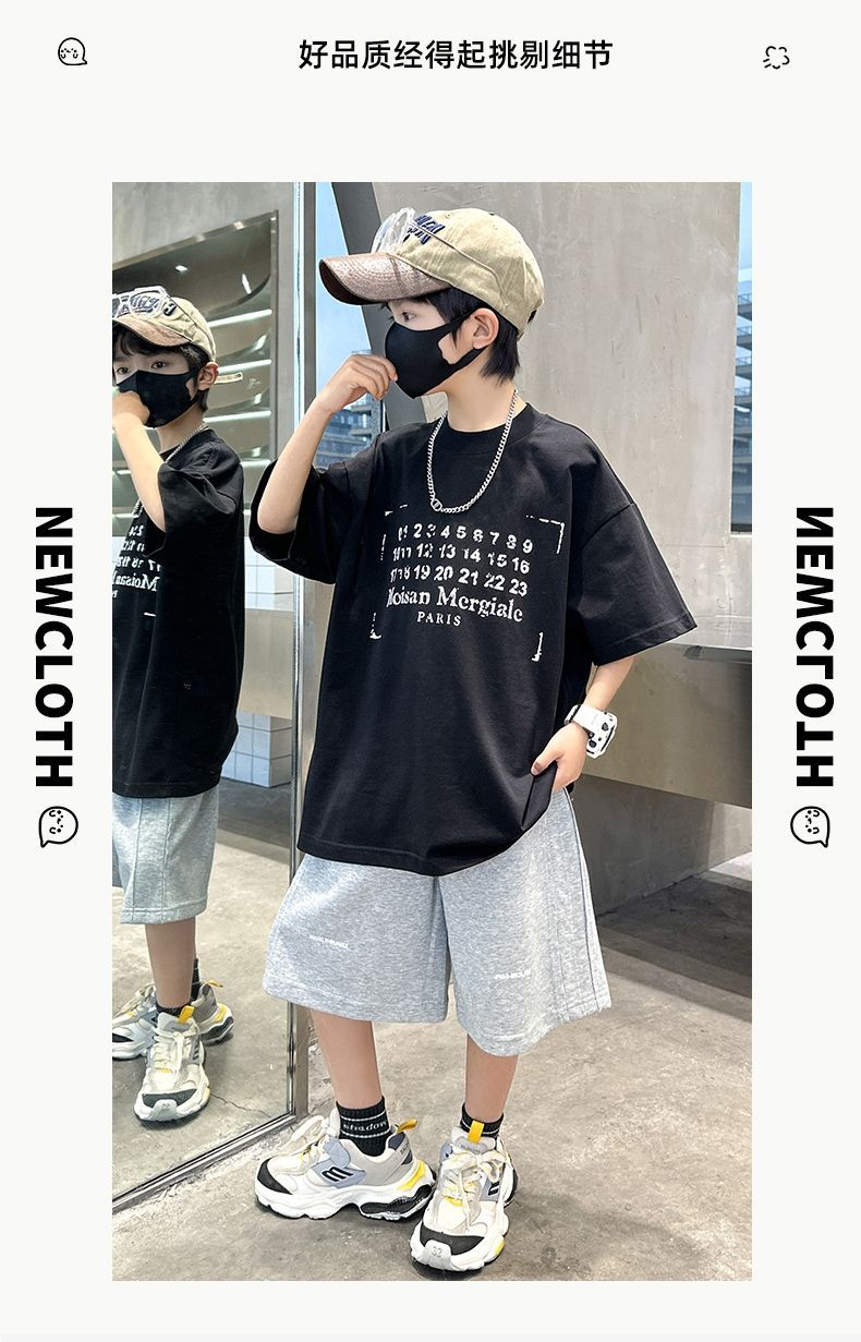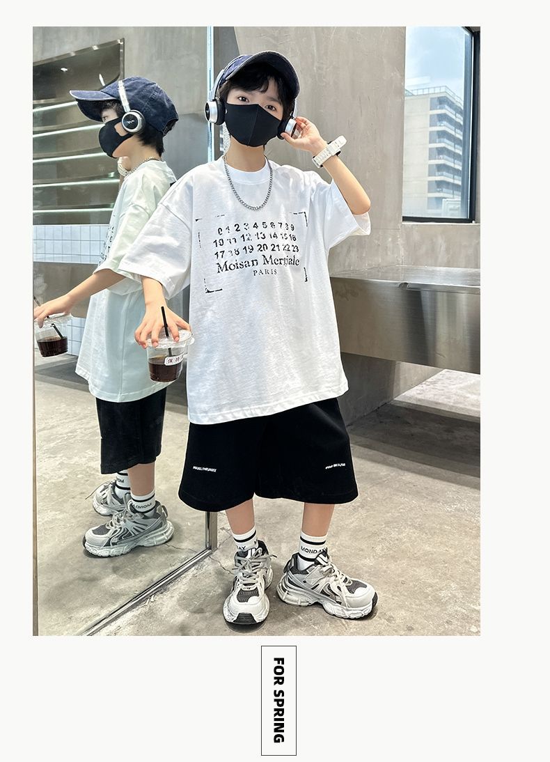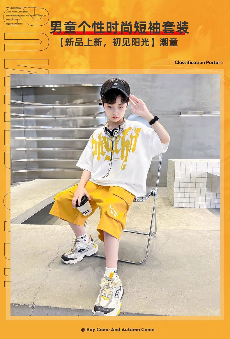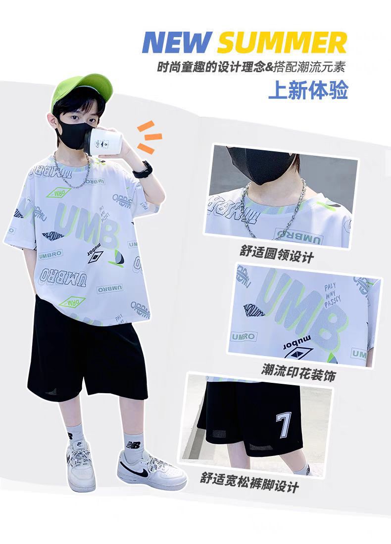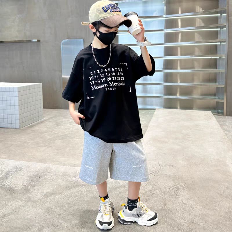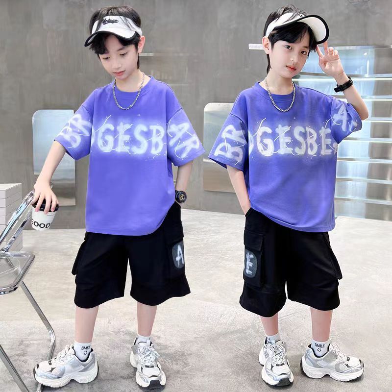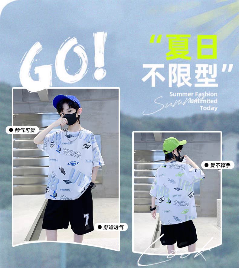 남아 정장, 여름 정장, 큰 남아용 멋진 스트리트 반팔 바지 정장, 운동복 투피스 세트, 트렌디스토어 가기