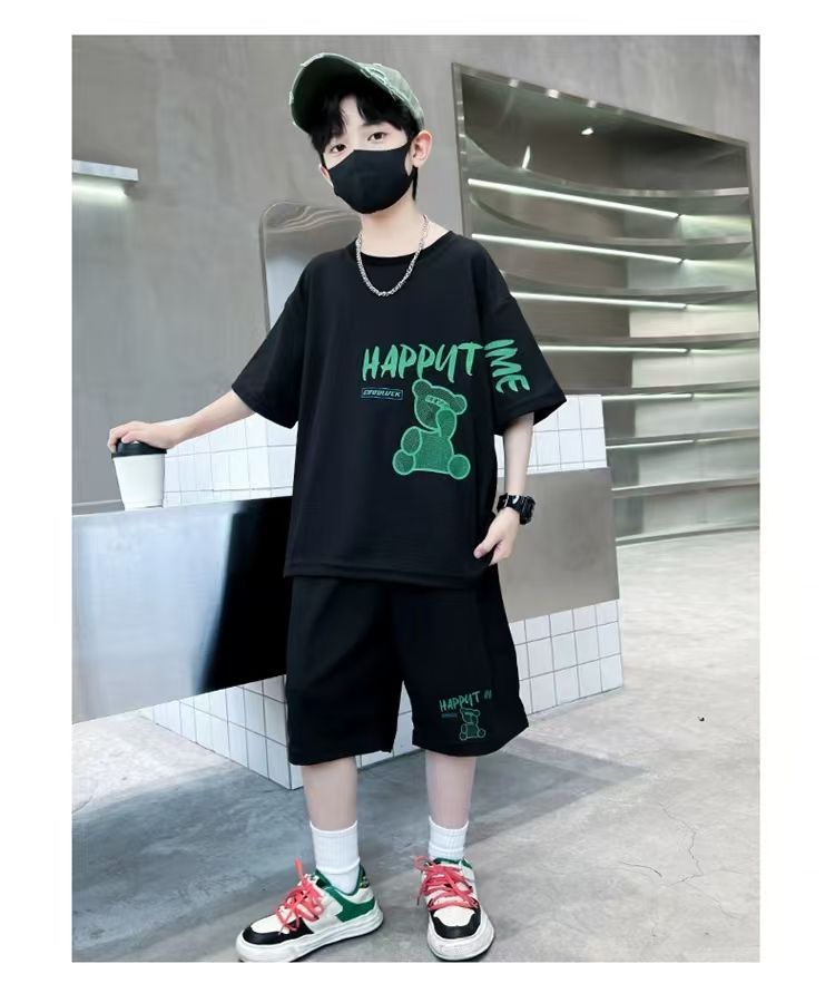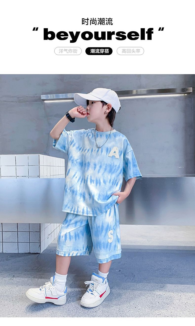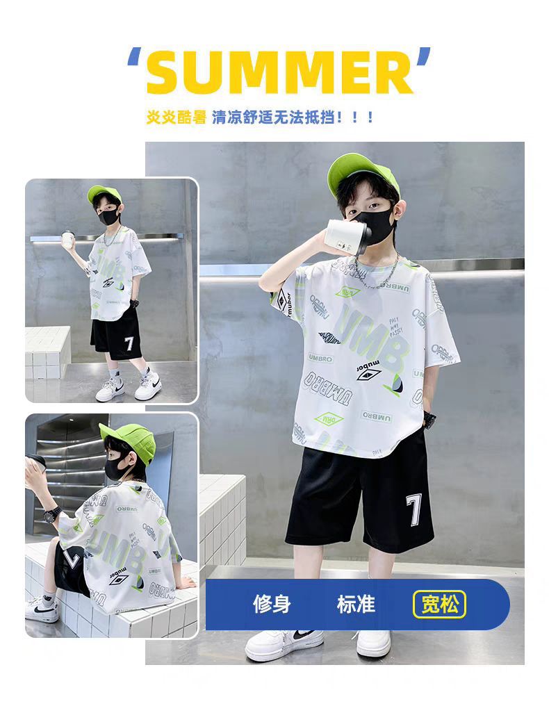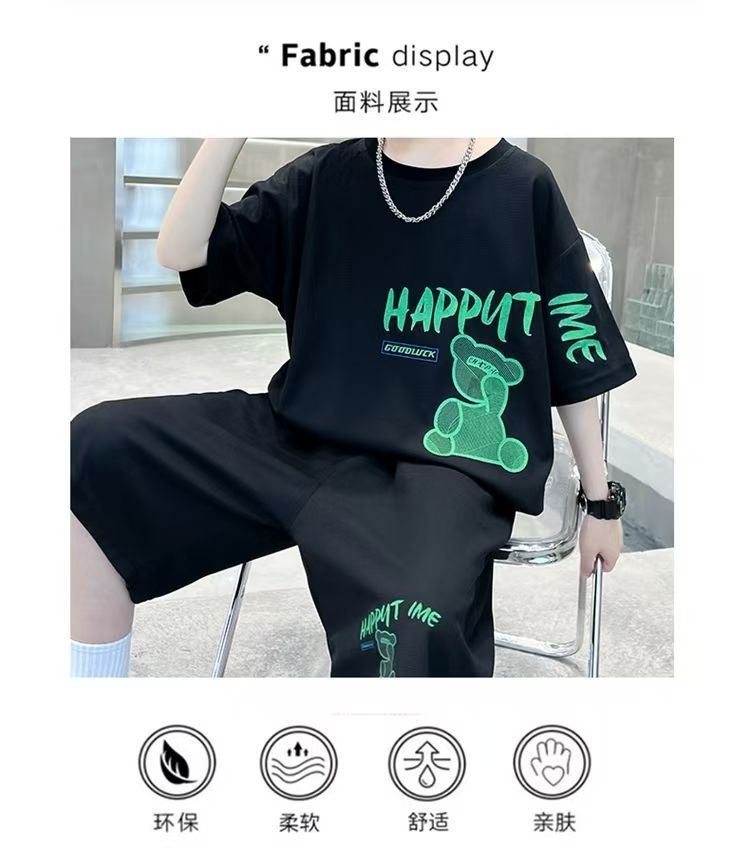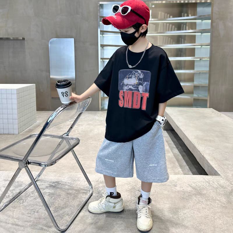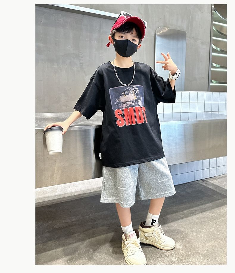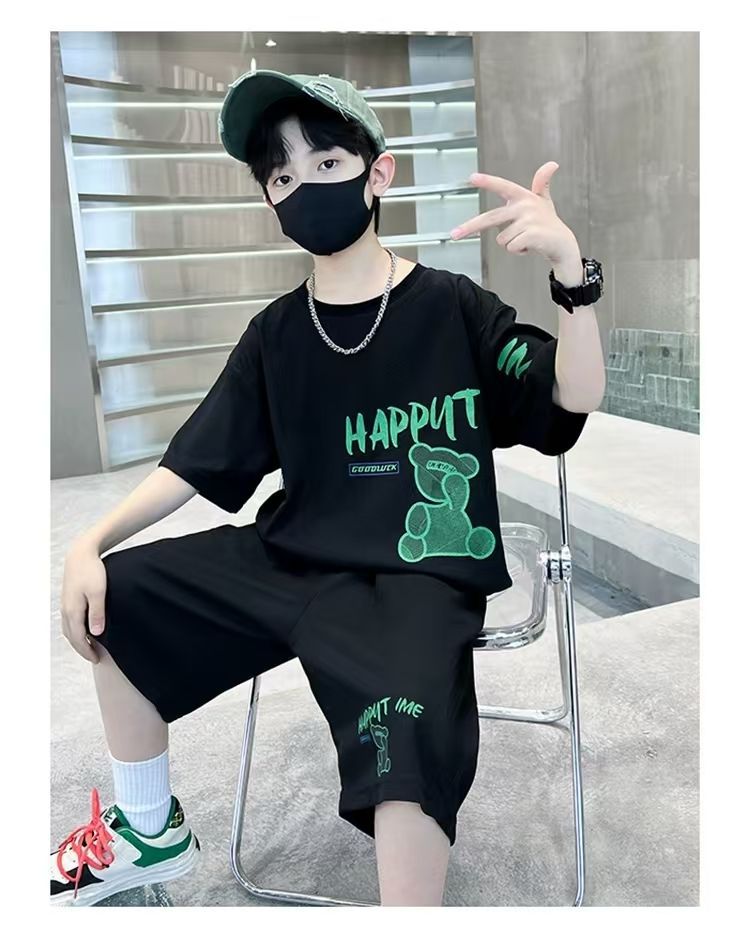 남아 정장, 여름 정장, 큰 남아용 멋진 스트리트 반팔 바지 정장, 운동복 투피스 세트, 트렌디스토어 가기