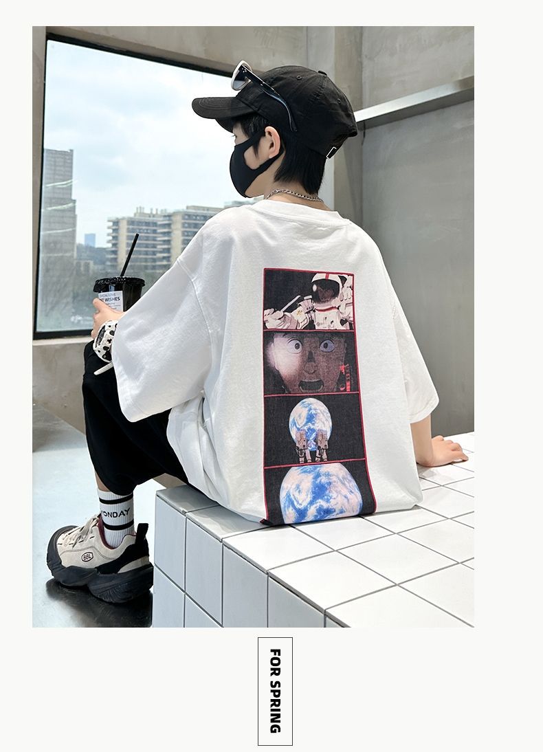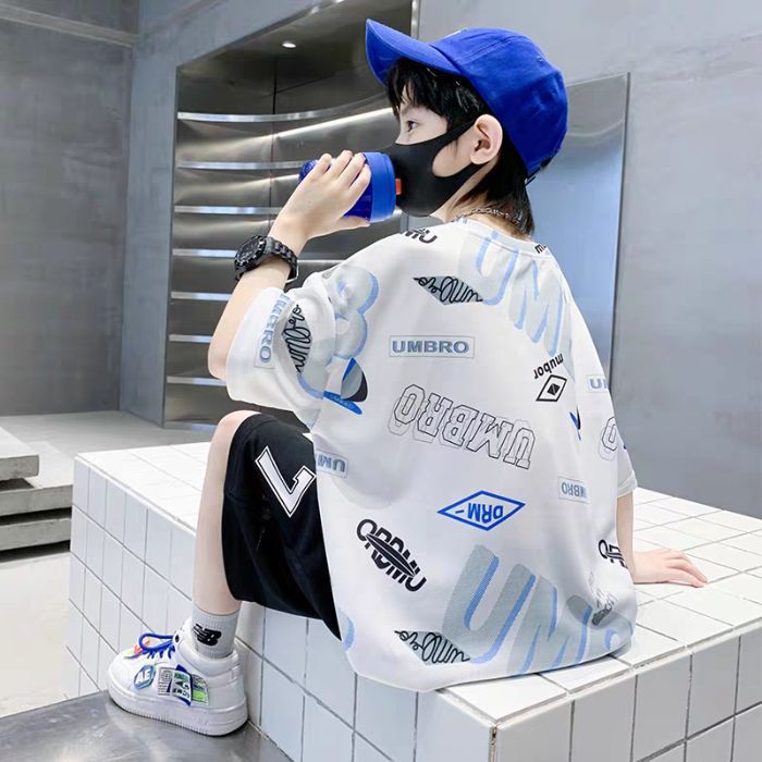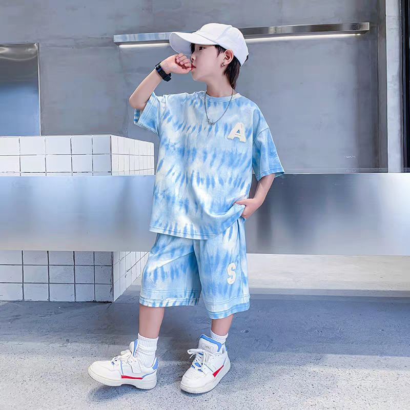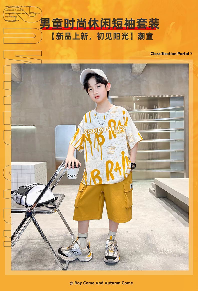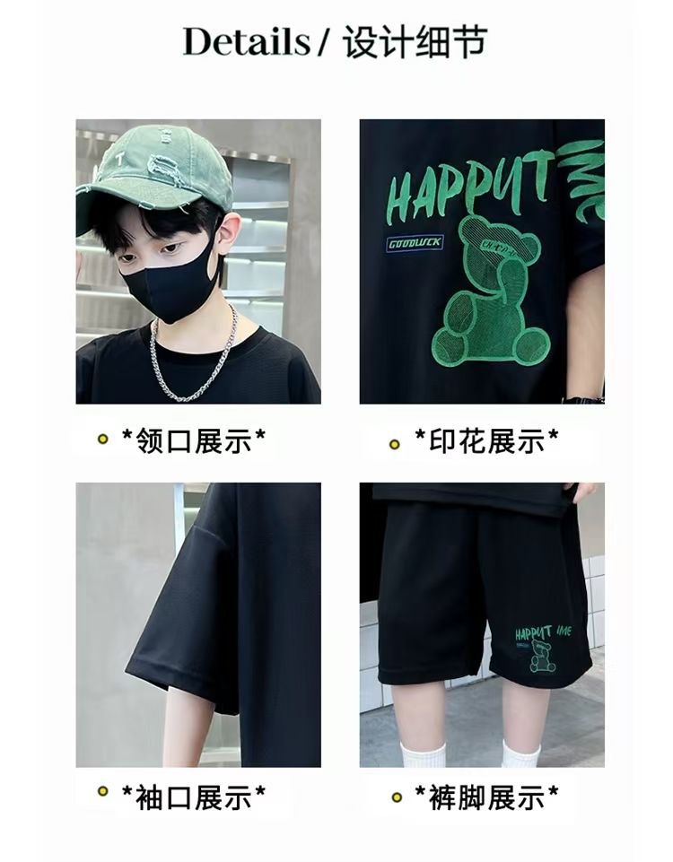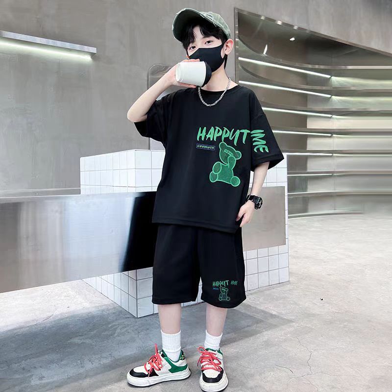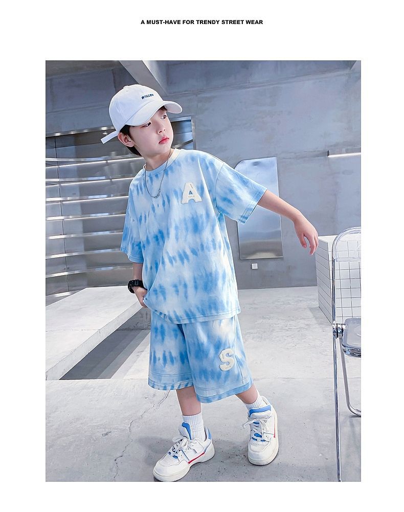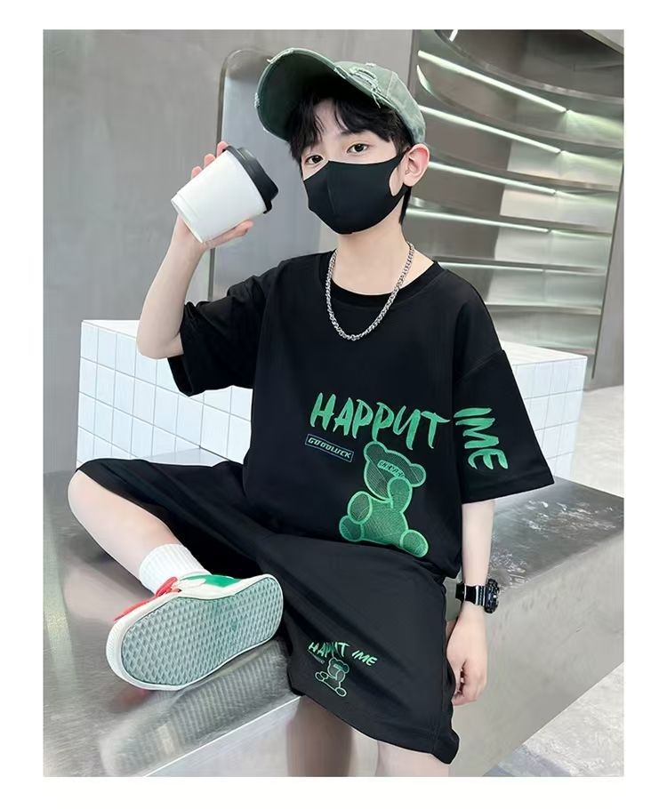 남아 정장, 여름 정장, 큰 남아용 멋진 스트리트 반팔 바지 정장, 운동복 투피스 세트, 트렌디스토어 가기