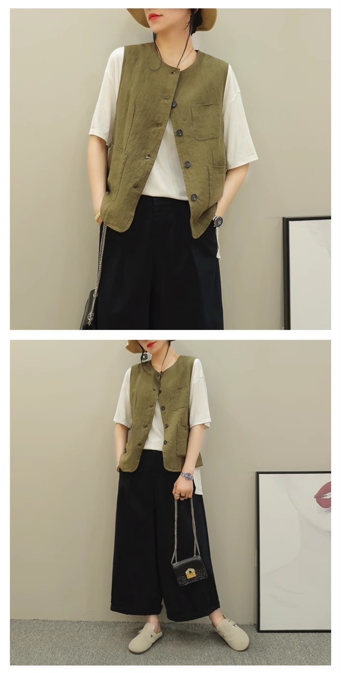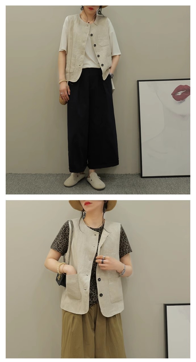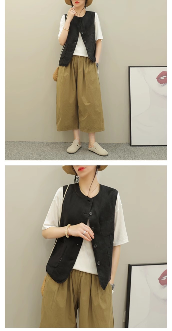 여성을 위한 프렌치 스타일 레이어드 슈트 조끼 가디건, 봄 여름 심플한 라운드 넥, 루즈한 기질, 민소매 조끼스토어 가기