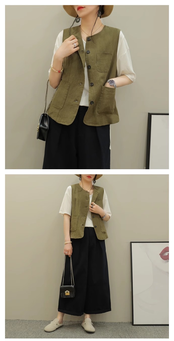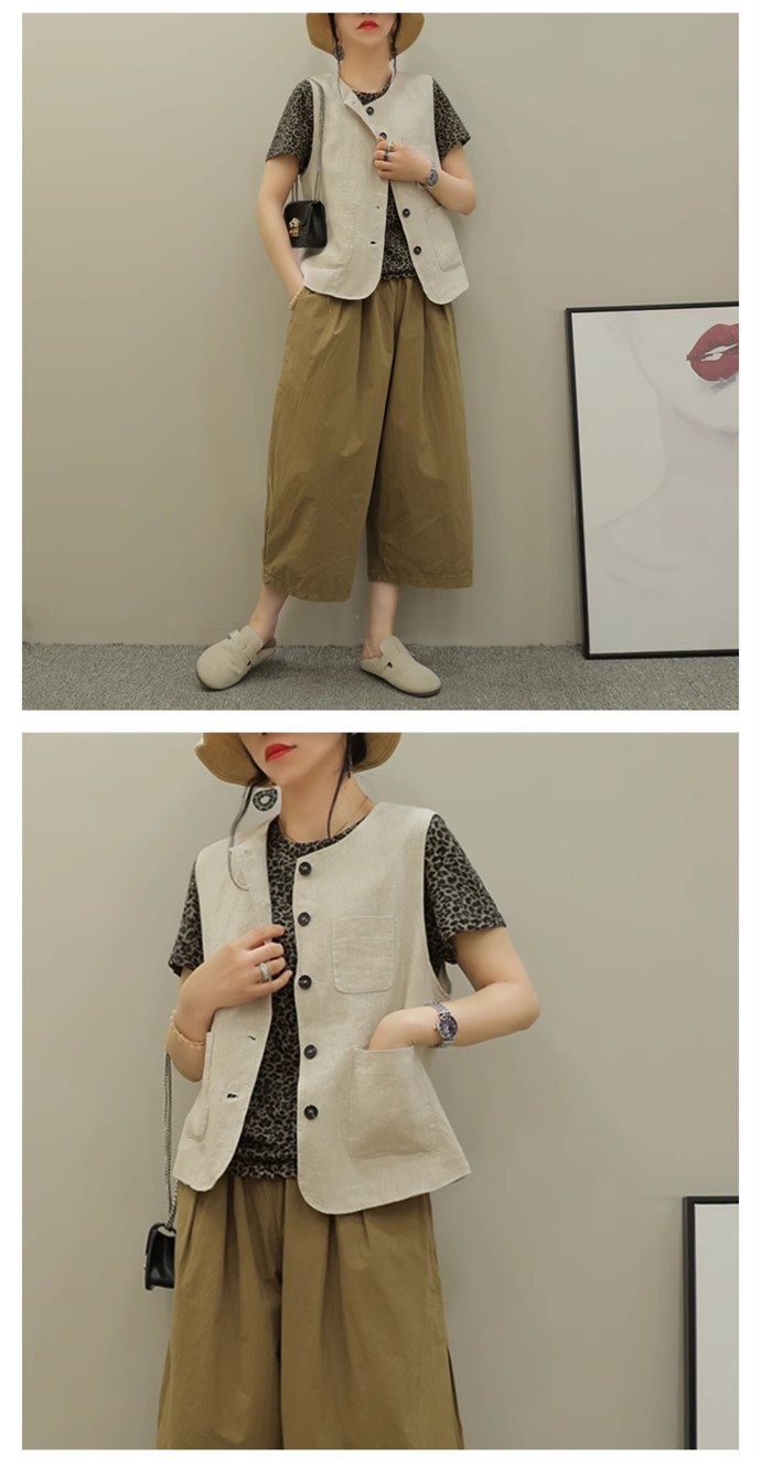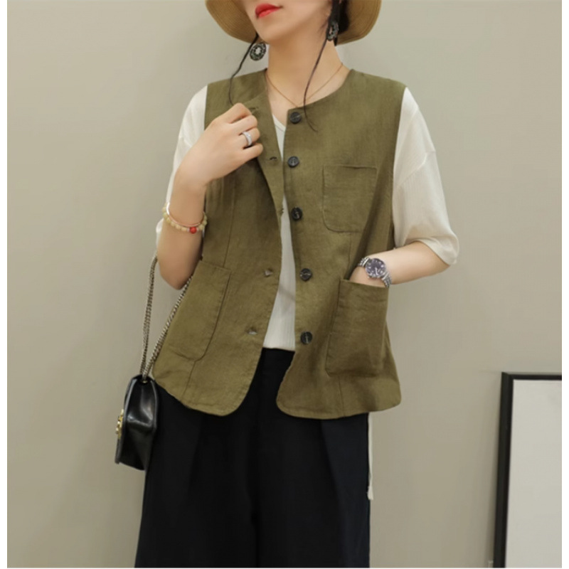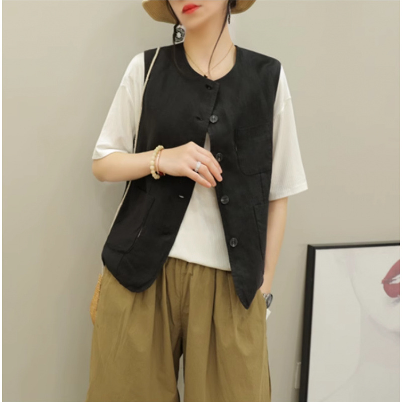 여성을 위한 프렌치 스타일 레이어드 슈트 조끼 가디건, 봄 여름 심플한 라운드 넥, 루즈한 기질, 민소매 조끼