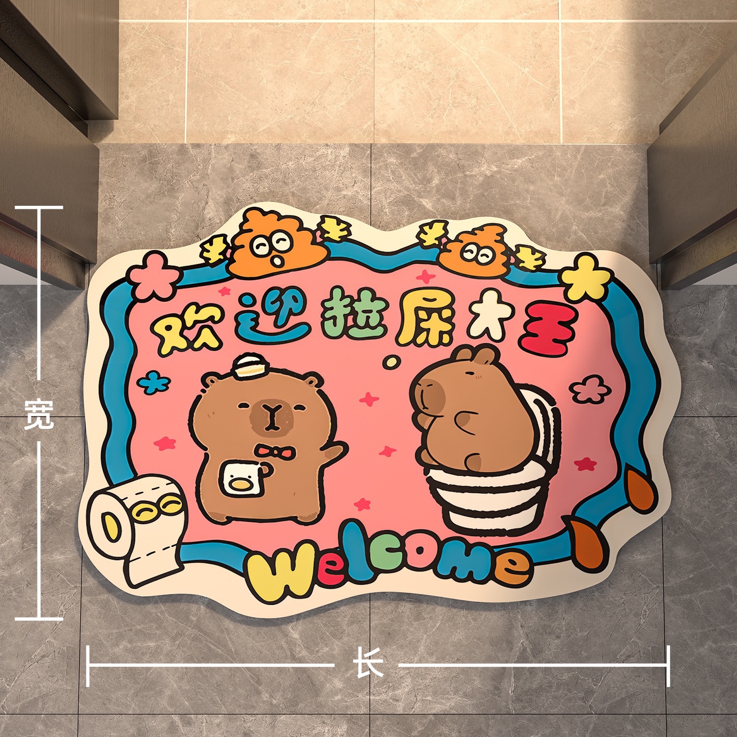 에 오신 것을 환영합니다 똥 킹 욕실 매트 만화 Diatom 진흙 흡수성 미끄럼 방지 화장실 매트 화장실 카펫스토어 가기