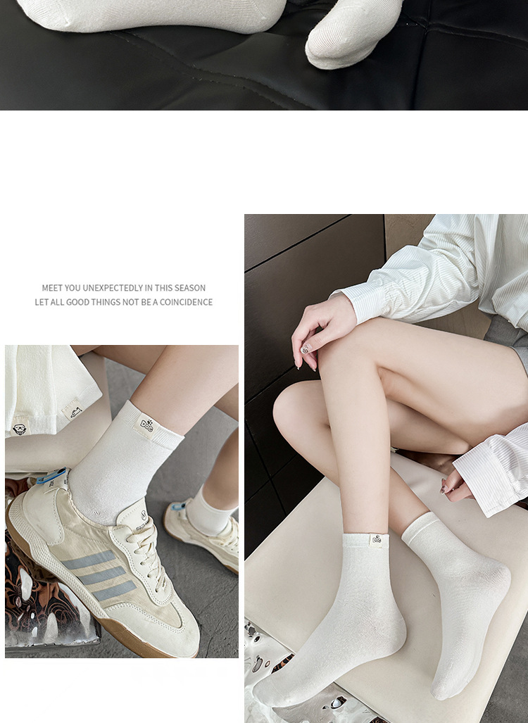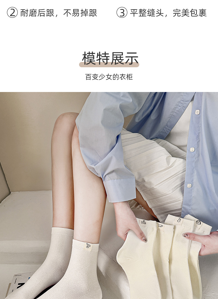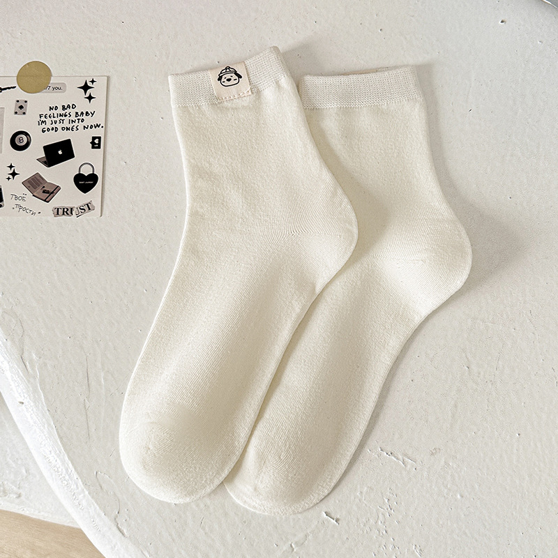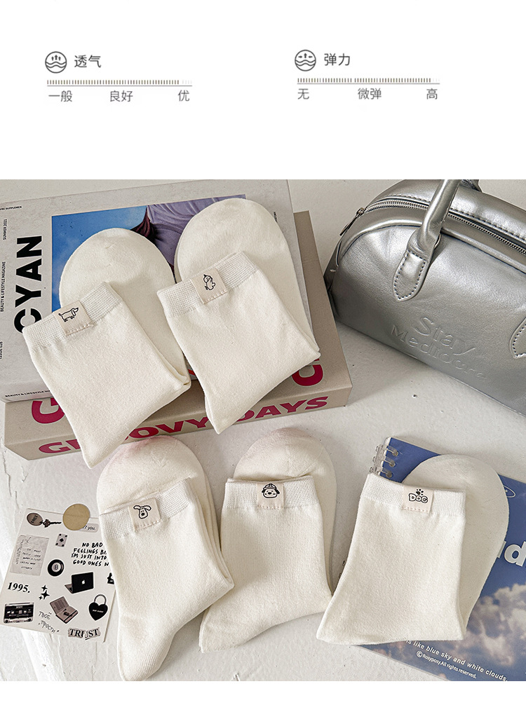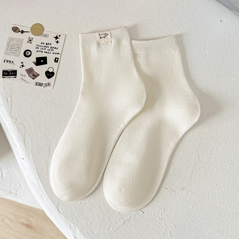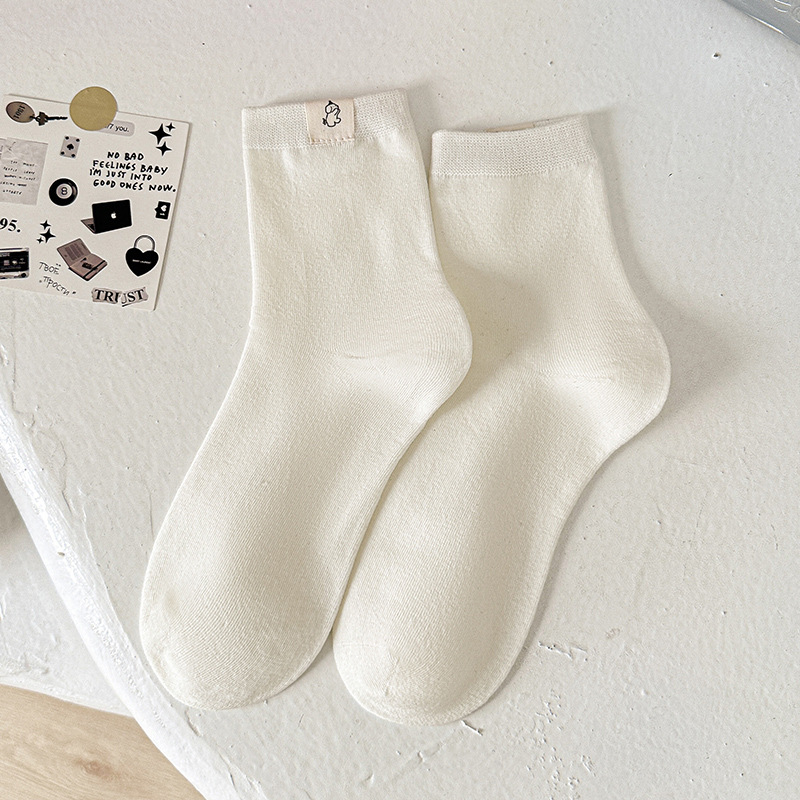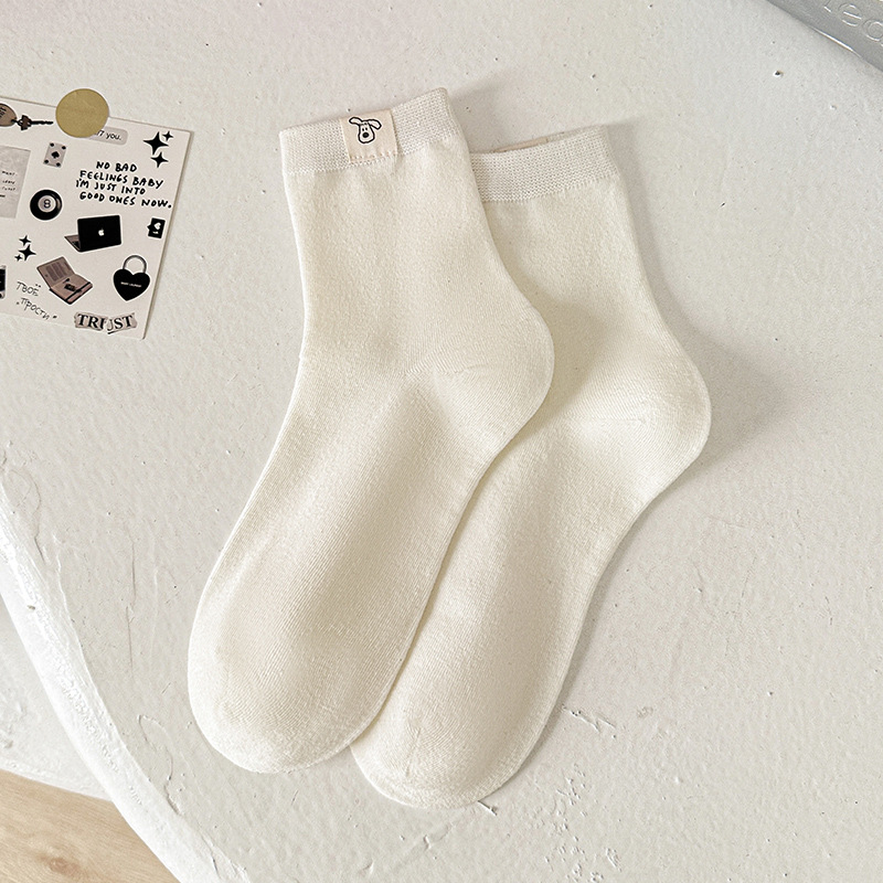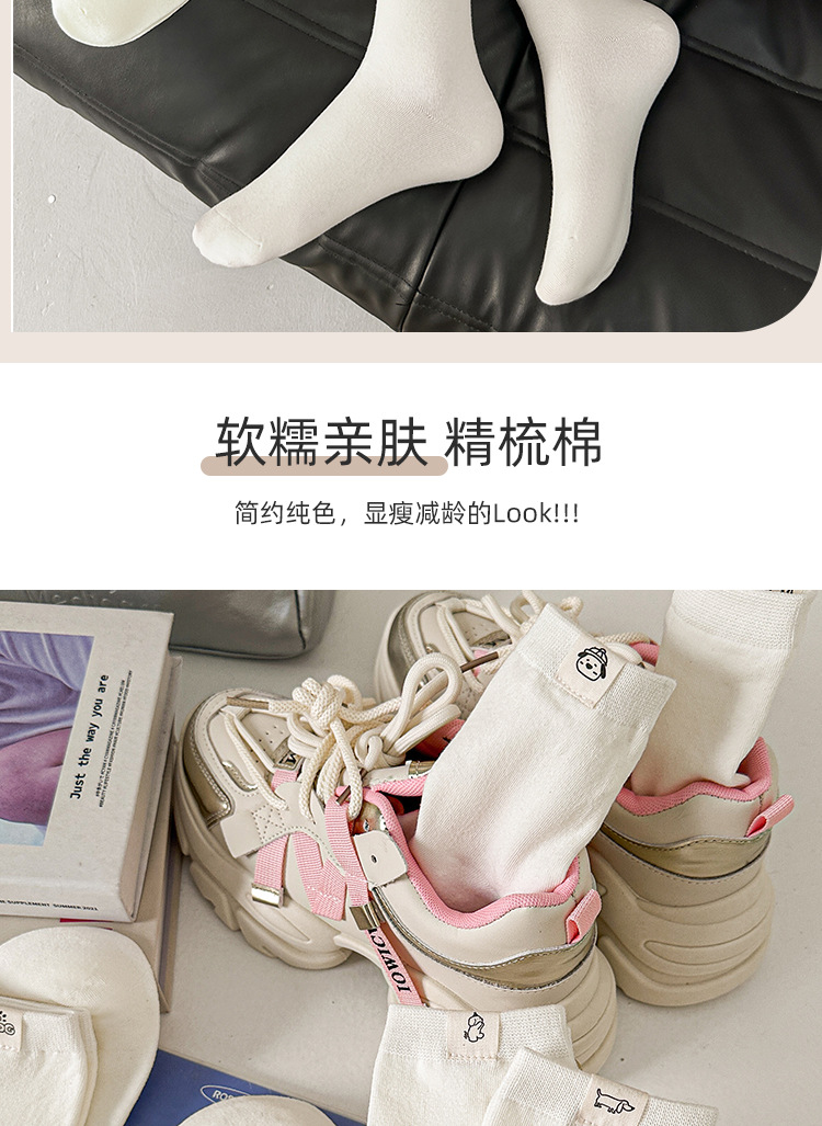 보풀 방지 기능이 있는 일체형 뼈없는 강아지 천 라벨 미드 튜브 양말 여성용 흰색 양말 봄 여름 빗질면 학생 얇은 스타일스토어 가기