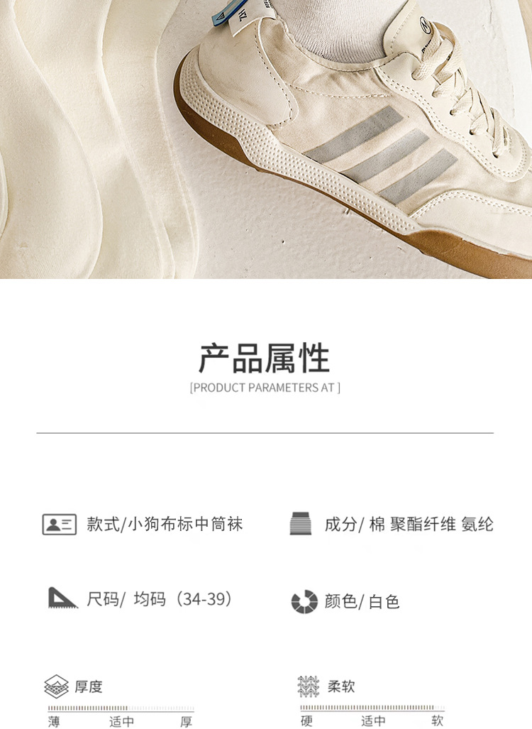보풀 방지 기능이 있는 일체형 뼈없는 강아지 천 라벨 미드 튜브 양말 여성용 흰색 양말 봄 여름 빗질면 학생 얇은 스타일
