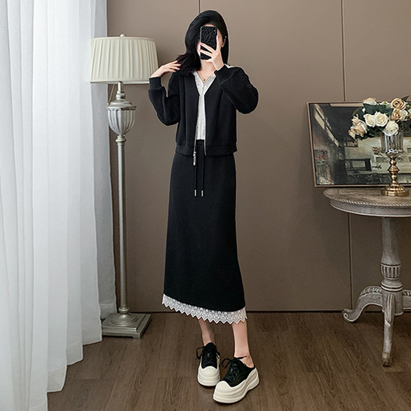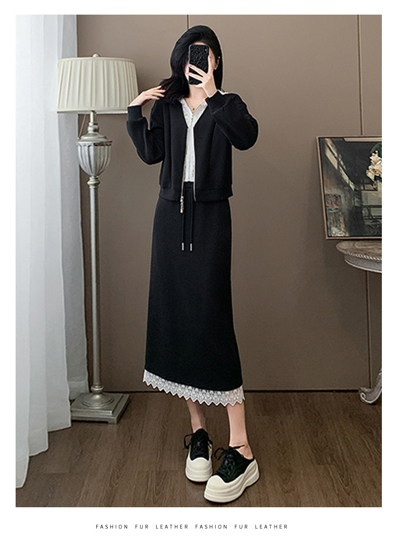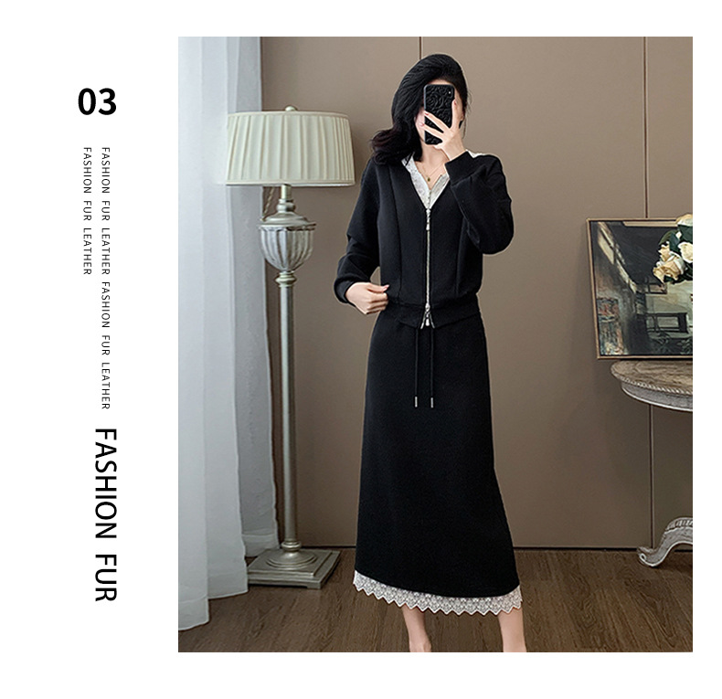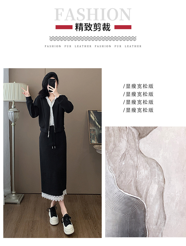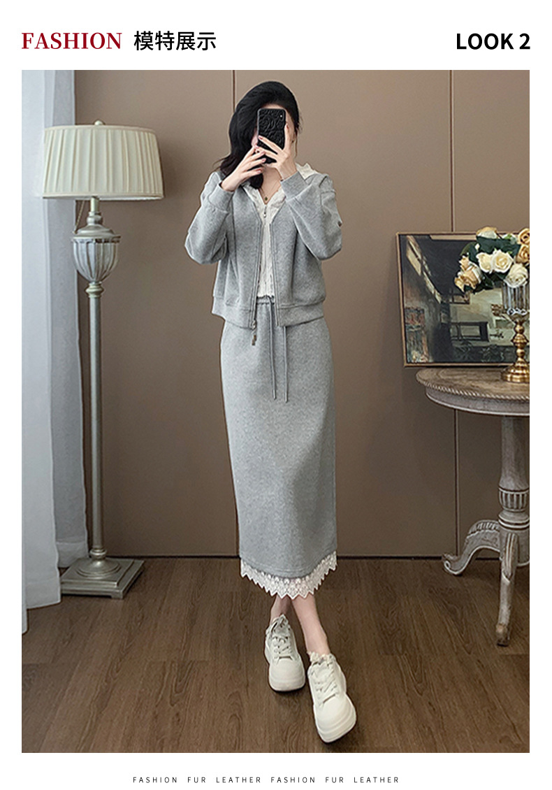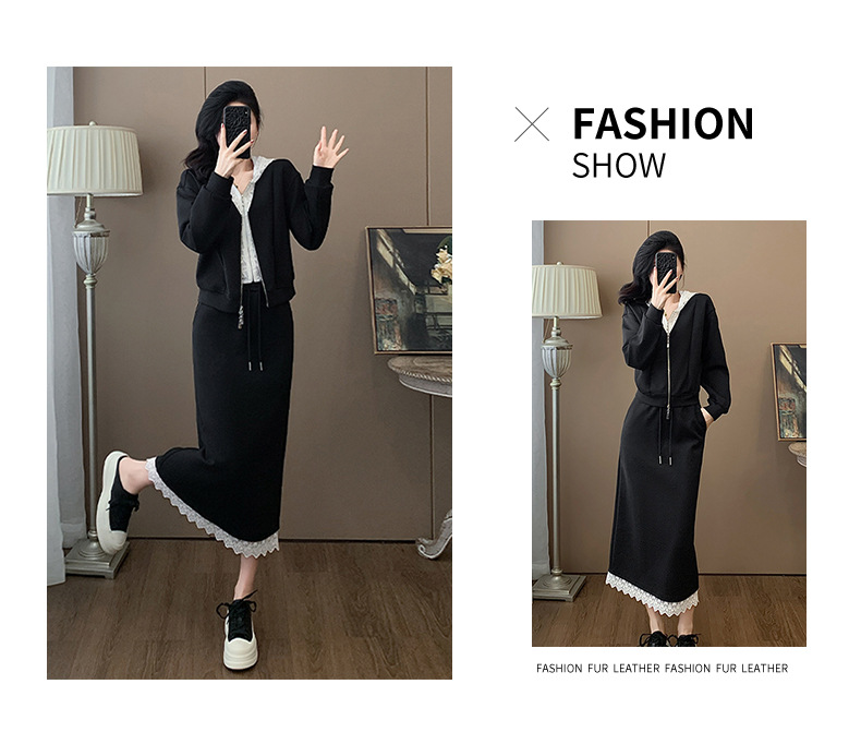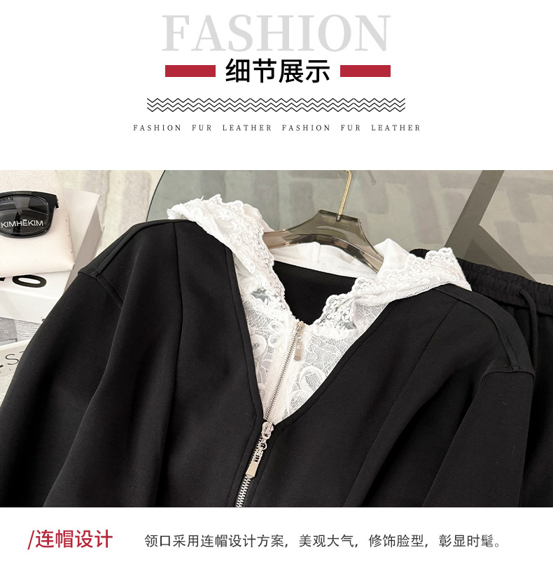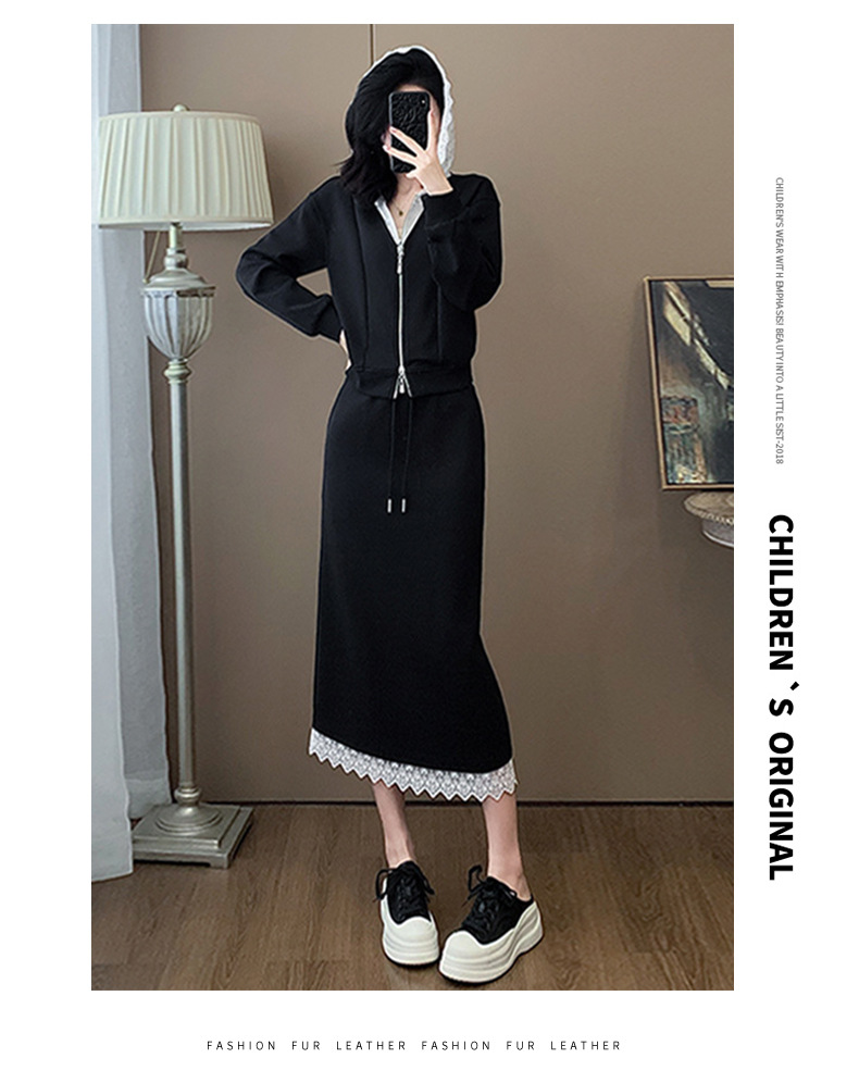 캐주얼 패션 원피스 여성의 봄 새로운 후드 지퍼 짧은 꽃 드로우 스트링 스커트 투피스 유행 세트스토어 가기