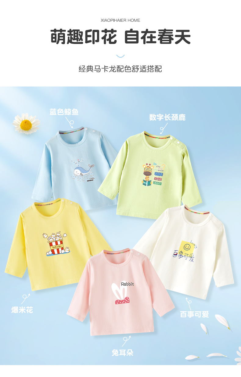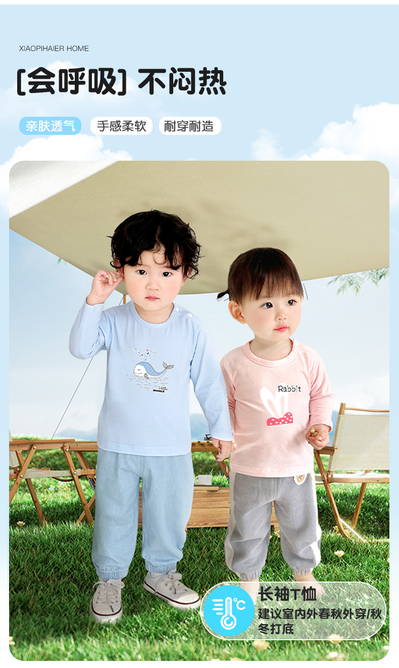 아기 티셔츠 봄과 가을 여름 어린이 순면 얇은 긴 소매 기지 남녀 어린이 여름 옷 아기 탑
