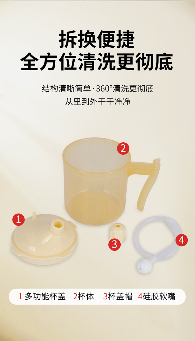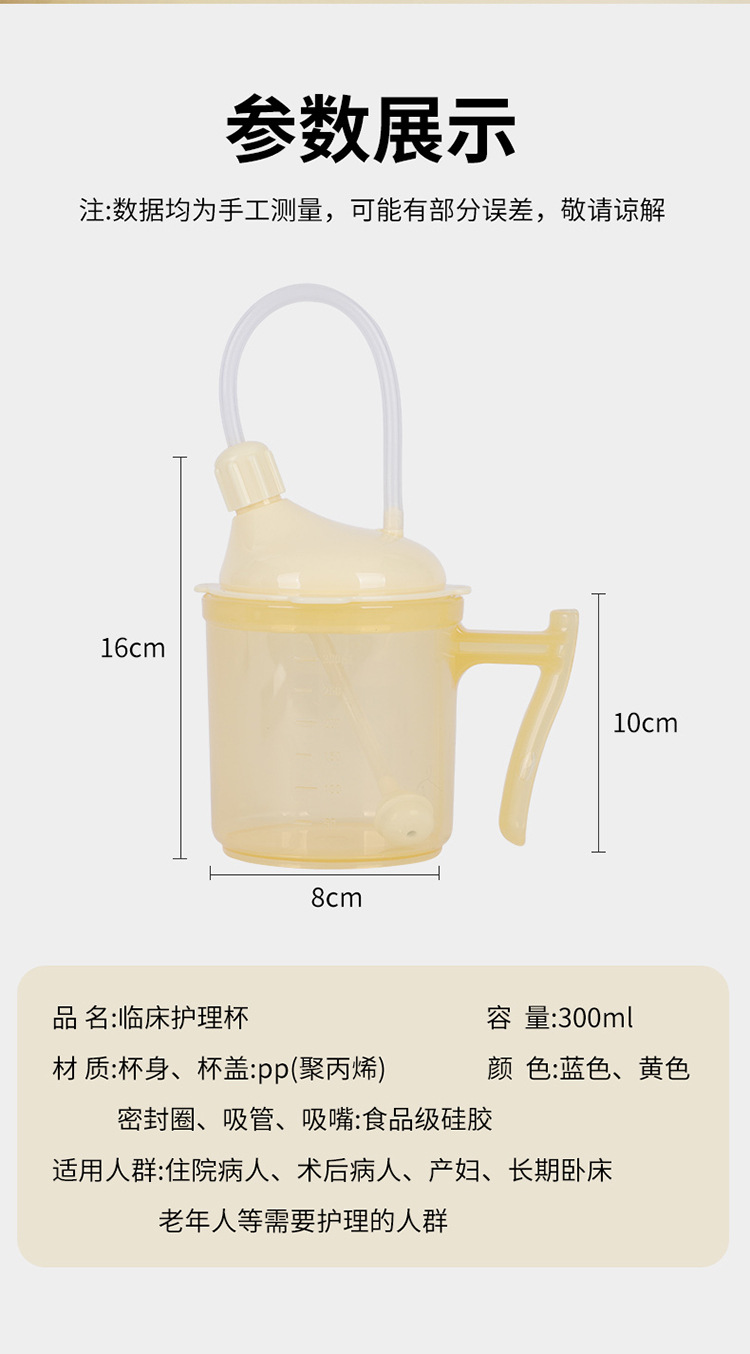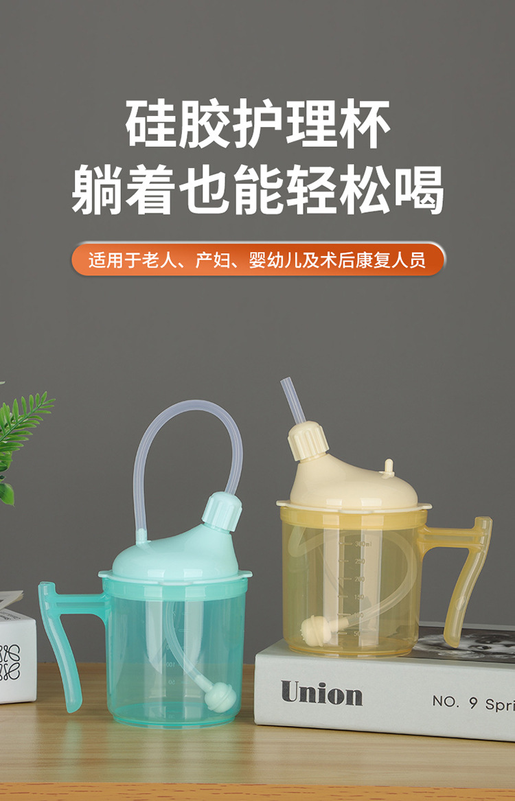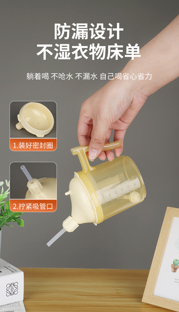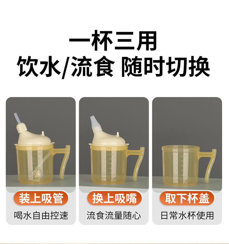 Bedrided 환자는 노인 식수를위한 푸드 케어 컵을 흐릅니다.