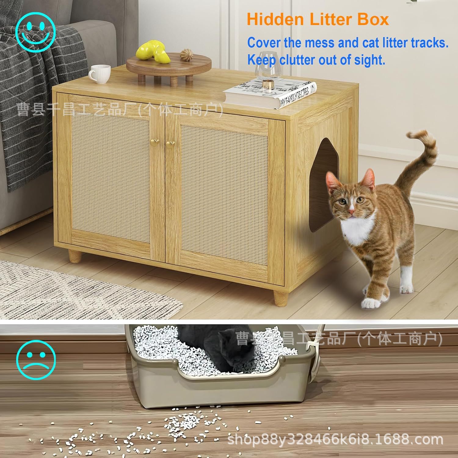 숨겨진 고양이 쓰레기 상자 거실 TV 캐비닛 다기능 보관 캐비닛 나무 애완 동물 집 편리하고 공간 절약형