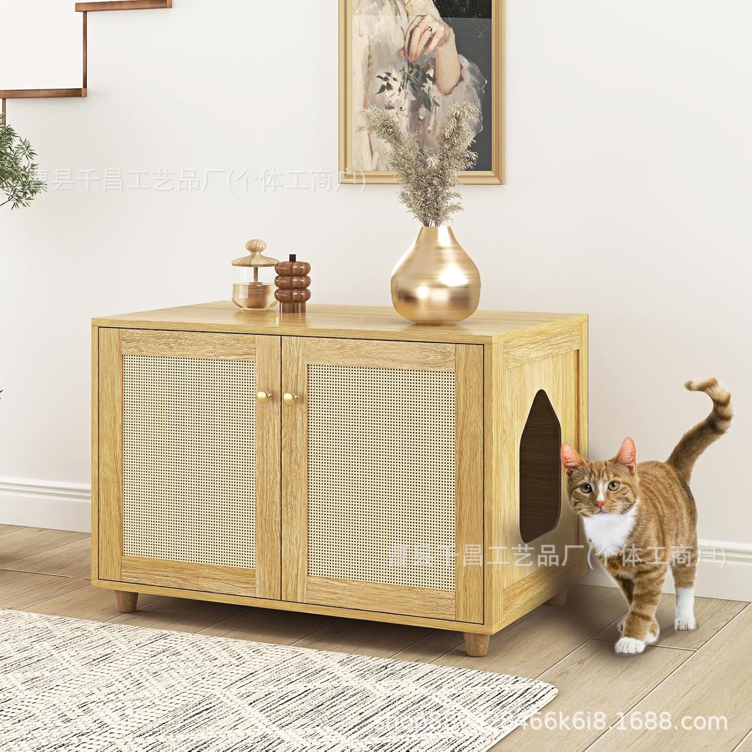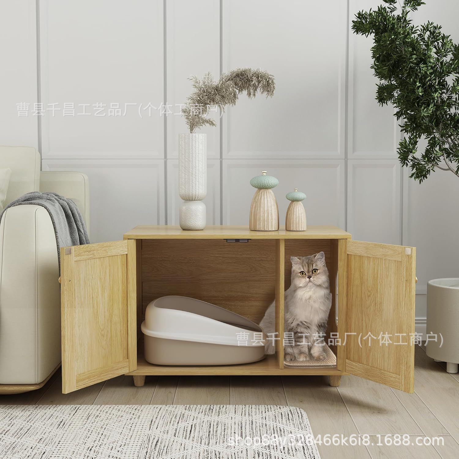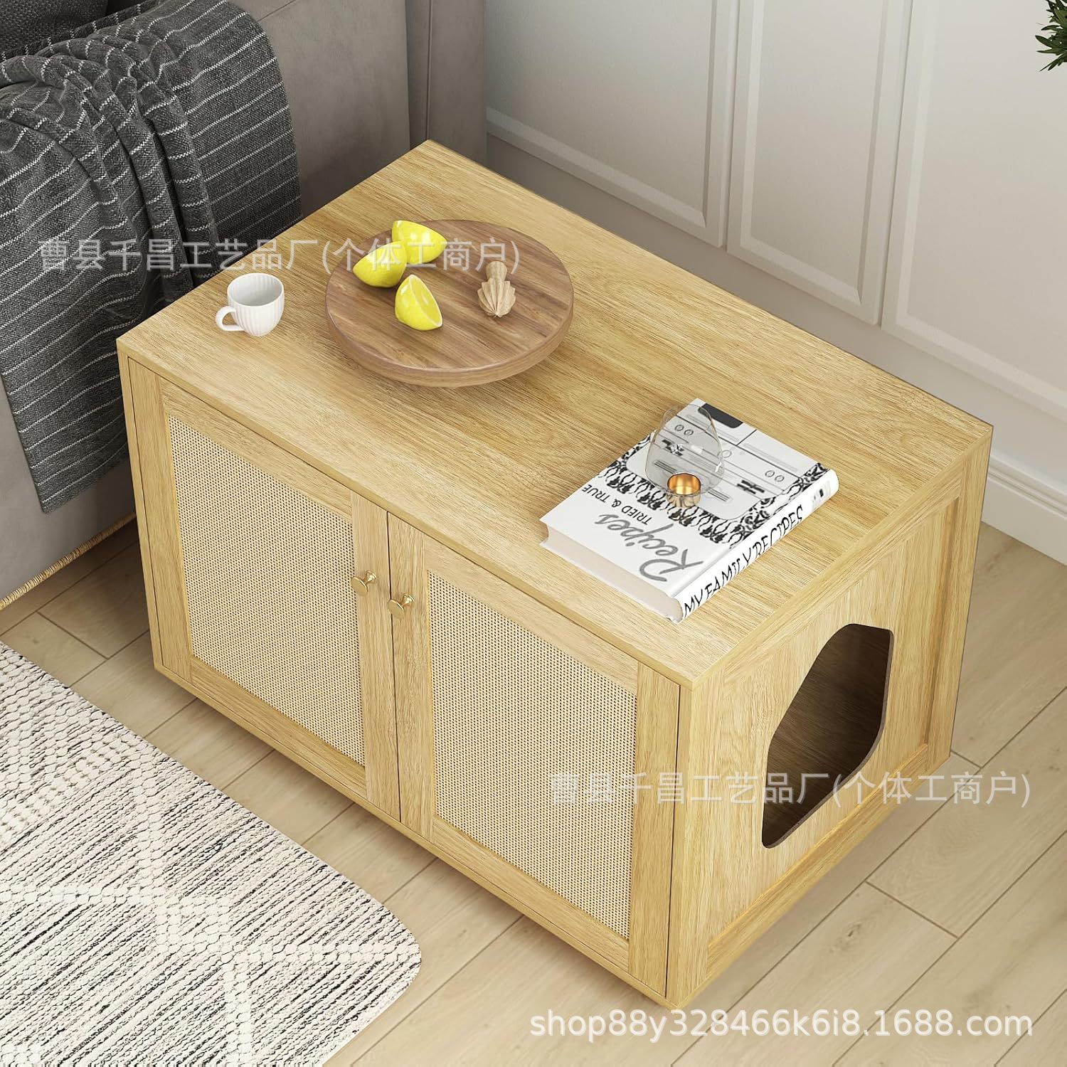 숨겨진 고양이 쓰레기 상자 거실 TV 캐비닛 다기능 보관 캐비닛 나무 애완 동물 집 편리하고 공간 절약형스토어 가기