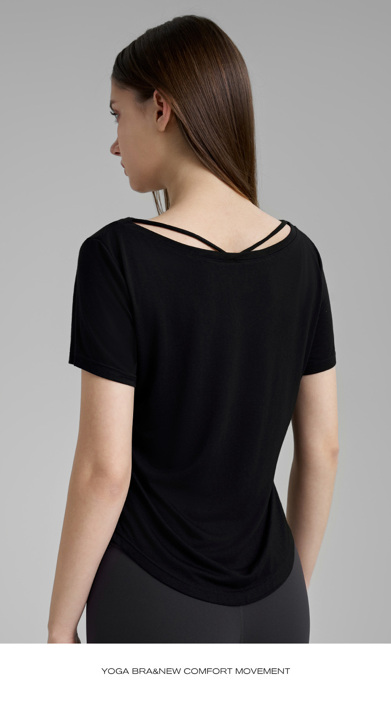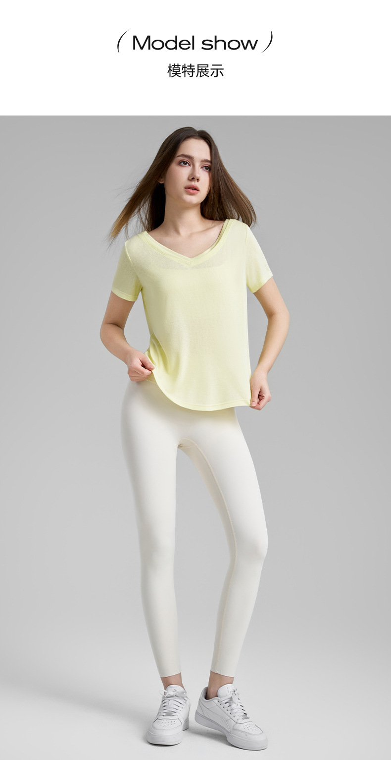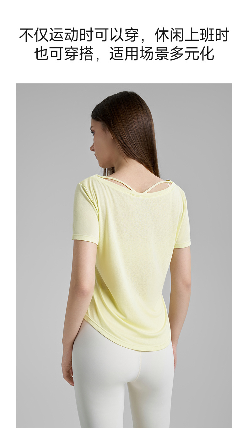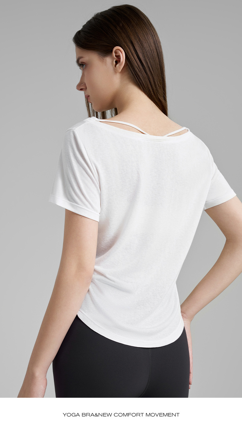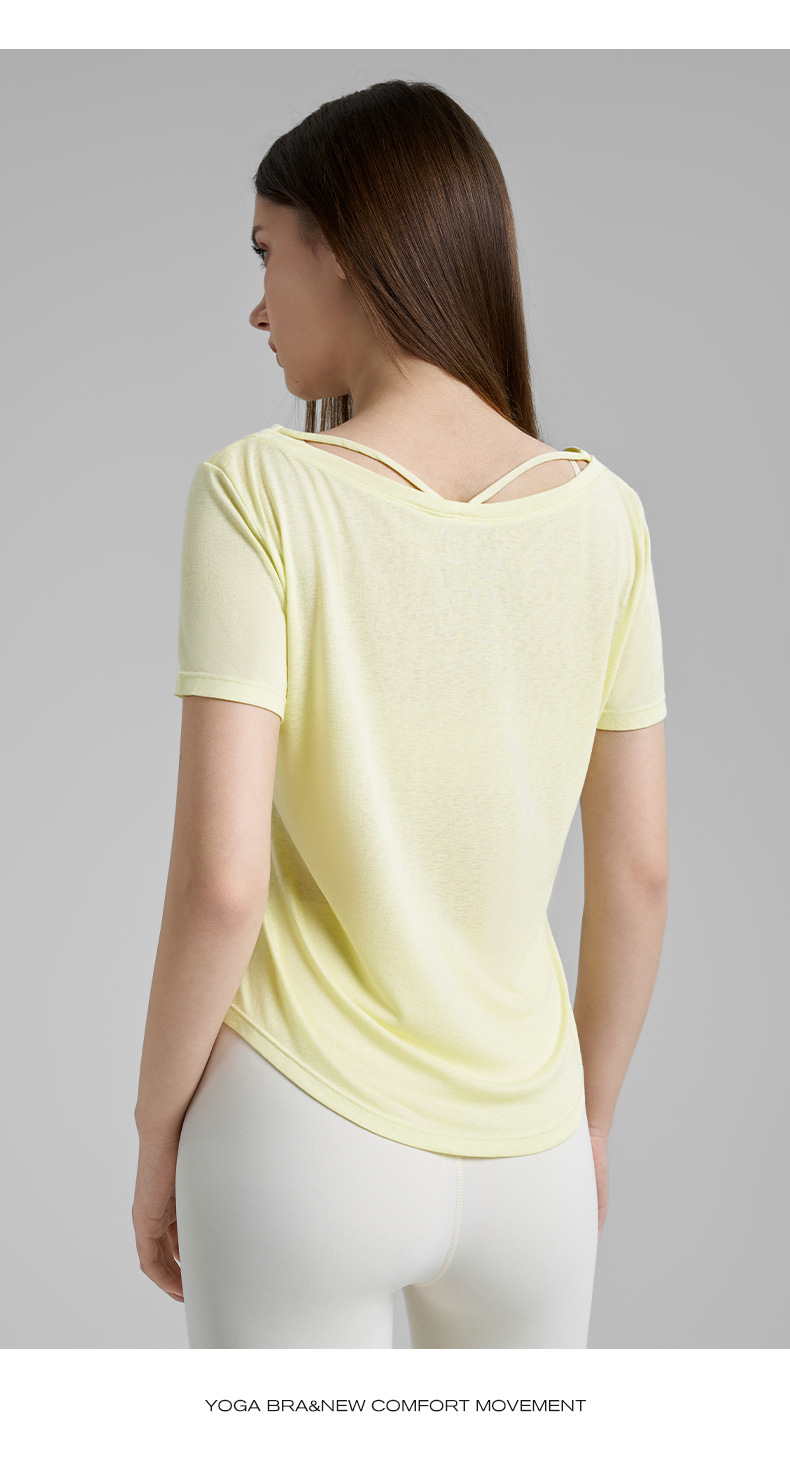 고급 요가 티셔츠 여성용 가짜 투피스 로우 V 넥 성적 아름다운 등 피트니스 반팔 느슨한 통기성 요가 블라우스