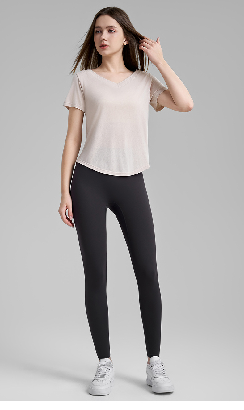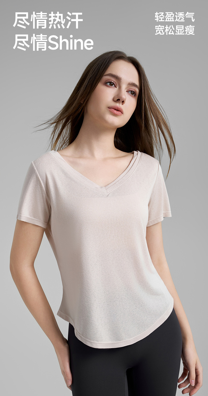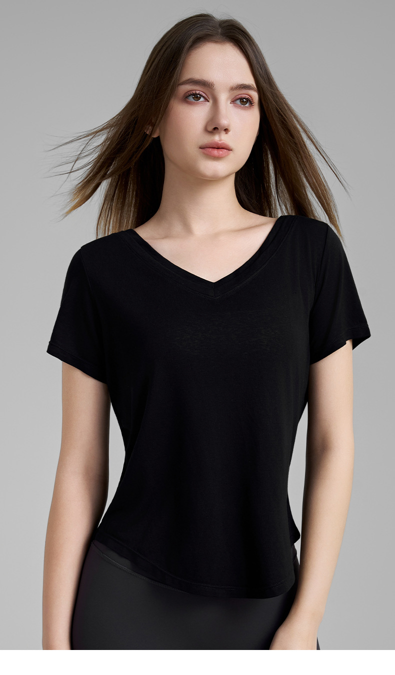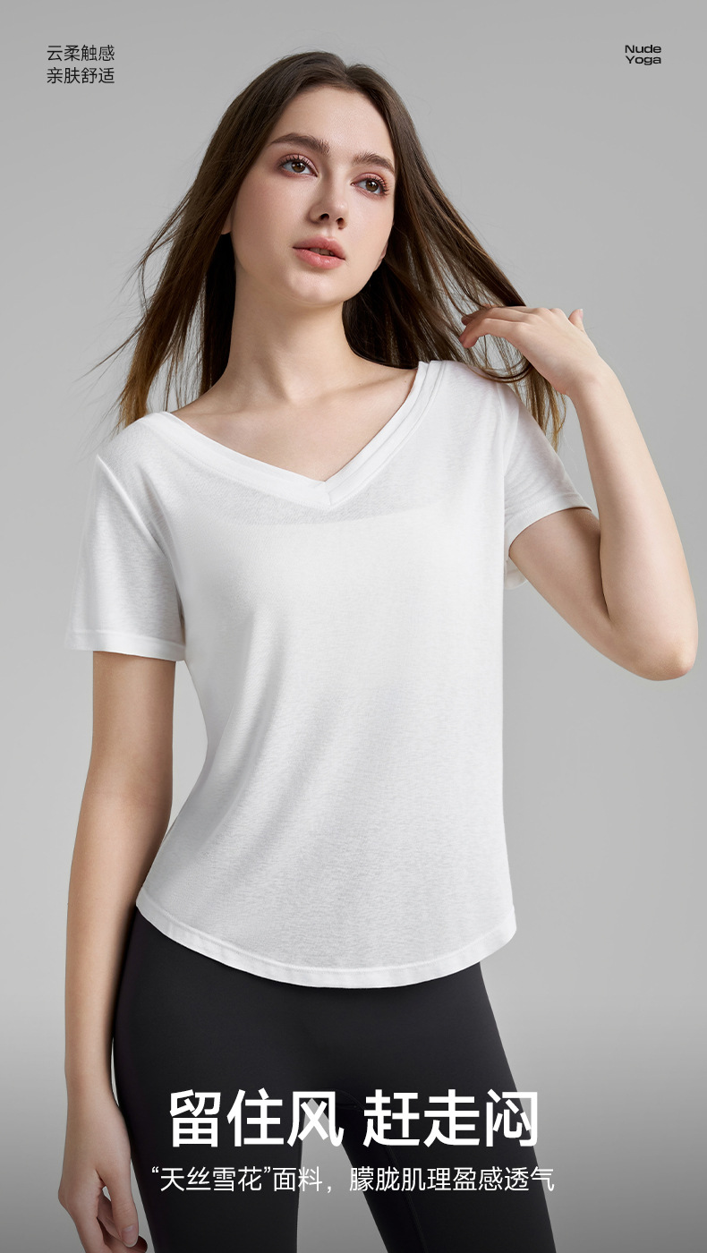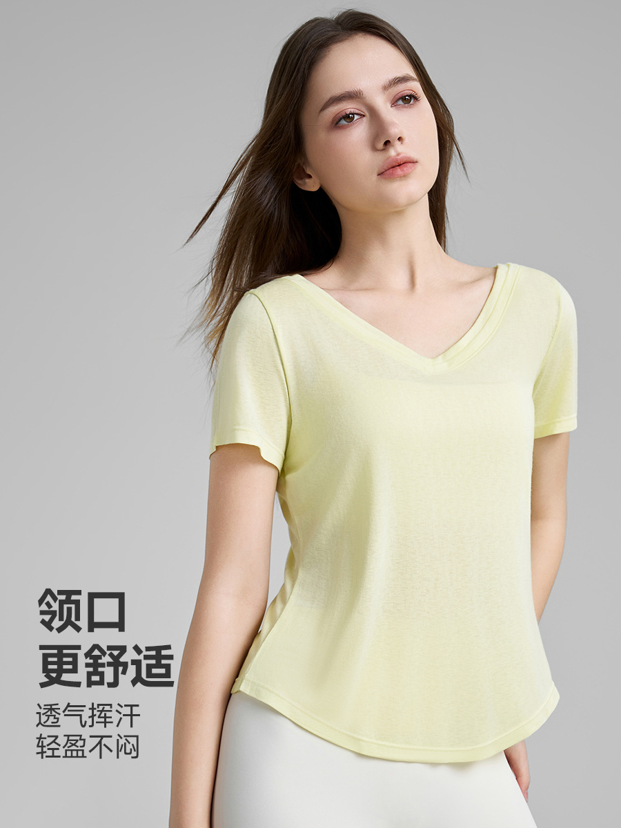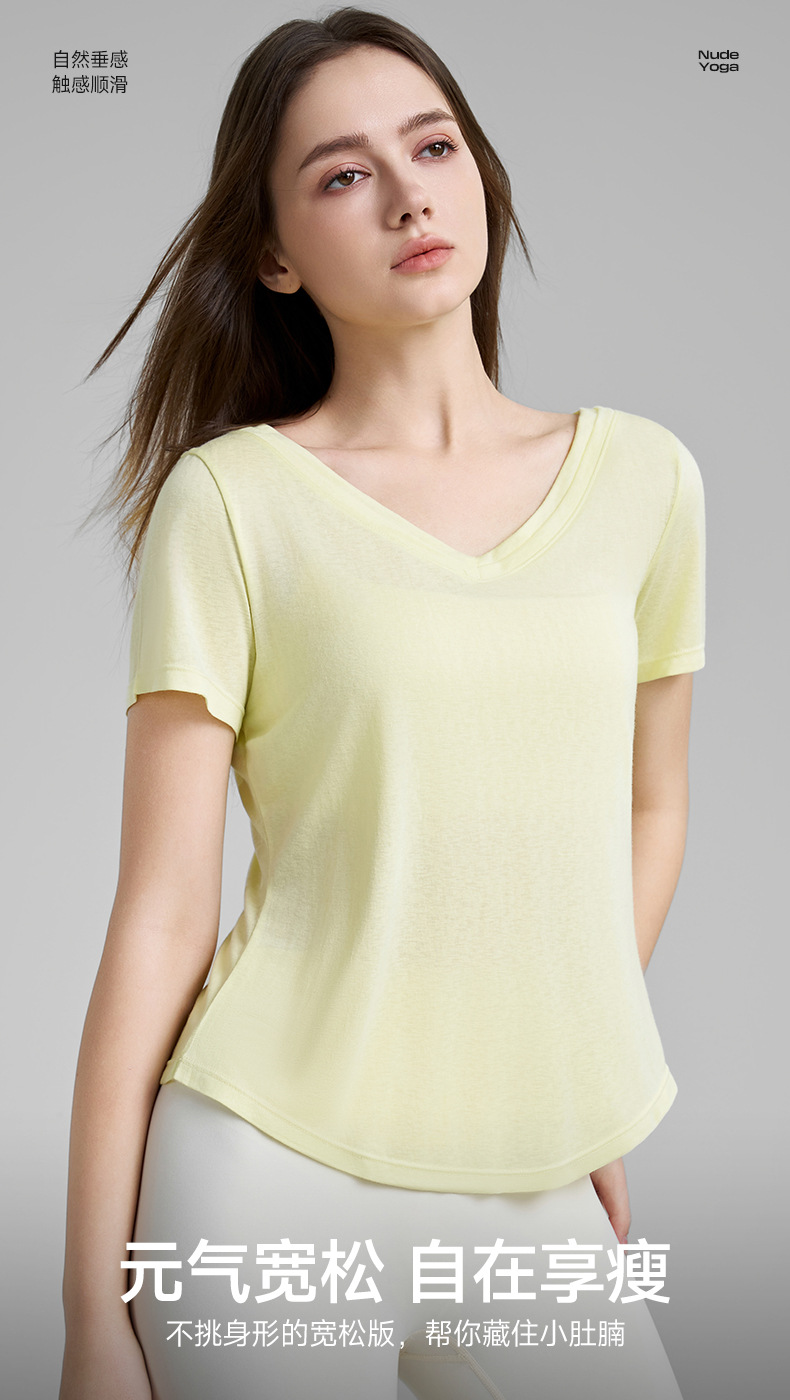 고급 요가 티셔츠 여성용 가짜 투피스 로우 V 넥 성적 아름다운 등 피트니스 반팔 느슨한 통기성 요가 블라우스