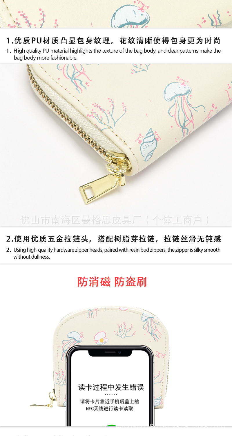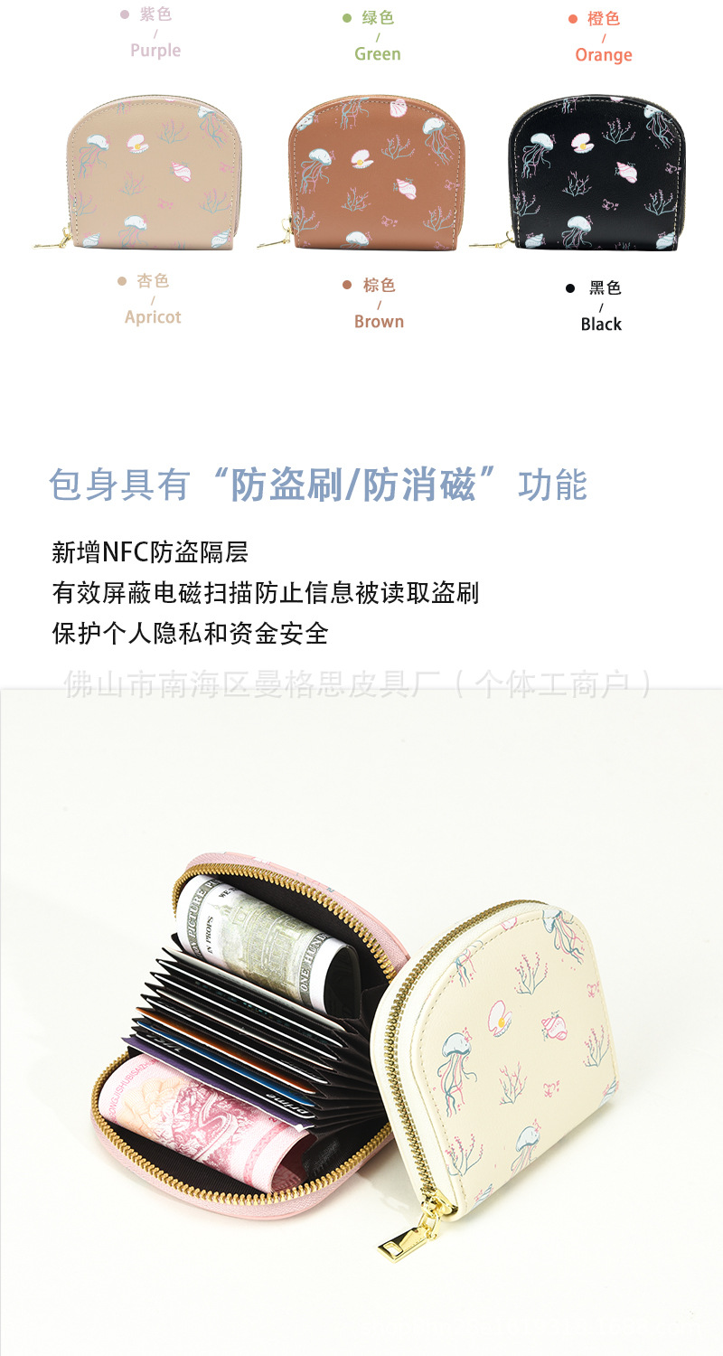 2025년 신형 RFID 자기장 방지 아코디언 카드 지갑 해저 세계 지퍼 동전 지갑 카드백 해파리