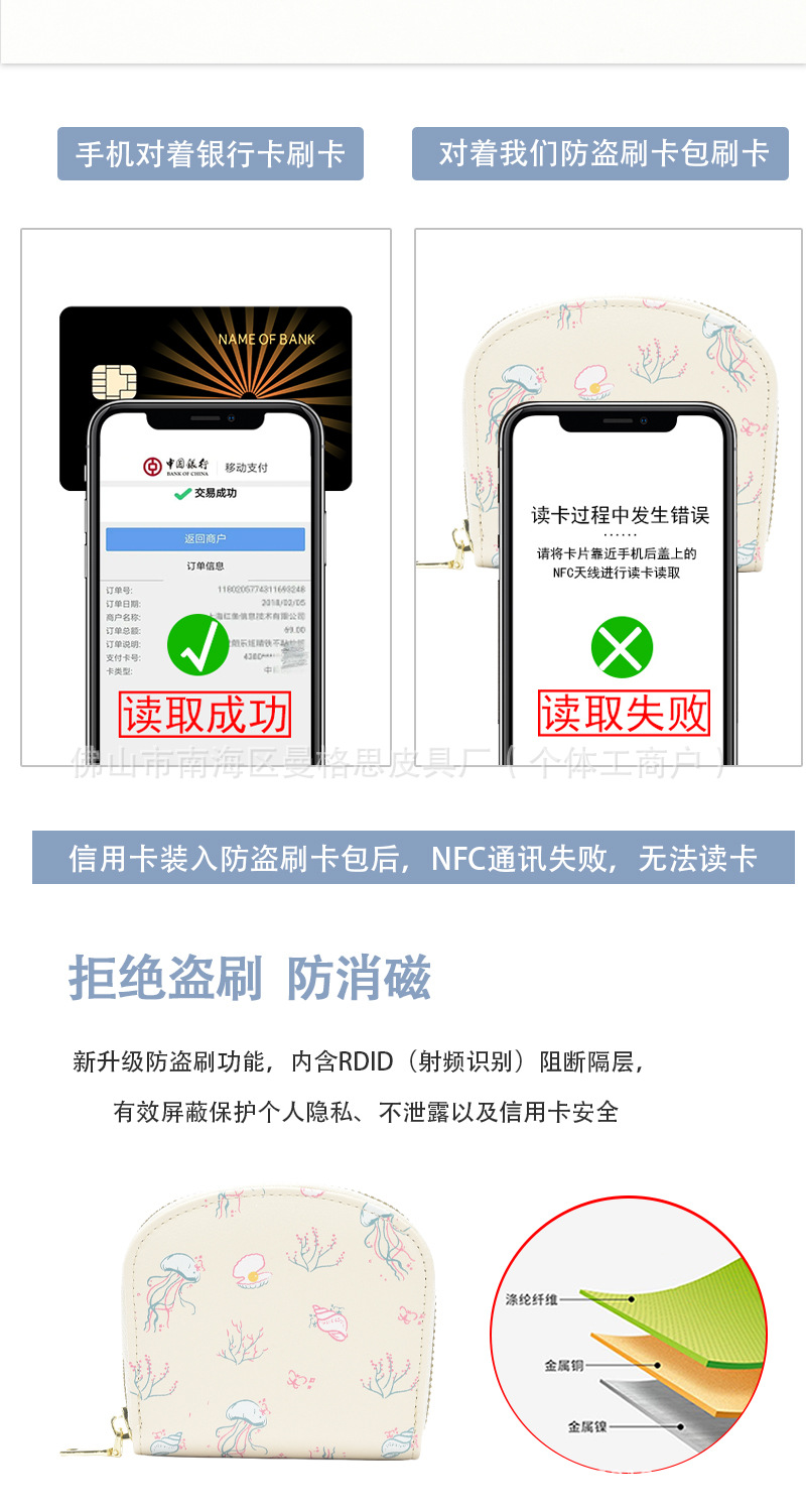 2025년 신형 RFID 자기장 방지 아코디언 카드 지갑 해저 세계 지퍼 동전 지갑 카드백 해파리스토어 가기