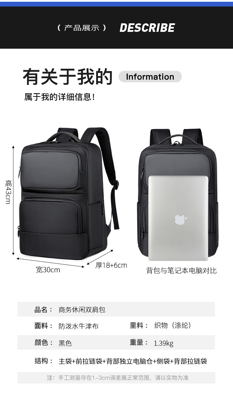 배낭 새로운 대용량 유행 올 매치 배낭 단색 간단한 캐주얼 컴퓨터 가방 비즈니스 통근 배낭스토어 가기