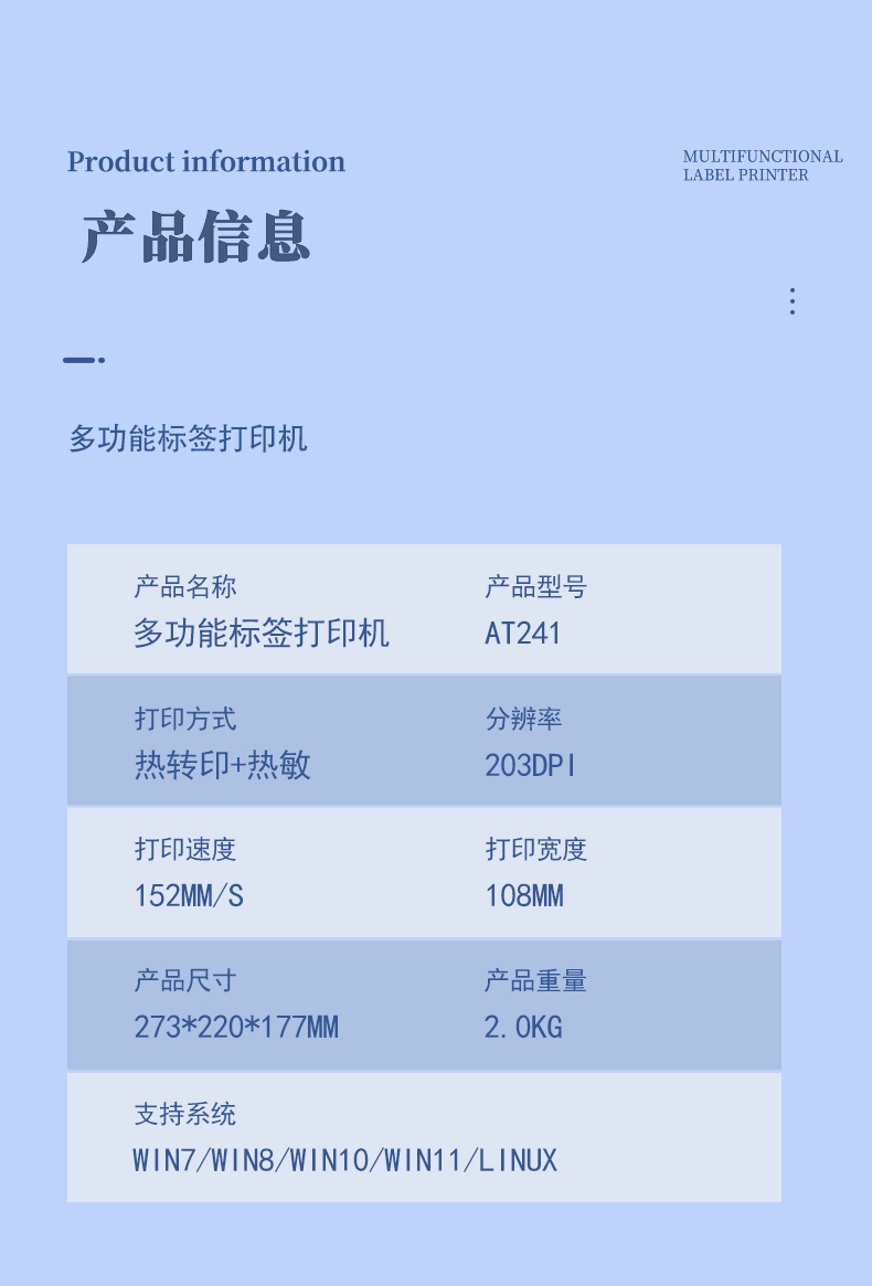 AT241 바코드 프린터 의류 태그 열전달 자체 접착 라벨 프린터 익스프레스 전자 주문스토어 가기