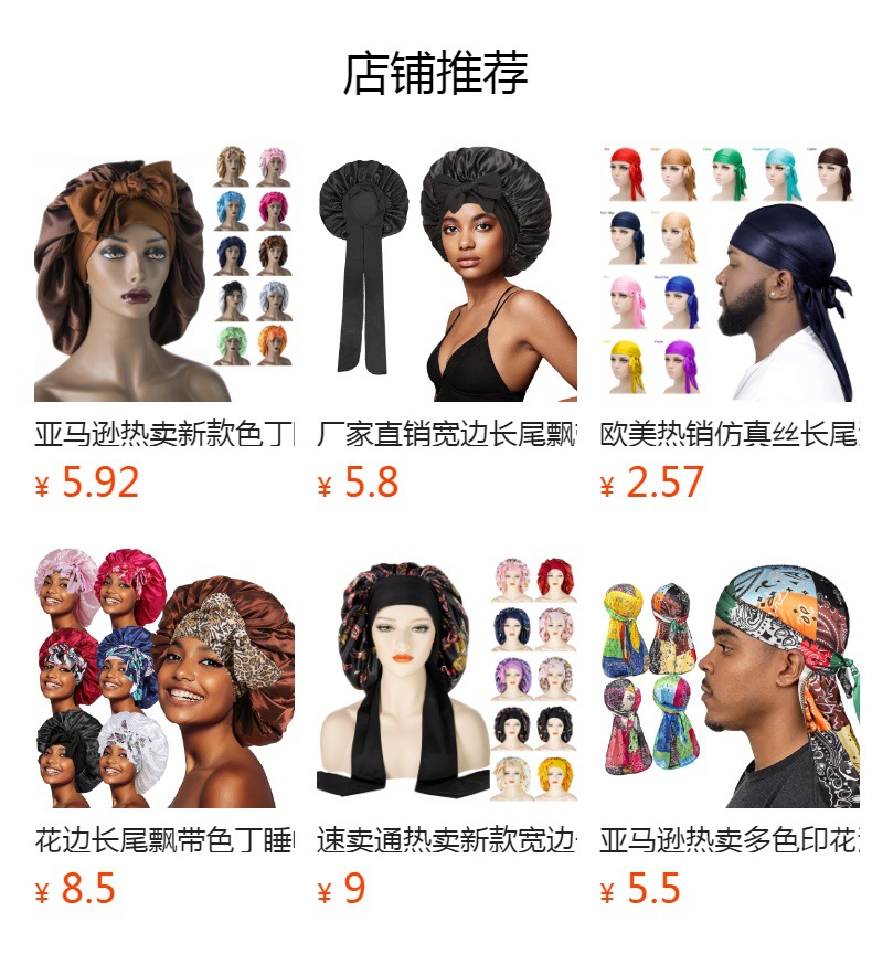 유럽과 미국의 새로운 스타일의 긴 꼬리 수면 모자, 고탄성 여성용 새틴 헤어 모자, 긴 리본 헤어 케어 모자, 큰 머리 둘레스토어 가기