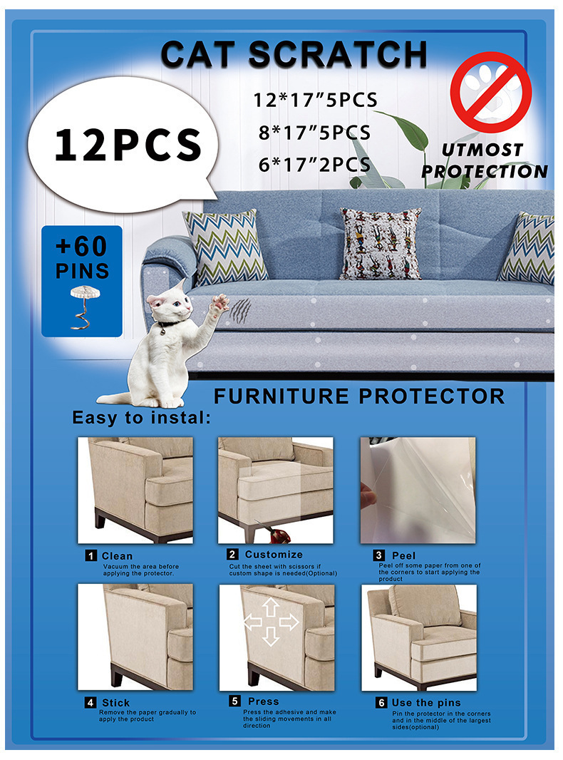투명 긁힘 방지 및 내마모성 소파 고양이 발톱 방지 가구 스티커 PVC 소파 보호 스티커 접착식 긁힘 방지스토어 가기