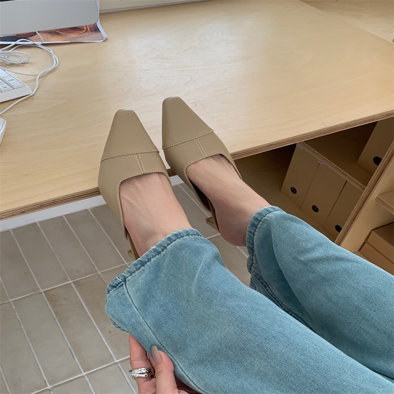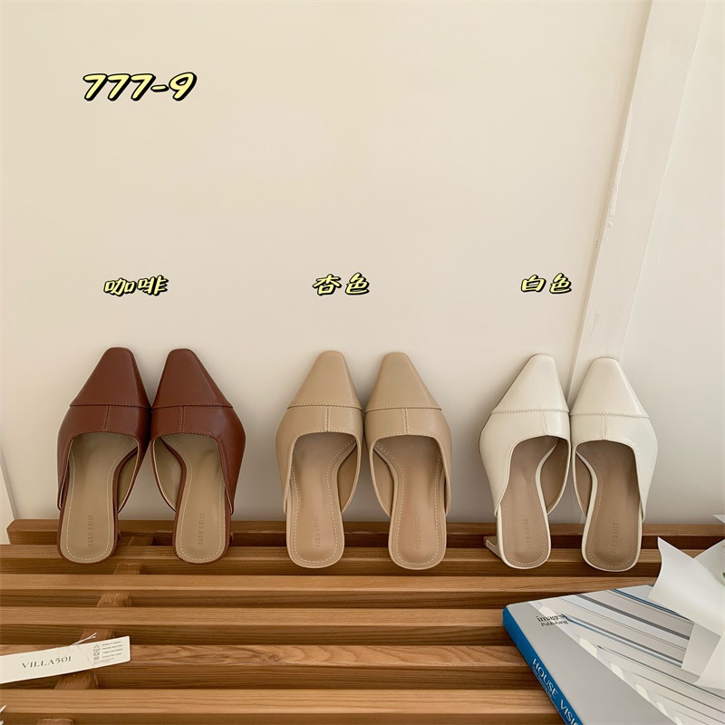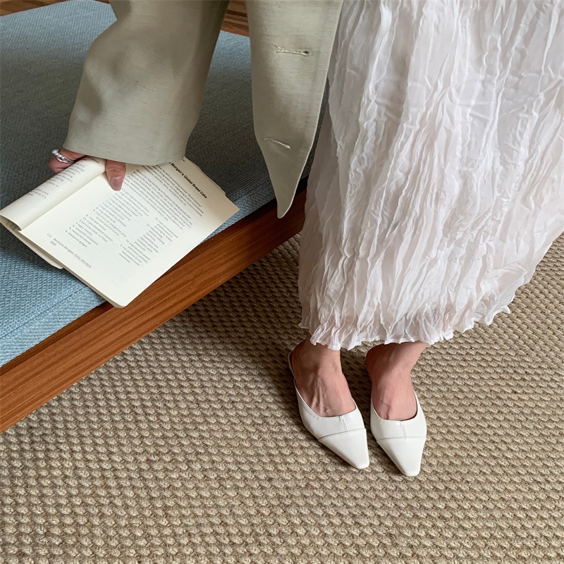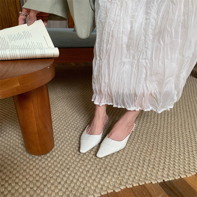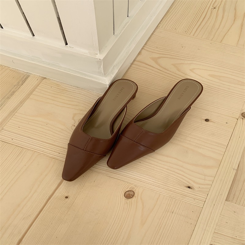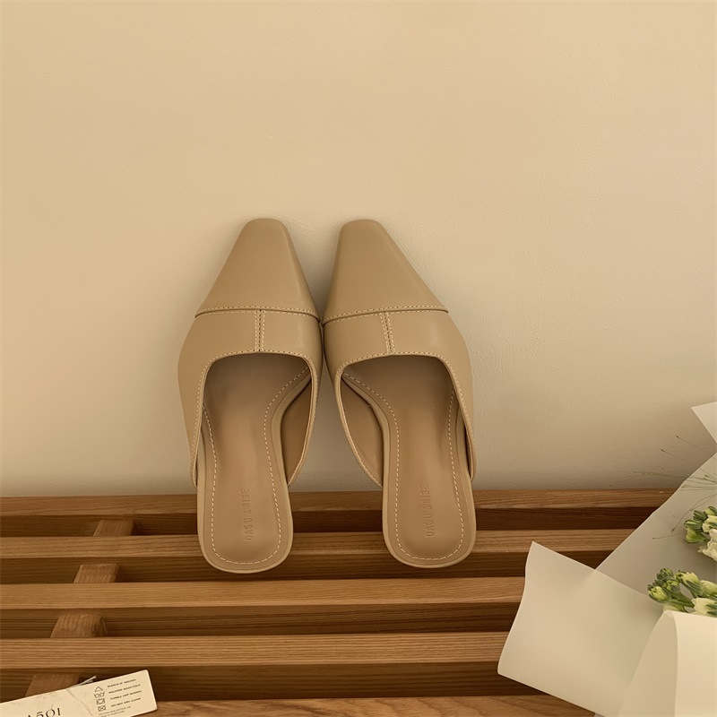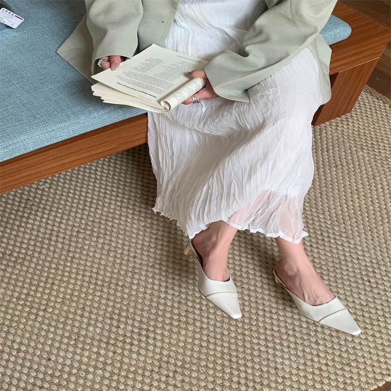 여성용 미드힐 레이지 힐리스 토 하프 슬리퍼, 패셔너블한 포인티드 토 두꺼운 굽 하이힐 뮬 샌들