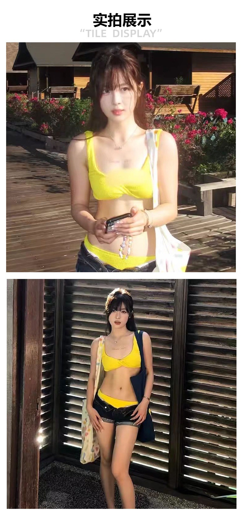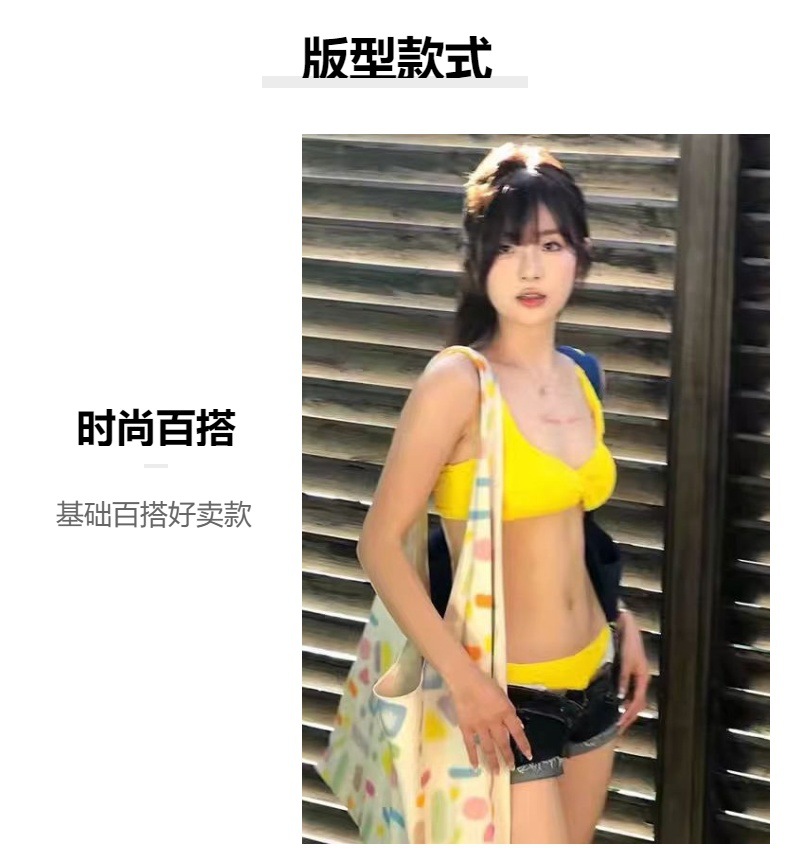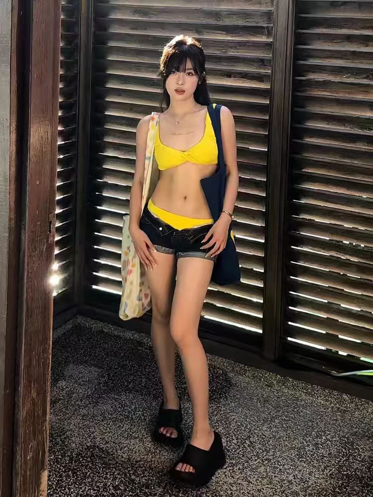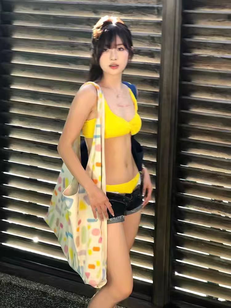 2025 옐로우 핫걸 타이트 슬림 온천 휴가 섹시 백리스 유럽풍 분리형 수영복 여성 비키니스토어 가기