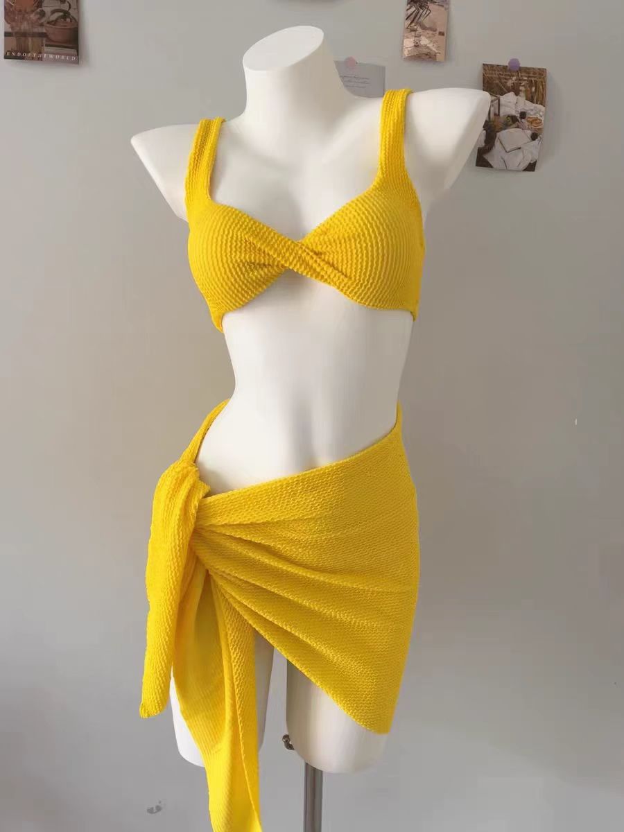 2025 옐로우 핫걸 타이트 슬림 온천 휴가 섹시 백리스 유럽풍 분리형 수영복 여성 비키니