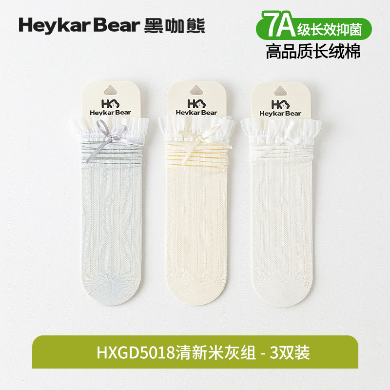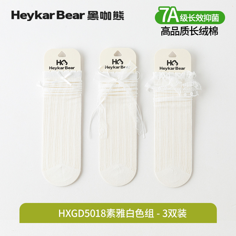 블랙 커피 베어 3 쌍 7A 항균 레이스 활 어린이 양말 손으로 꿰매는 머리 로리타 소녀 새끼 양말스토어 가기