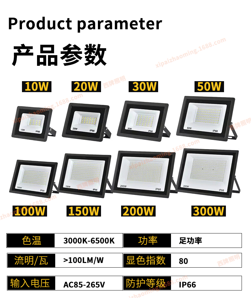 국경 주도 작은 사과 홍수 빛 초박형 100W 야외 방수 조명 투광 조명 정원 조명 프로젝션 조명