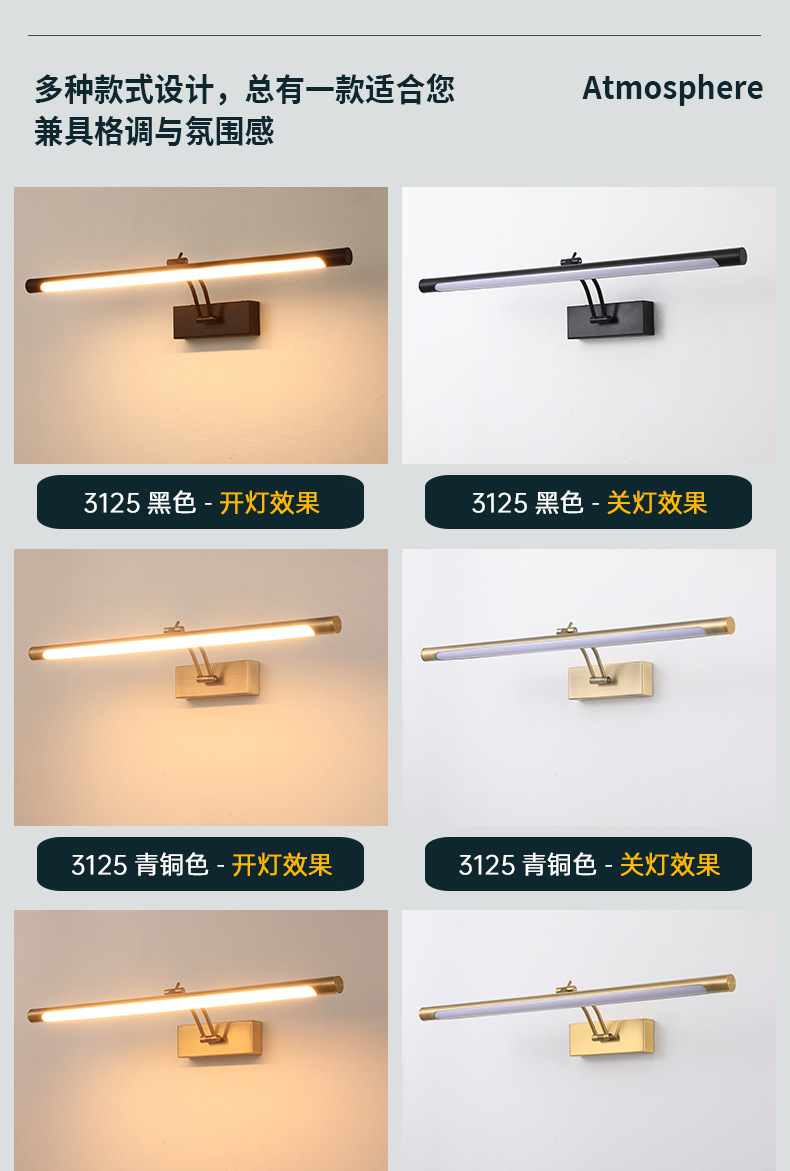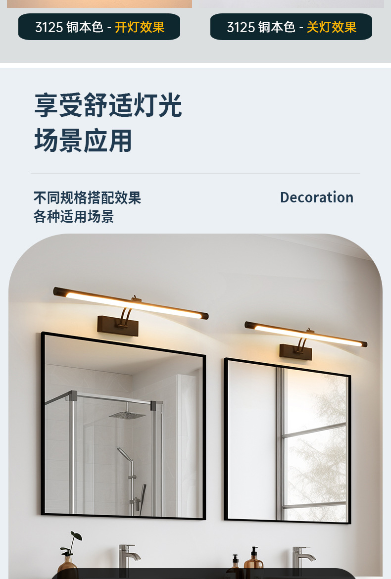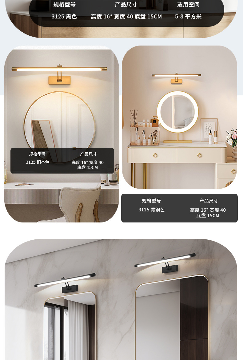 새로운 로커 led 거울 헤드 라이트 그림 램프 현대 간단한 긴 욕실 벽 램프 화장실 벽 램프 도매