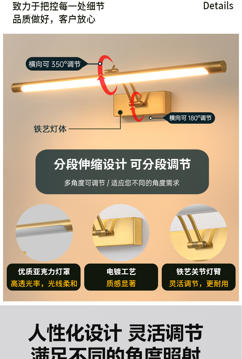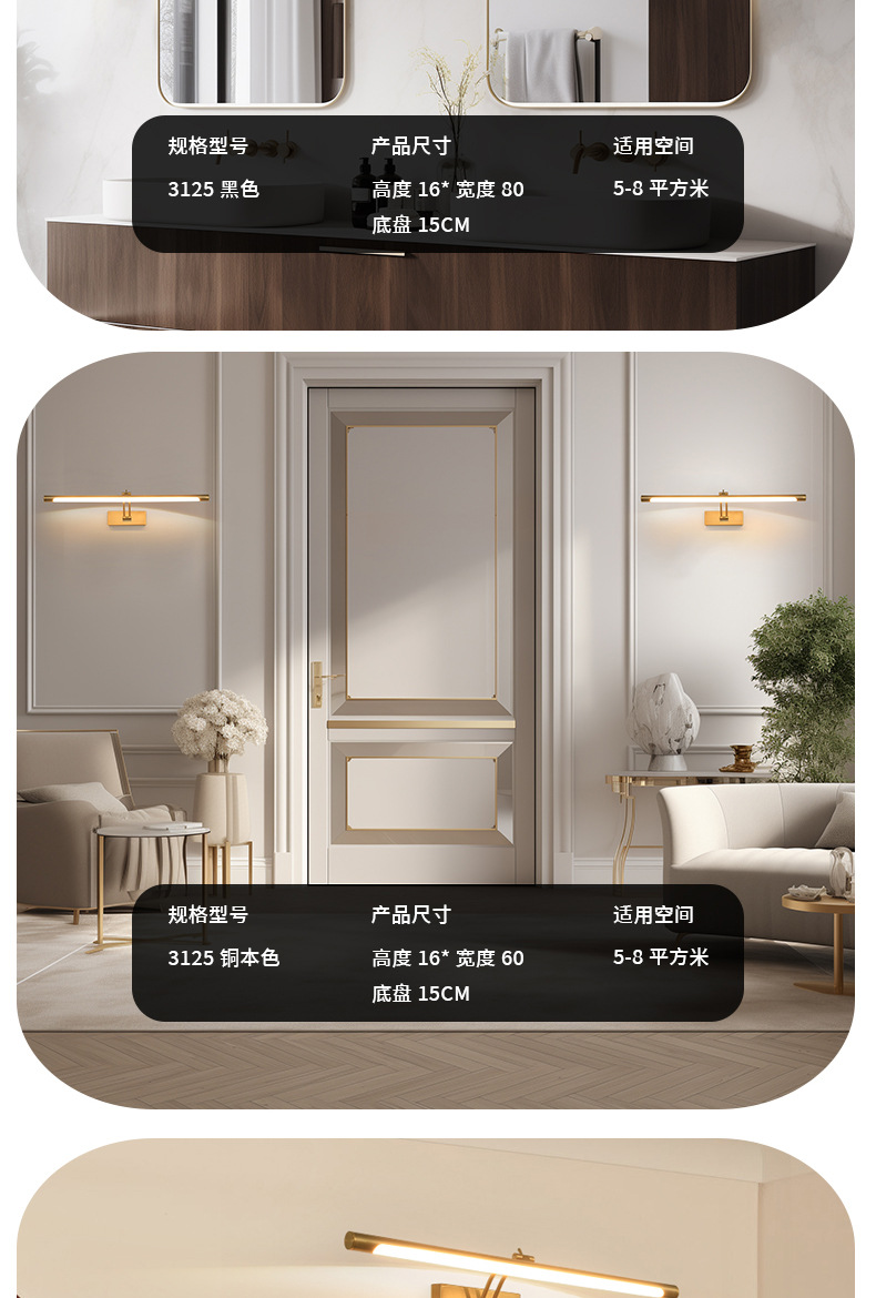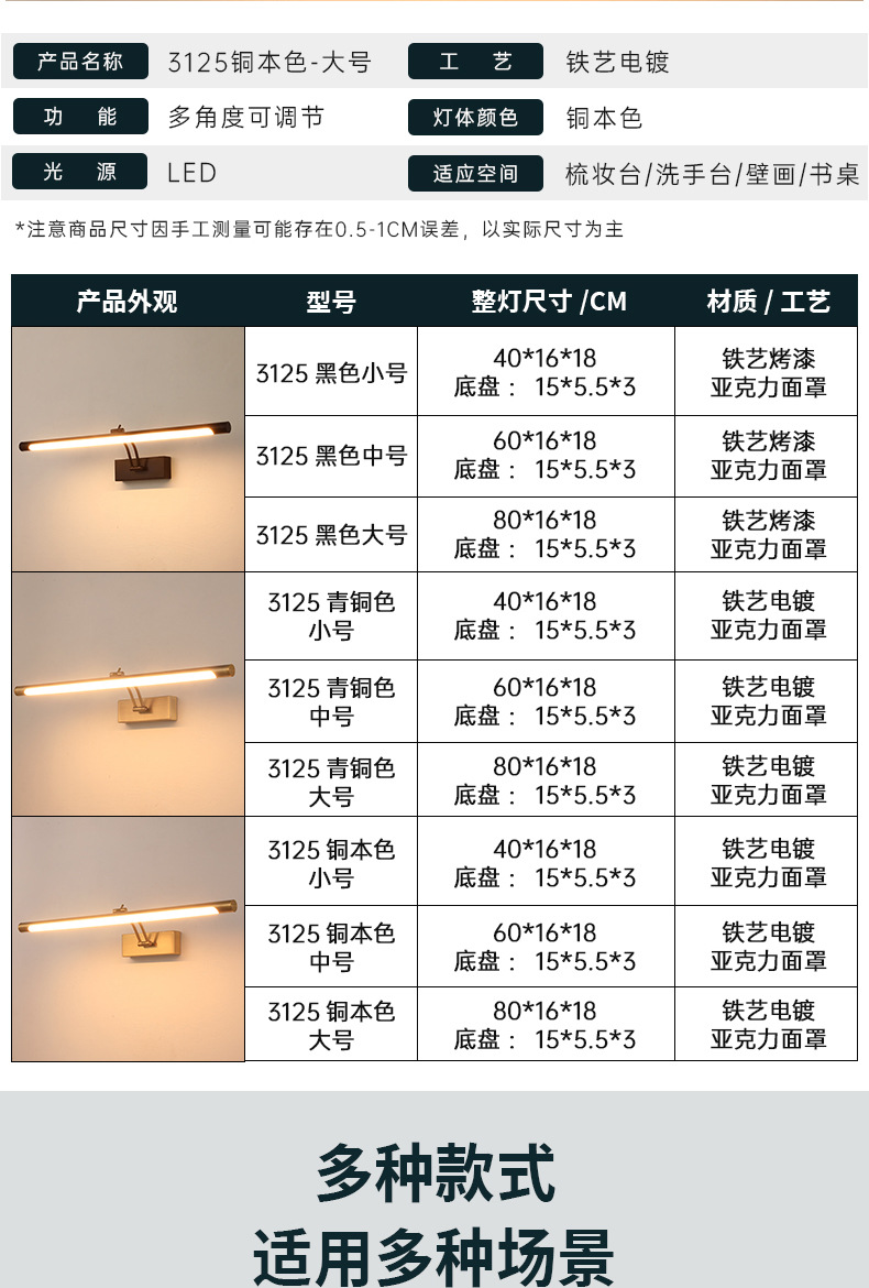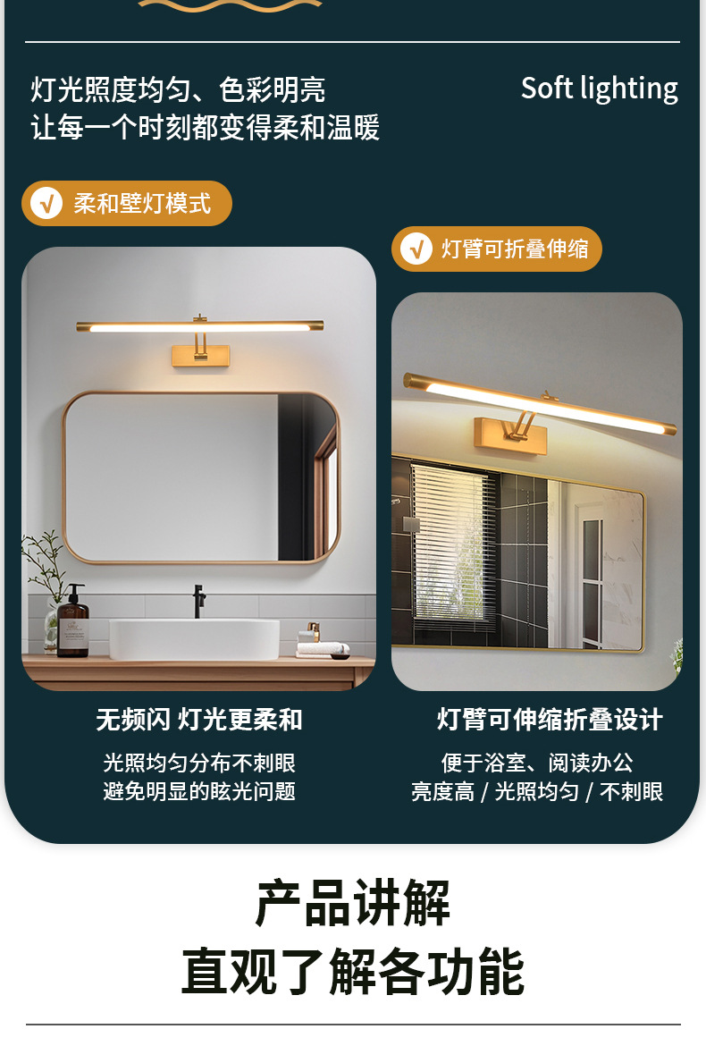 새로운 로커 led 거울 헤드 라이트 그림 램프 현대 간단한 긴 욕실 벽 램프 화장실 벽 램프 도매