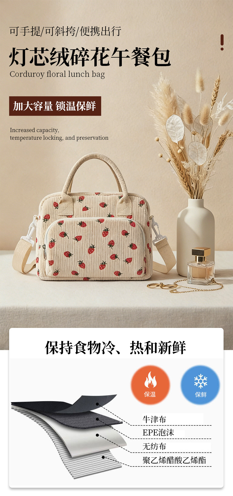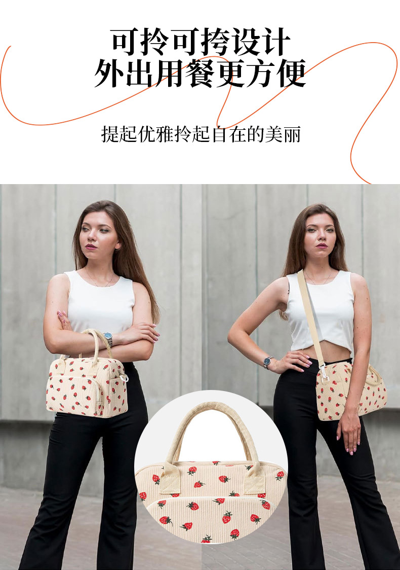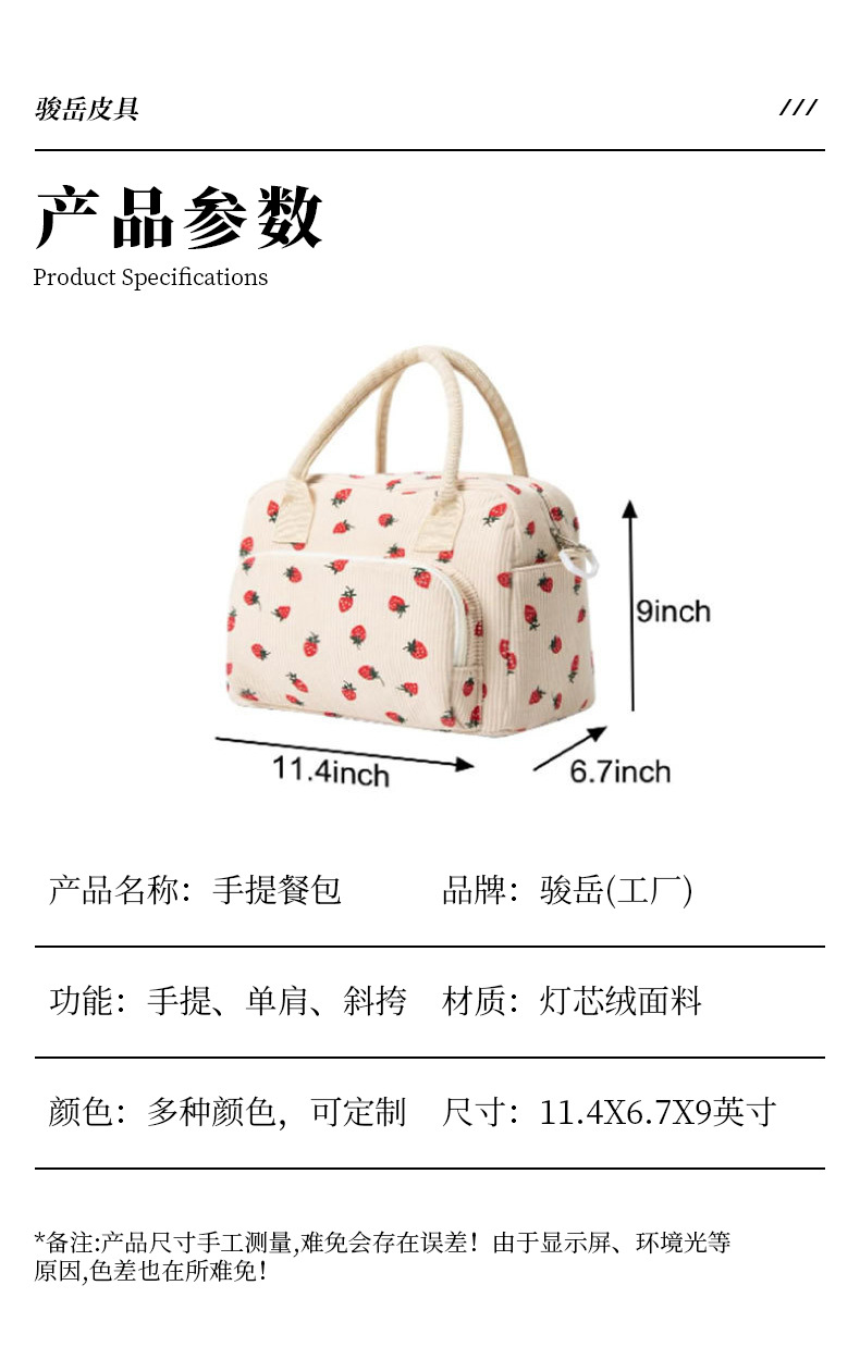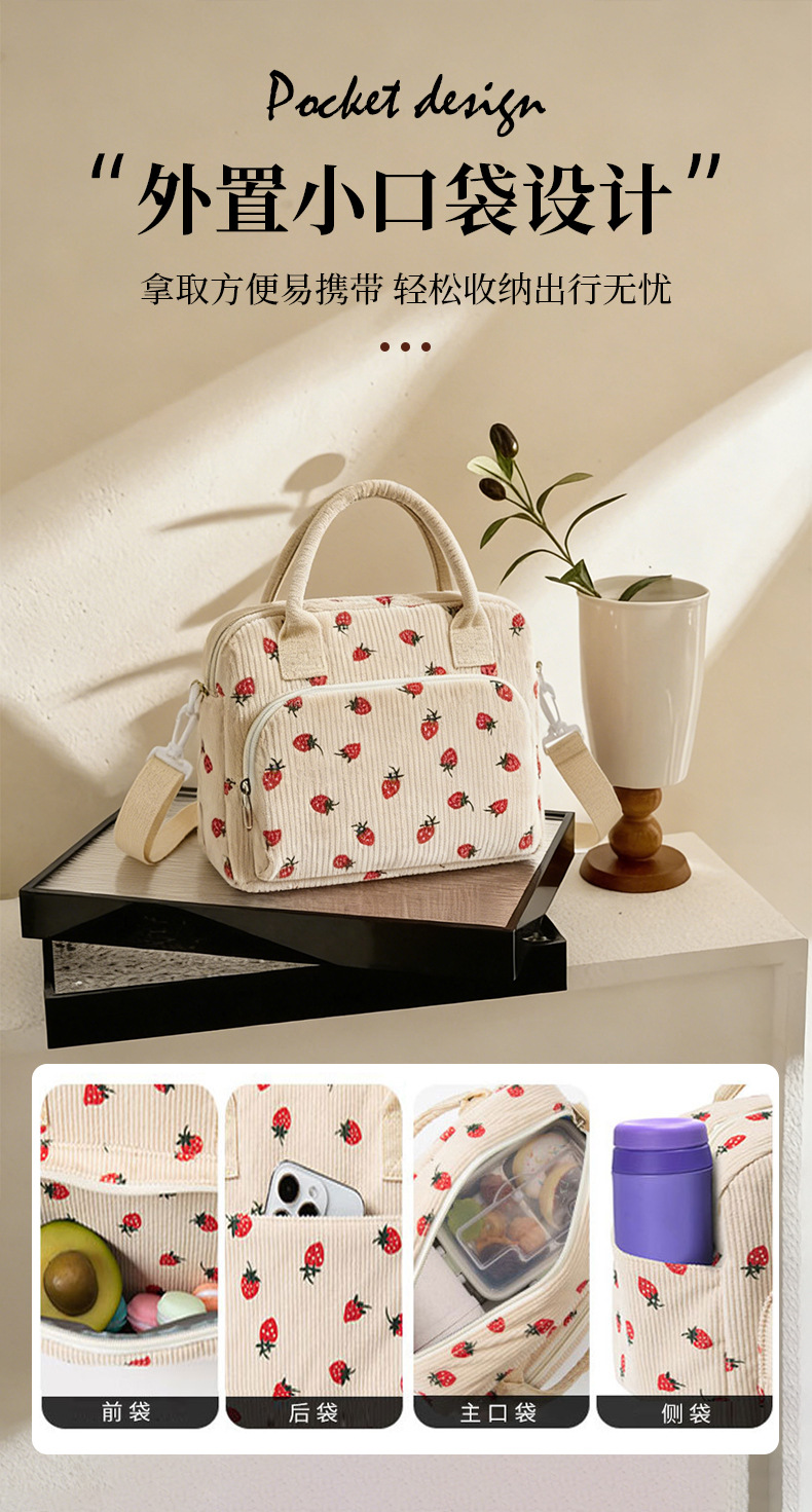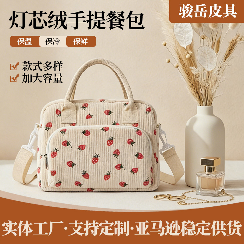 아마존 인기 도시락 가방 코듀로이 대용량 보온 가방 학생 도시락 가방 해외 직구 피크닉 가방