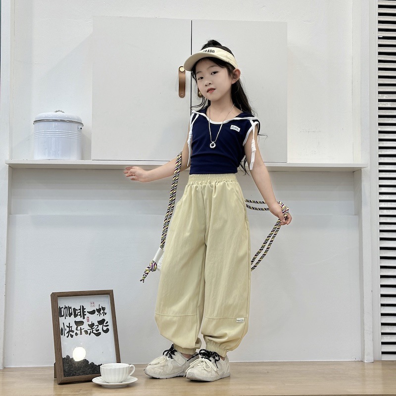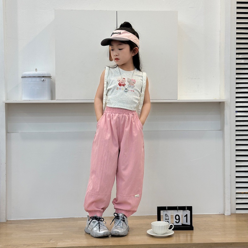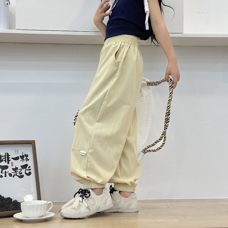 새로운 스타일의 여름용 얇은 패치워크 스포츠 바지, 아동용 통기성 캐주얼 조거 팬츠, 아기용 멋스러운 아우터 롱 팬츠스토어 가기