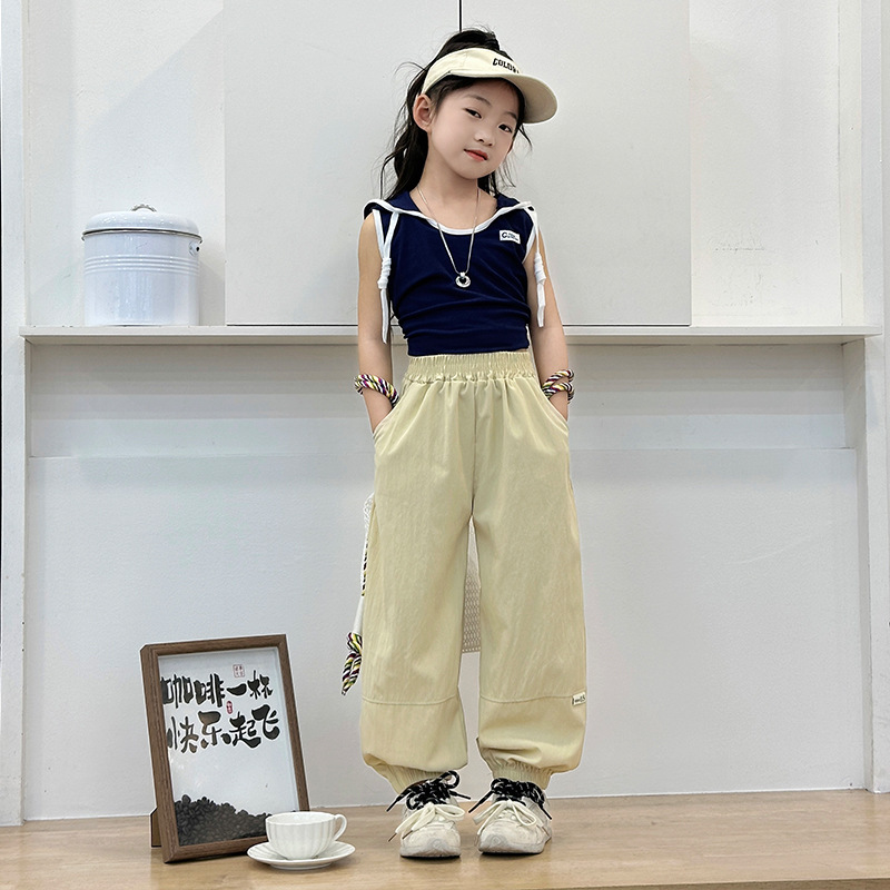 새로운 스타일의 여름용 얇은 패치워크 스포츠 바지, 아동용 통기성 캐주얼 조거 팬츠, 아기용 멋스러운 아우터 롱 팬츠