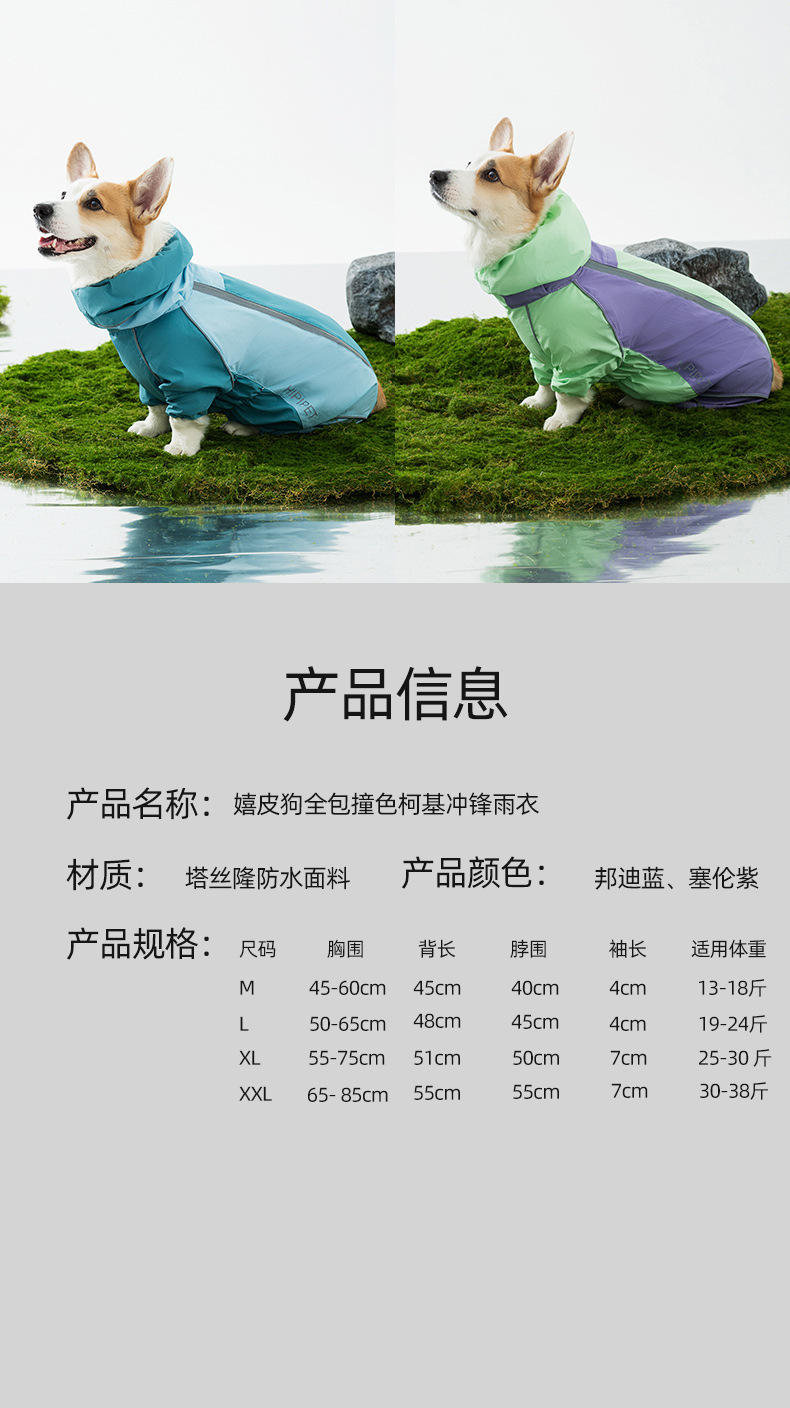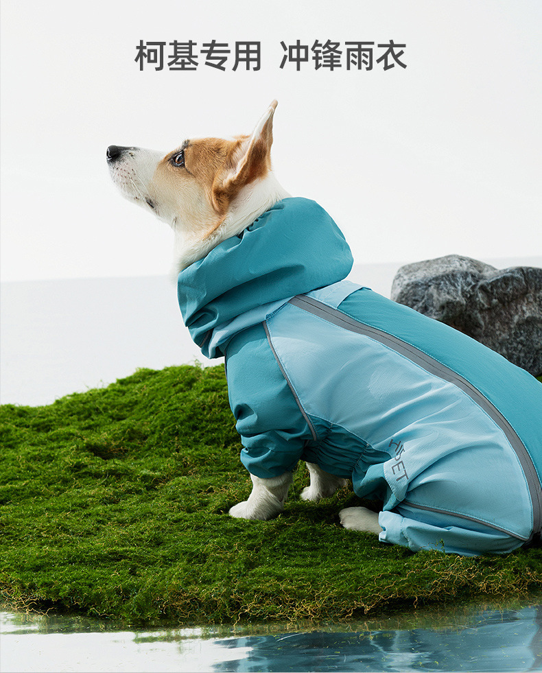 코기 강아지 비옷 봄과 여름 테디 비숑 슈나우저 반사 스트립이 있는 소형견 애완 동물 올인클루시브 비옷스토어 가기
