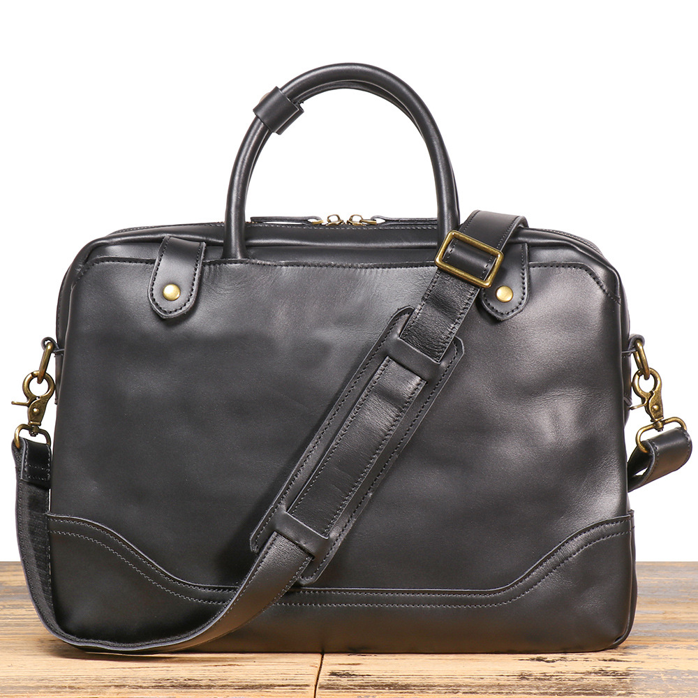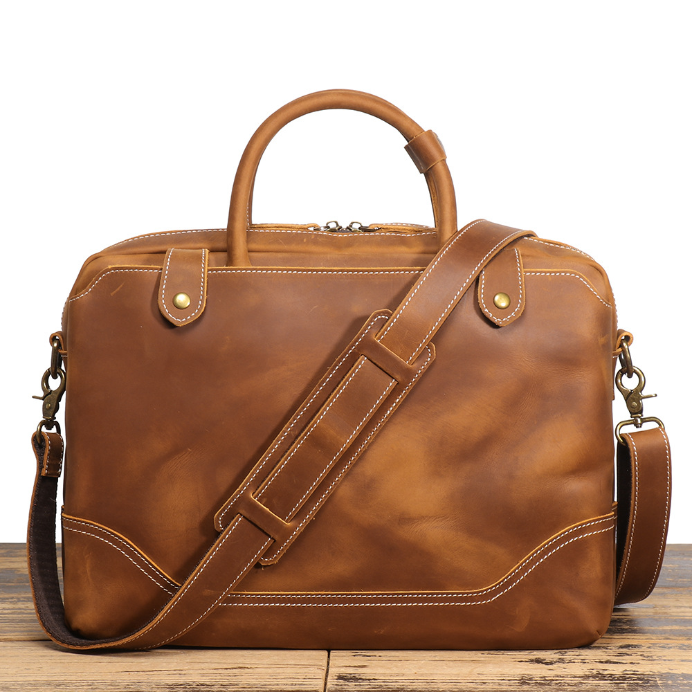 유럽과 미국의 복고풍 남성용 정품 가죽 휴대용 서류 가방 Crazy Horse 가죽 어깨 크로스 바디 컴퓨터 가방 대용량 소 가죽 비즈니스 가방스토어 가기