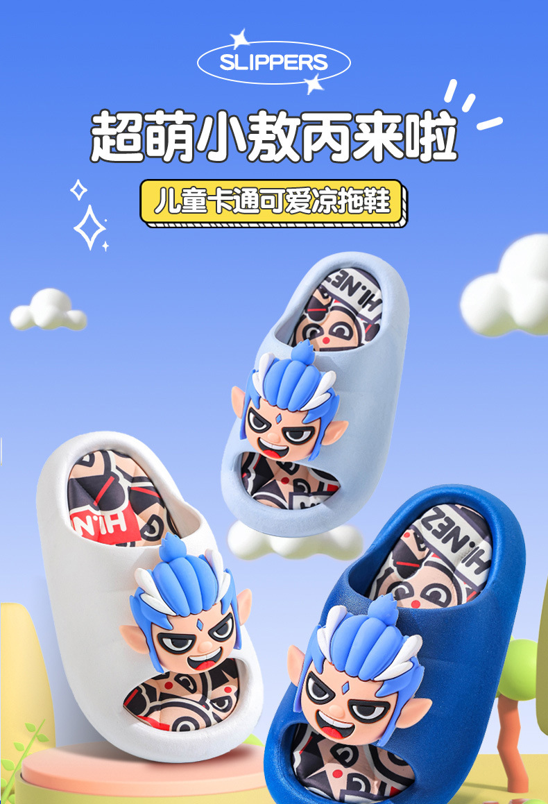 정품 Ao Bing 여름 어린이 샌들 및 슬리퍼 미끄럼 방지 부드러운 바닥 어린이 샌들 냄새 방지 어린이 만화 어린이 슬리퍼