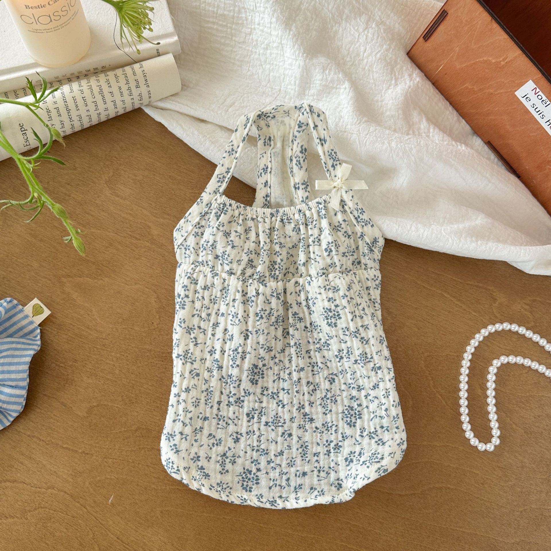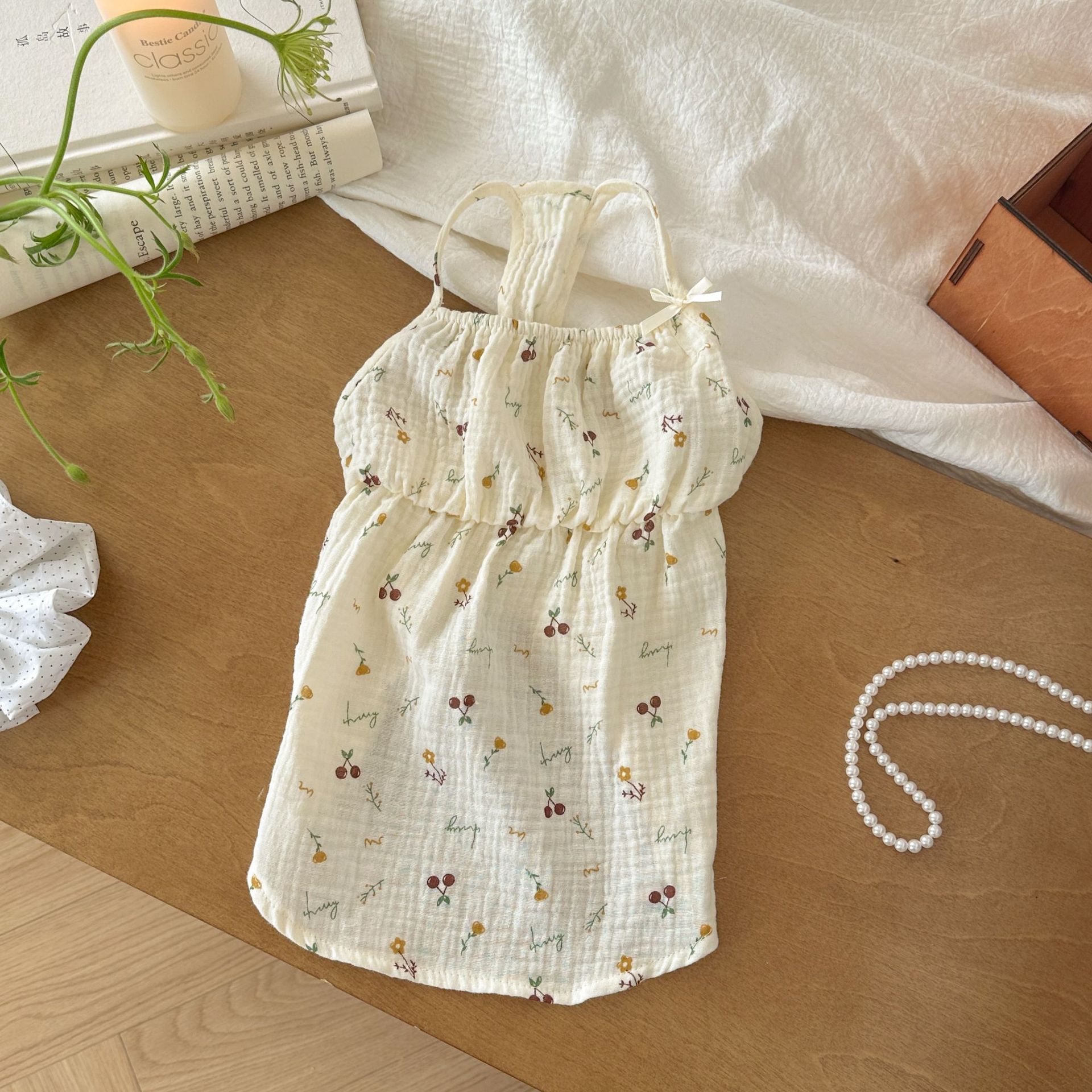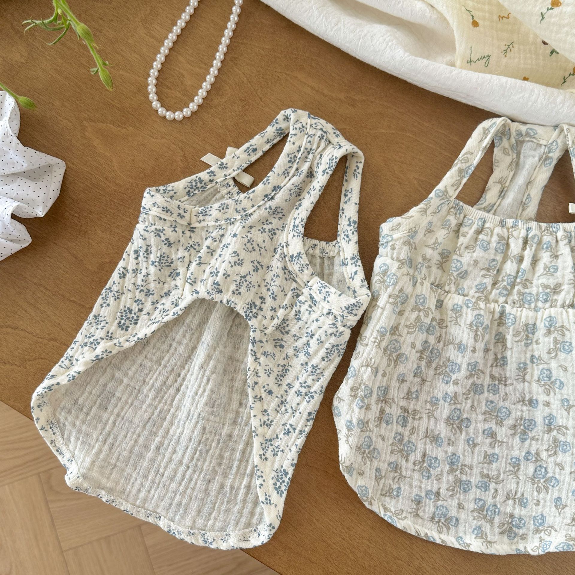 리본 장식 면 거즈 조끼 스커트 애완동물 옷 소형견 고양이 용품 봄 여름 반팔