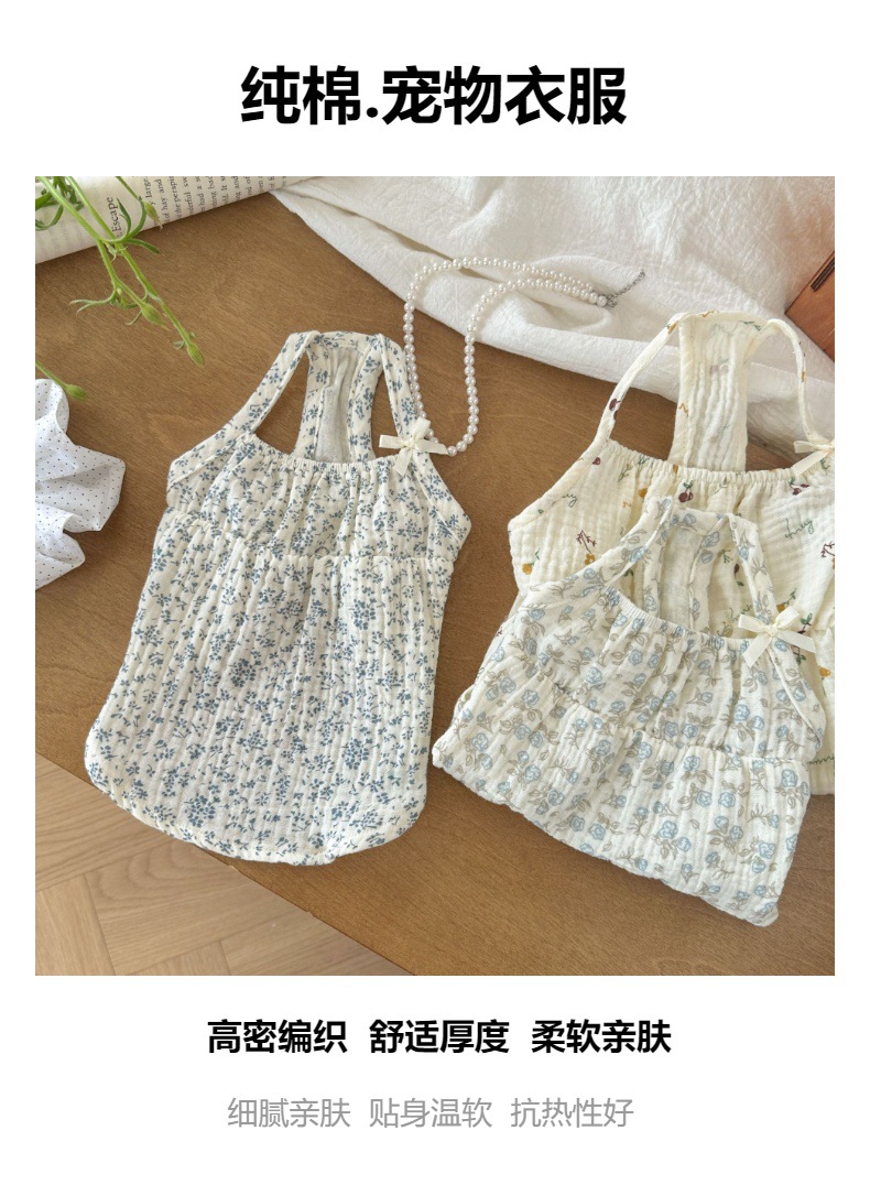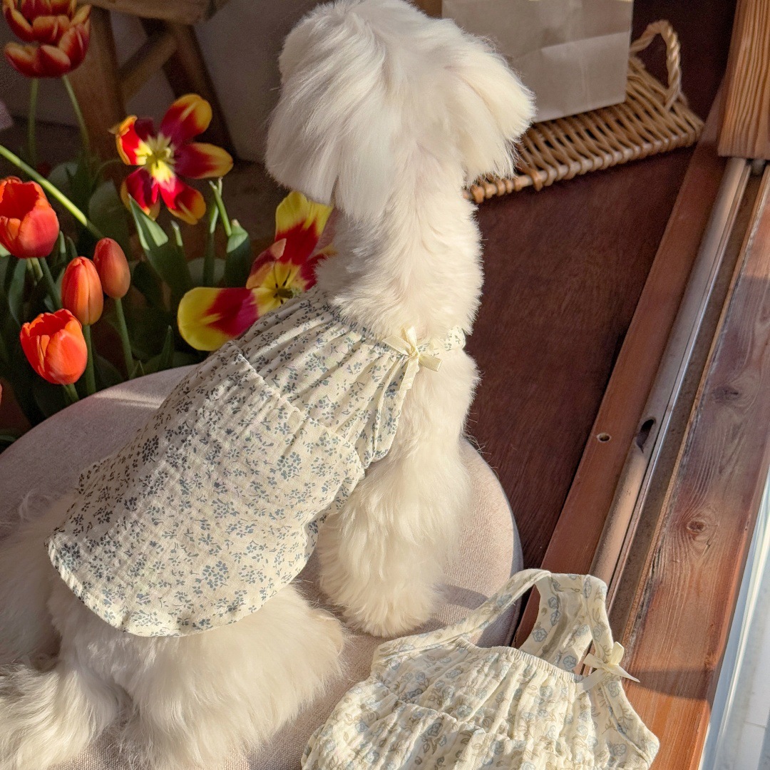 리본 장식 면 거즈 조끼 스커트 애완동물 옷 소형견 고양이 용품 봄 여름 반팔스토어 가기