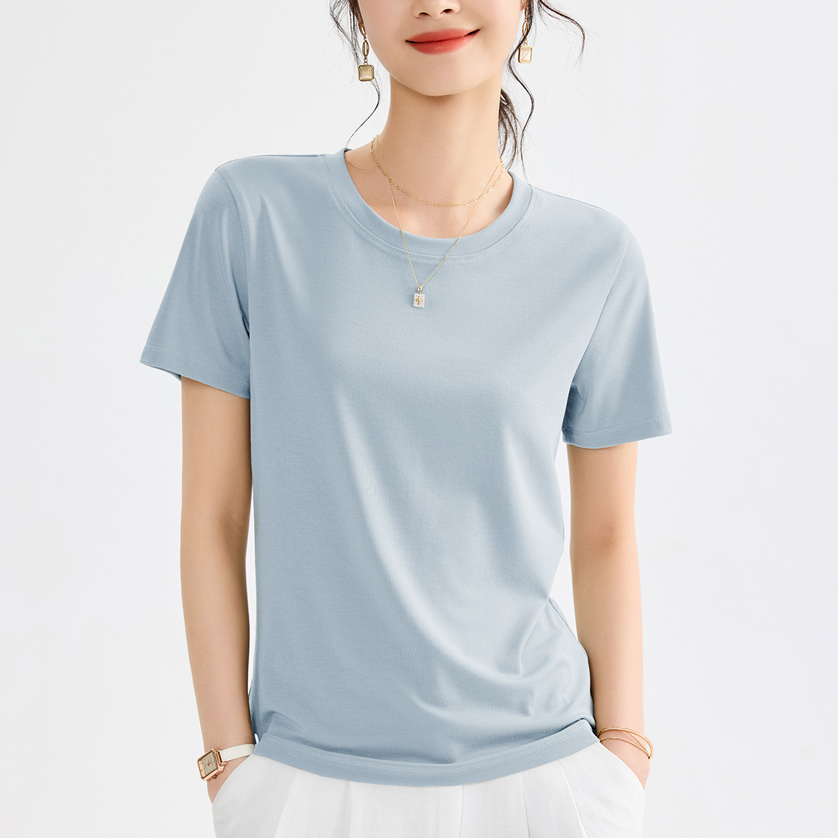 Lyocell Tencel Net Edition 라운드 넥 반팔 티셔츠 여성 여름 2025 뉴 숄더 얇은 슬림 핏 쿨탑스토어 가기