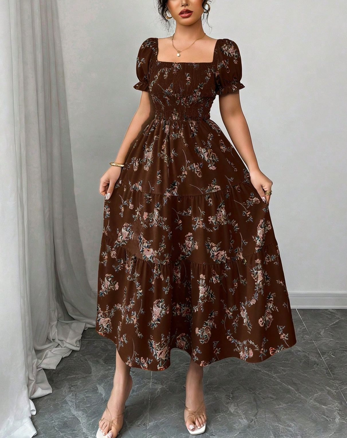 2025 독립 역 아마존 AliExpress 유럽과 미국 새로운 인쇄 대형 원피스 원피스 여성