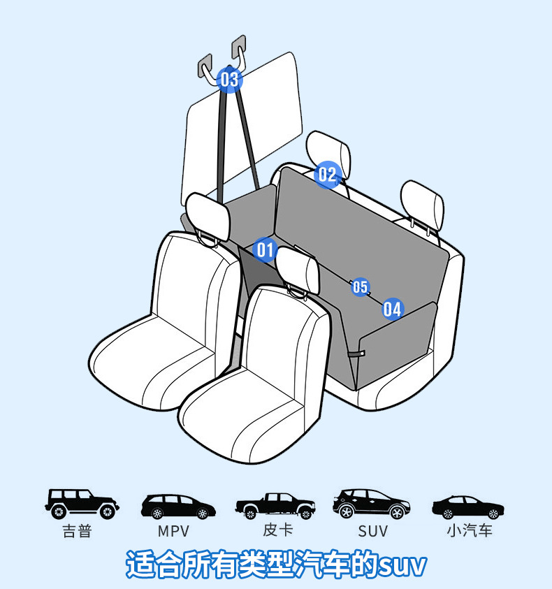 跨境宠物车载垫加厚防水可拆卸后排宠物垫中大型犬坐车神器防脏垫