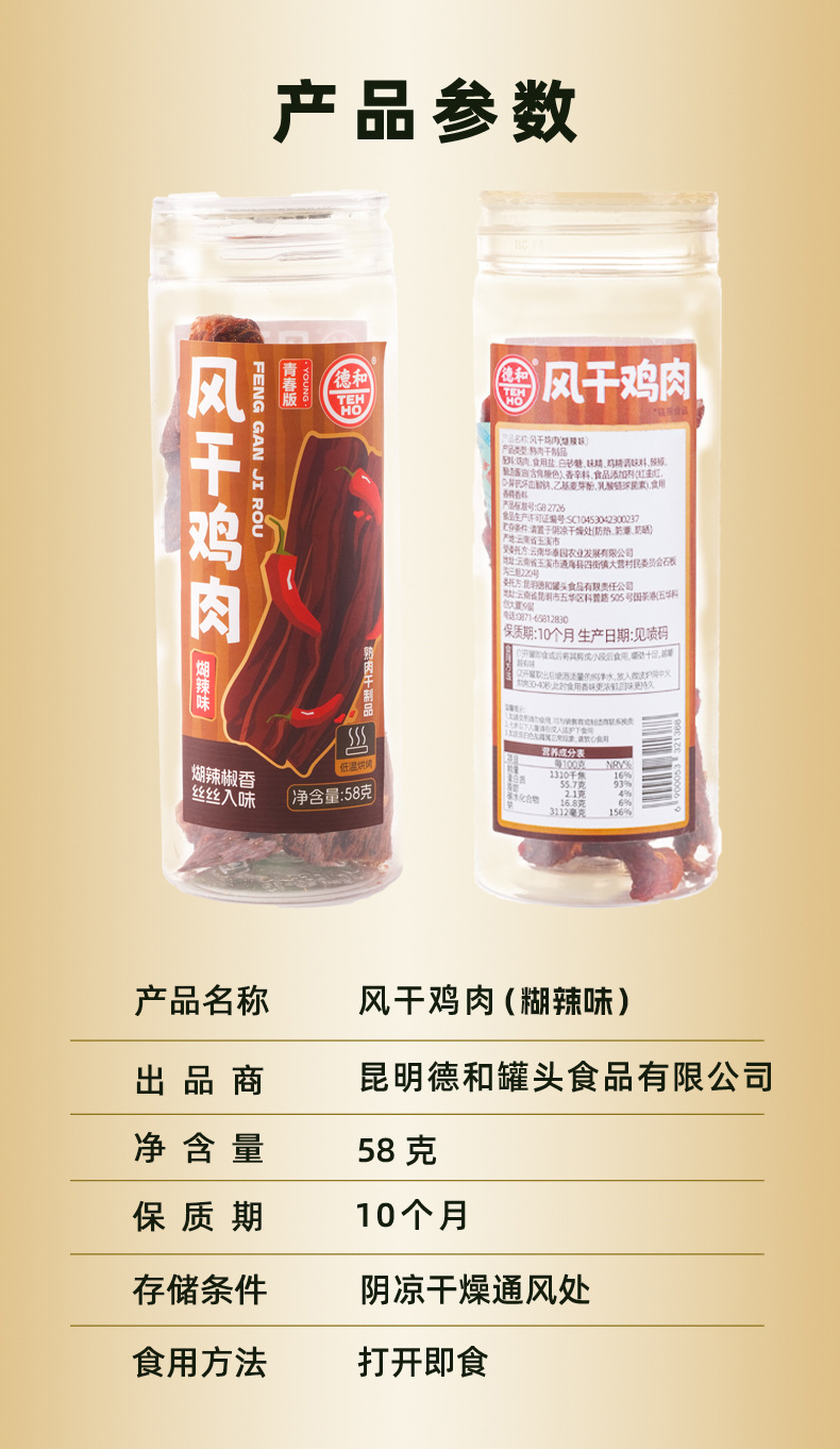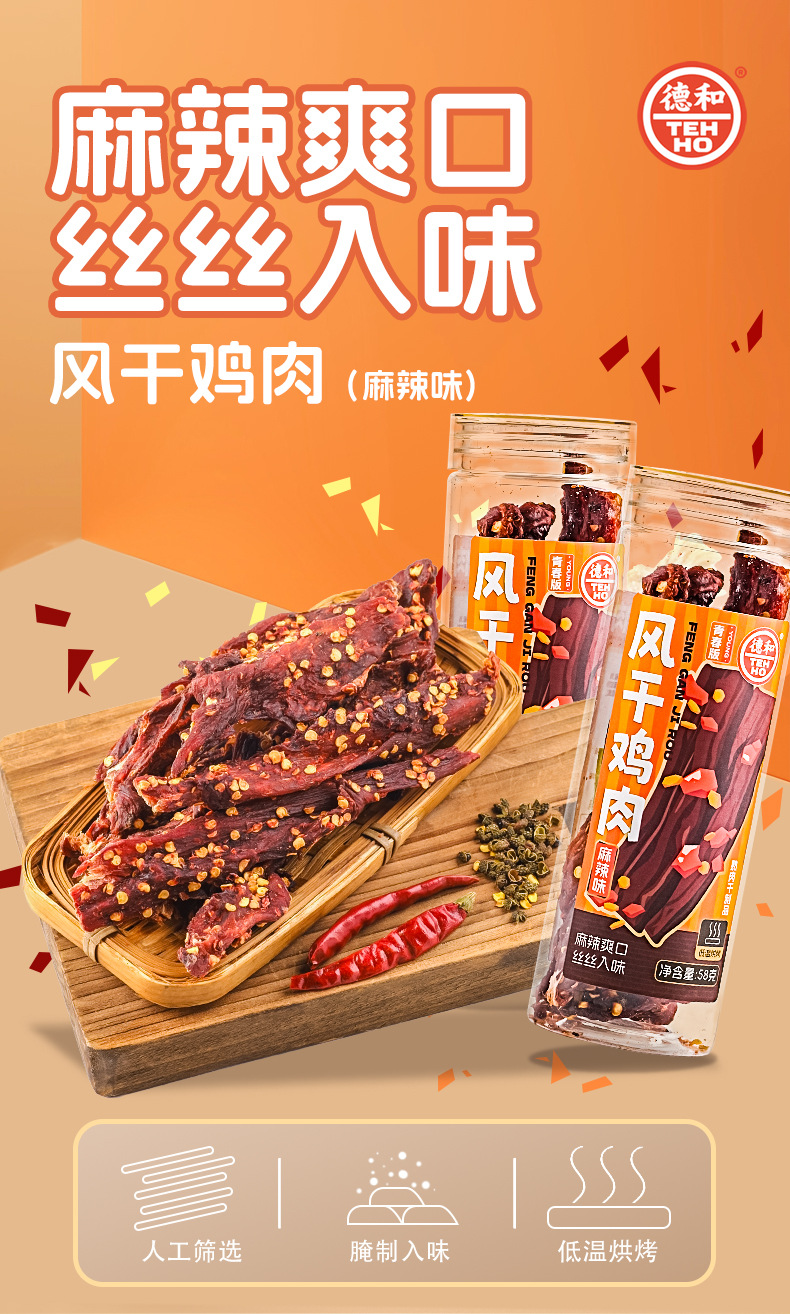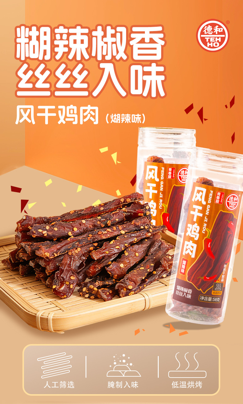 더허 햇볕에 건조한 닭고기 스낵 58g 매콤한 맛, 쫄깃한 식감, 식욕을 돋우는 오피스 스낵