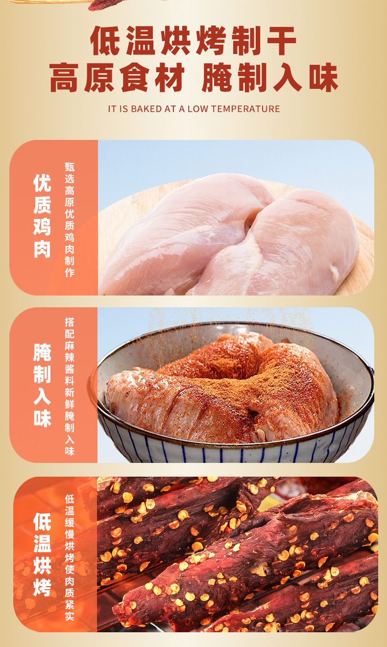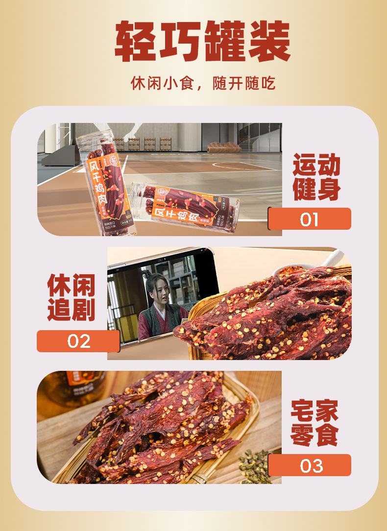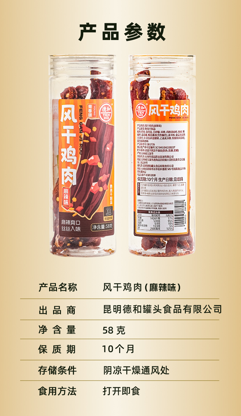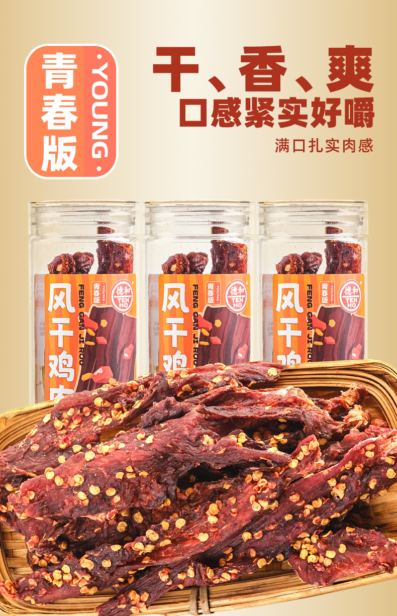 더허 햇볕에 건조한 닭고기 스낵 58g 매콤한 맛, 쫄깃한 식감, 식욕을 돋우는 오피스 스낵
