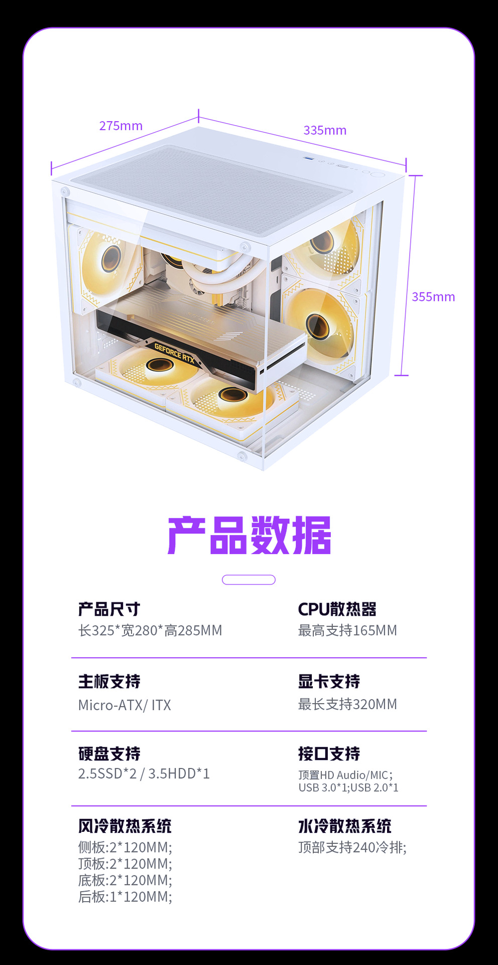 빛 만남 MN 데스크탑 컴퓨터 케이스 새로운 MATX 케이스 7 팬 바다 전망 방 3.0 지원 240 물 냉각