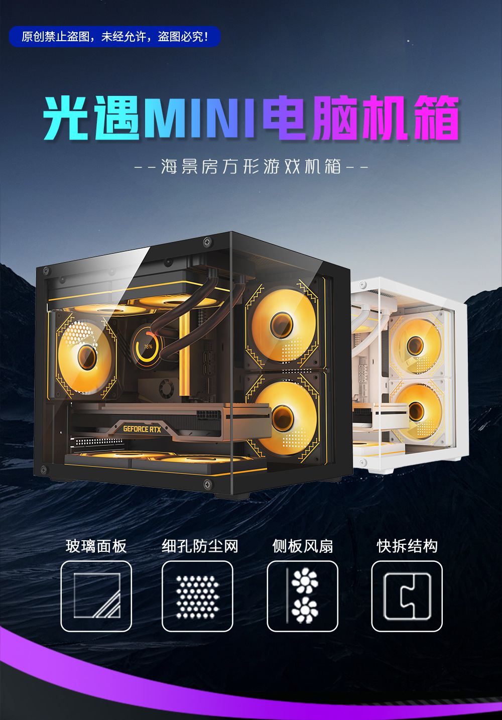 빛 만남 MN 데스크탑 컴퓨터 케이스 새로운 MATX 케이스 7 팬 바다 전망 방 3.0 지원 240 물 냉각스토어 가기