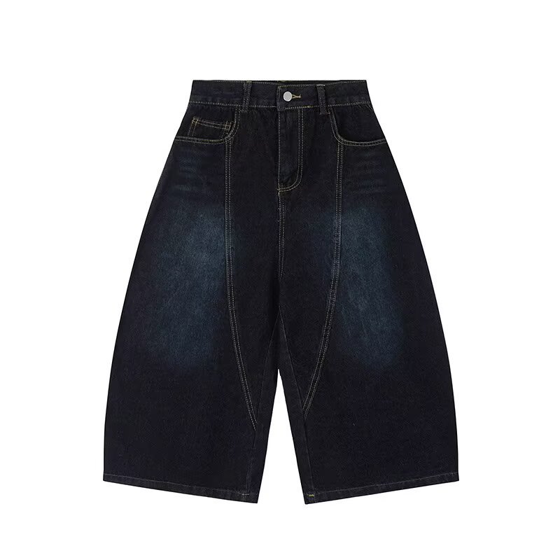 패셔너블하고 다재다능한 아메리칸 레트로 워싱 디스트레스드 청바지 여성용 하이웨이스트 루즈 와이드 레그 워크웨어 크롭 팬츠 트렌디 봄 여름스토어 가기