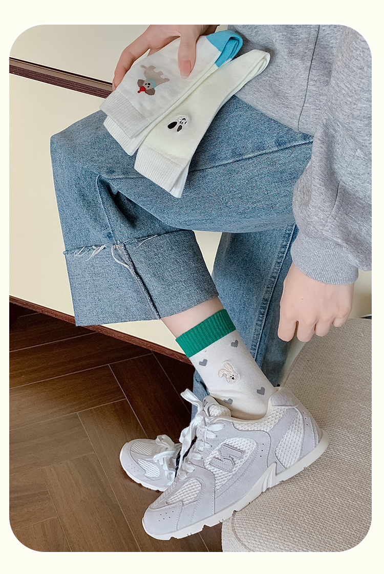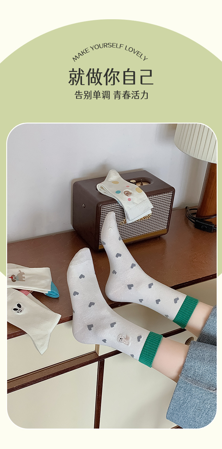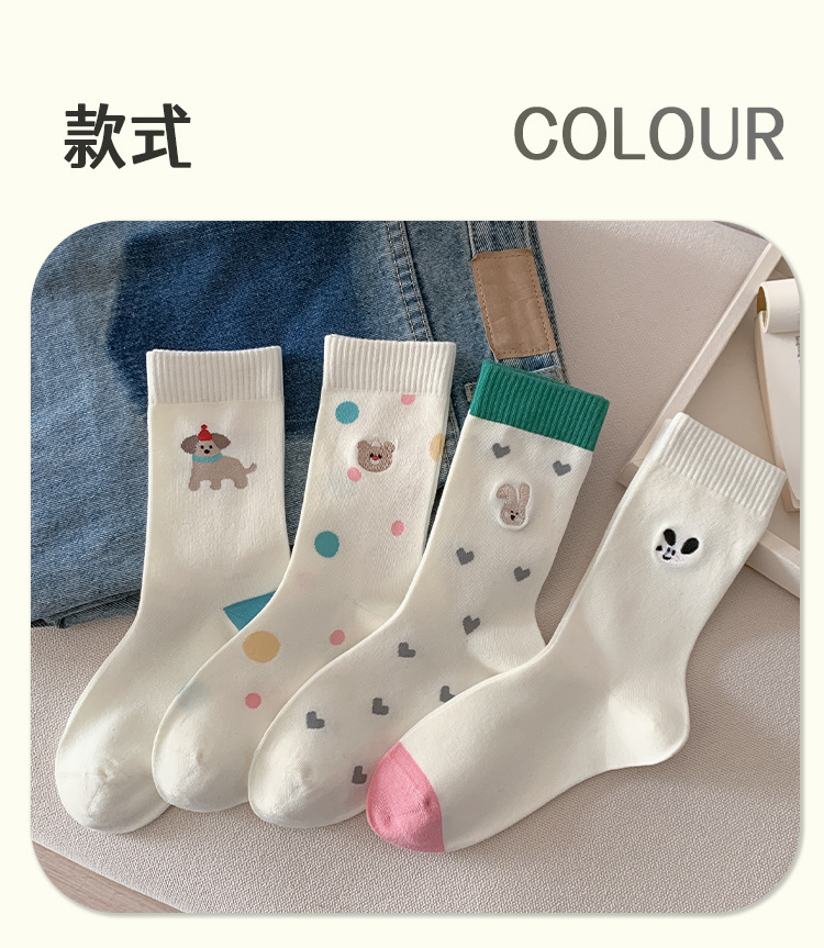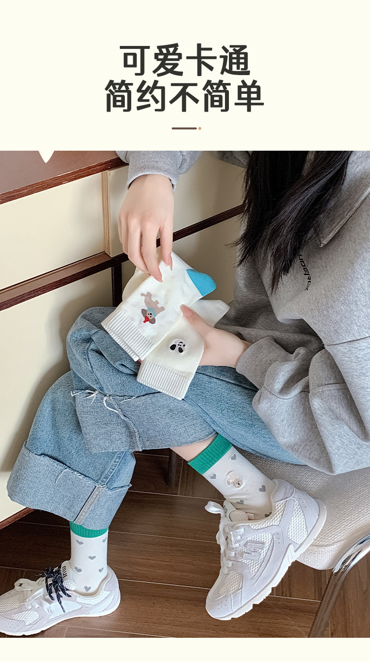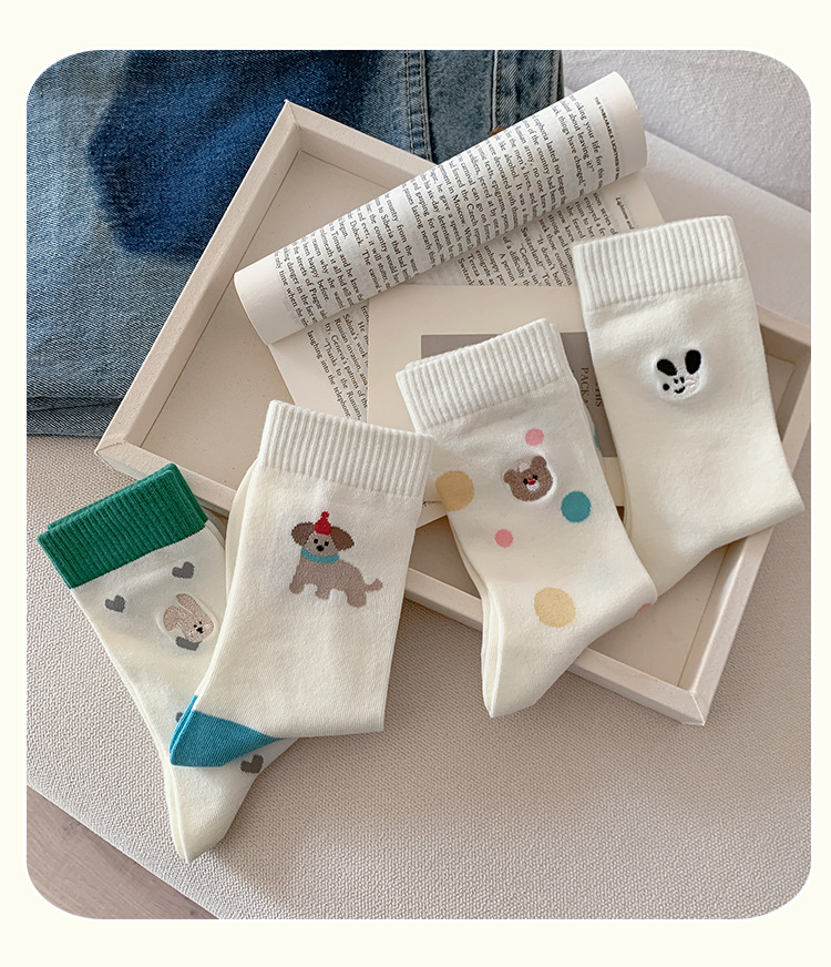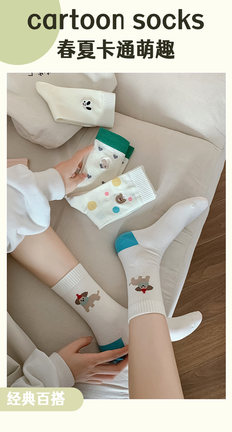 【30% off 클리어런스】주지 양말업계 봄여름 양말 여성용 강아지 양말 만화 중목 양말 여성용 면양말 도매